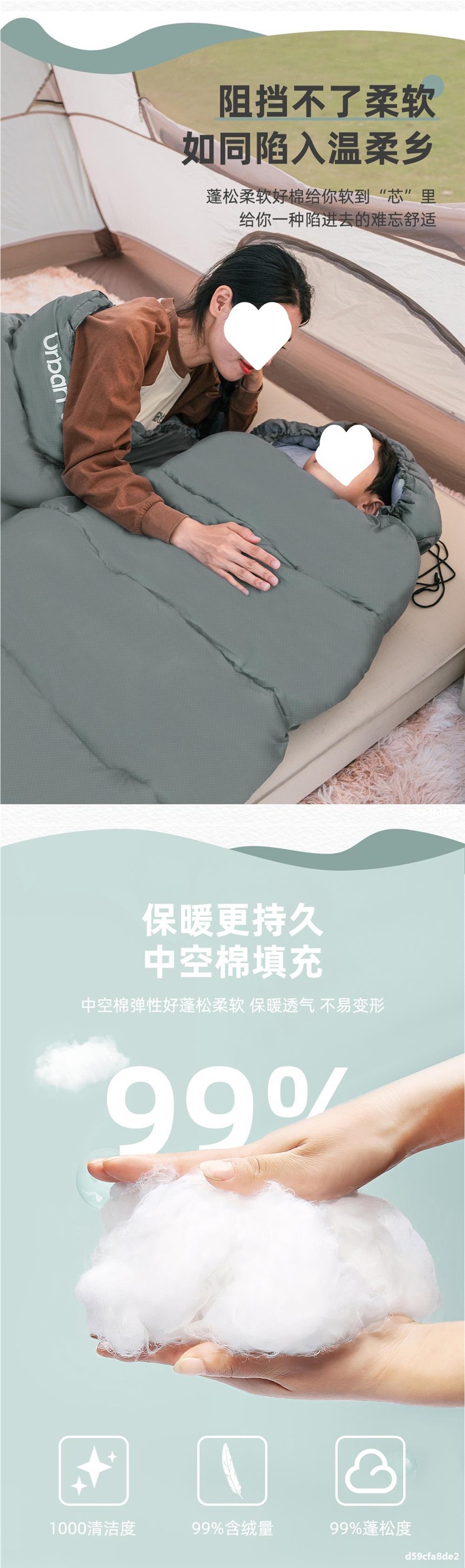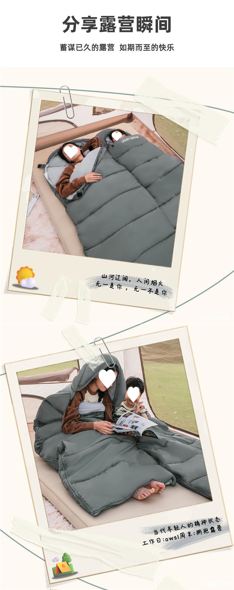 시티 웨이브 침낭 가을 겨울 성인 두꺼운 방한 겨울 더블 침낭 캠핑 야외 사무실 점심 시간