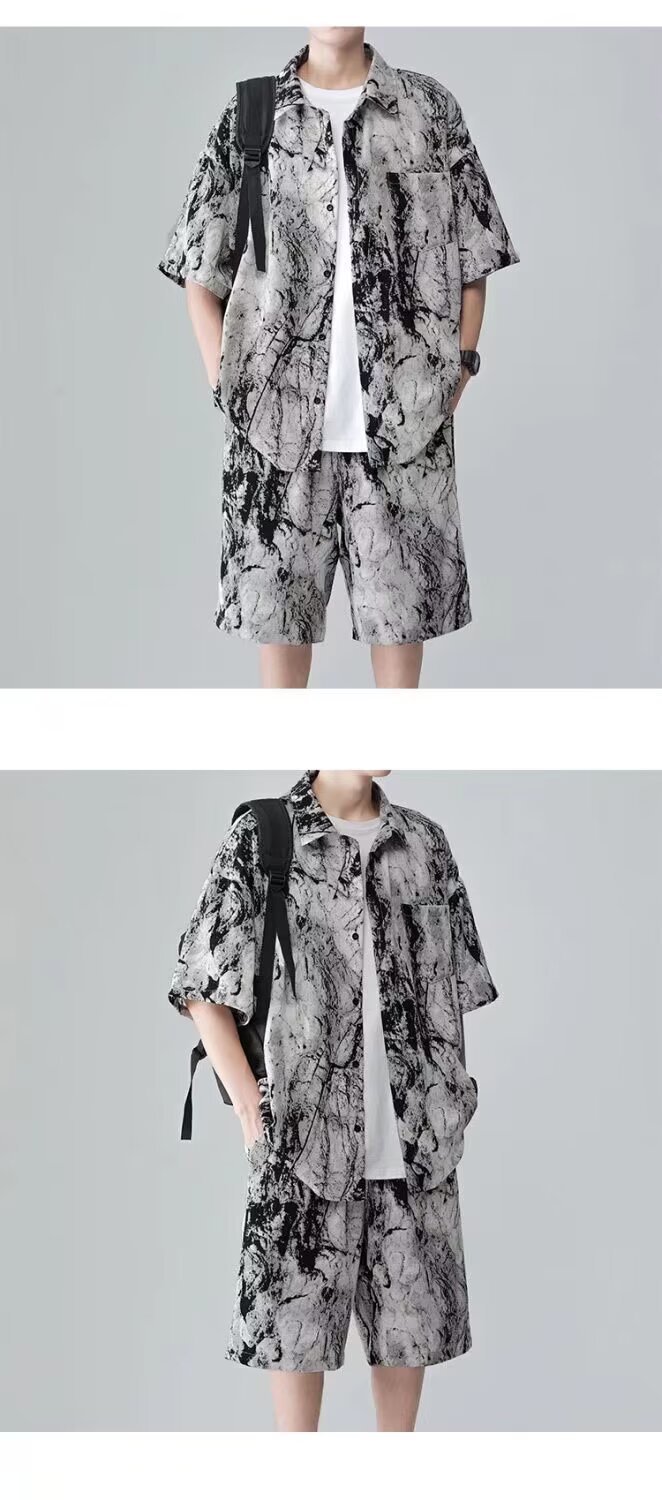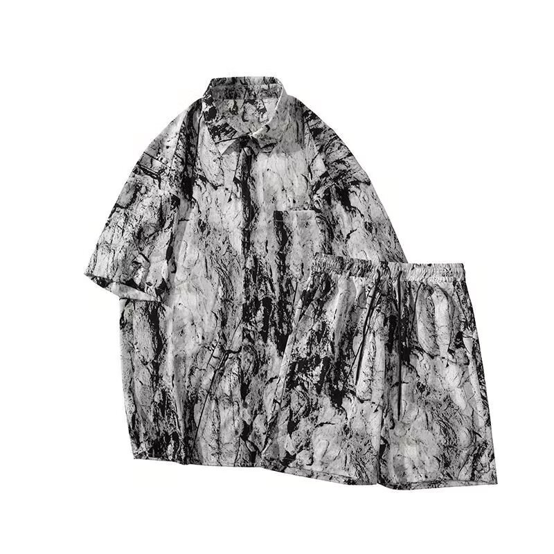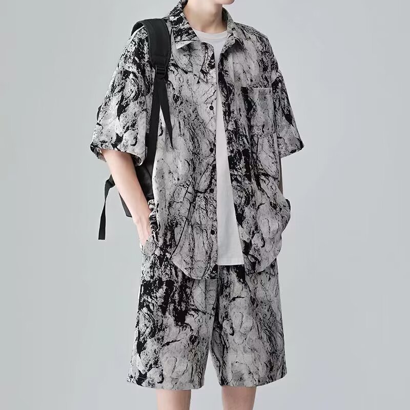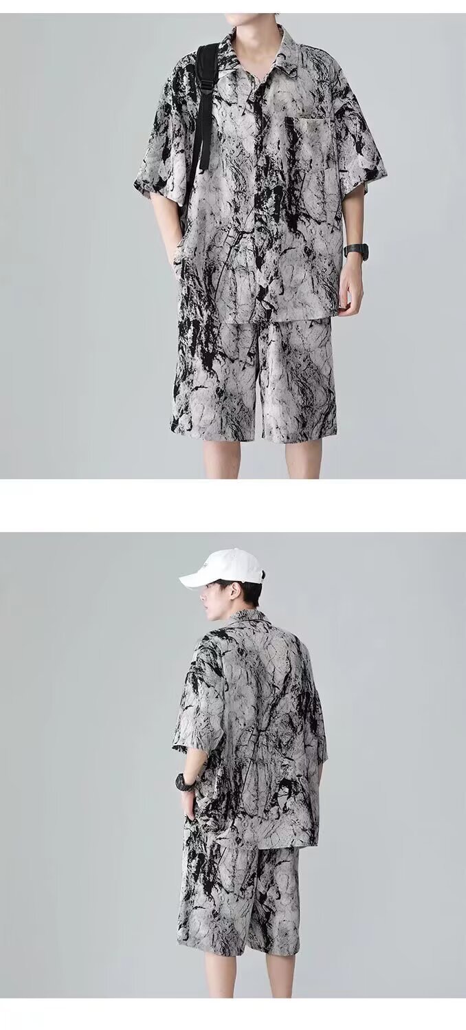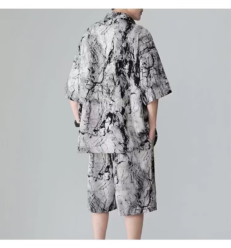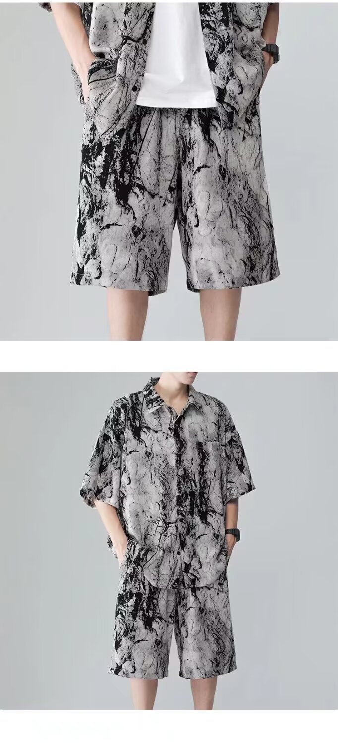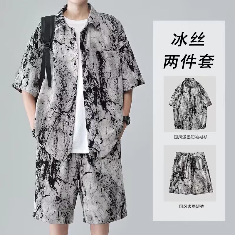 남성용 새로운 중국 스타일 비치 슈트 여름 얇은 느슨한 대형 고급 셔츠 반바지 여름 트렌드