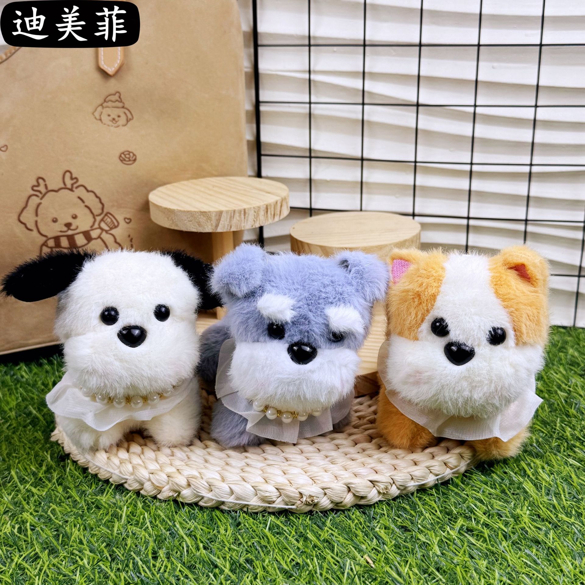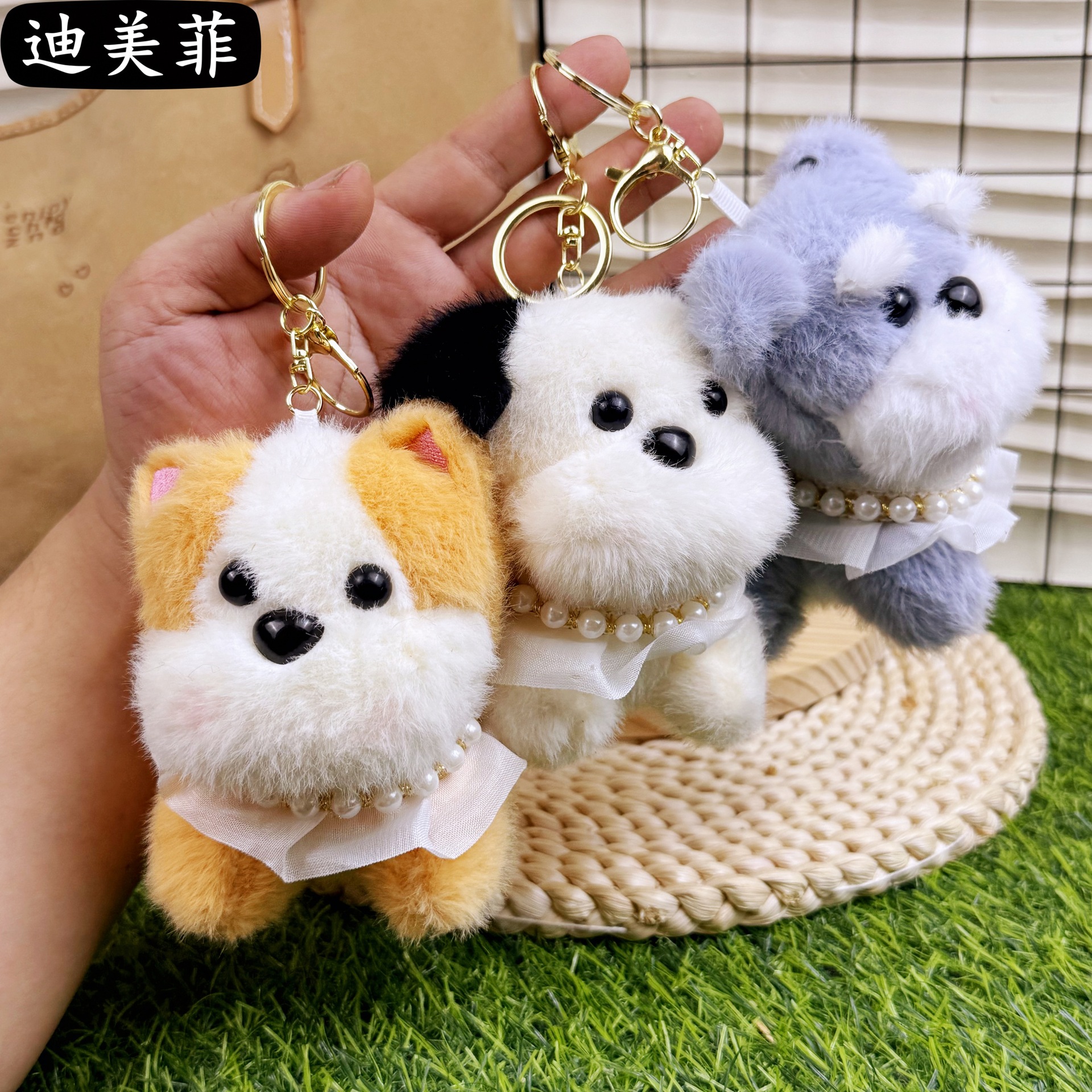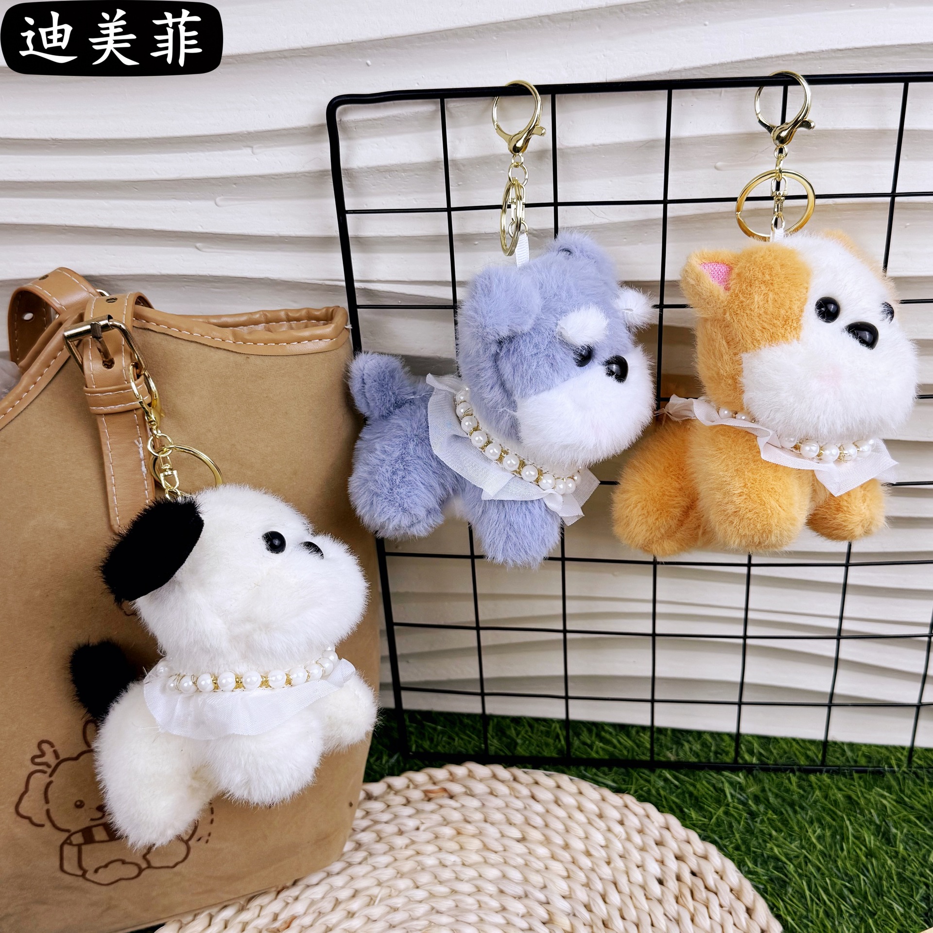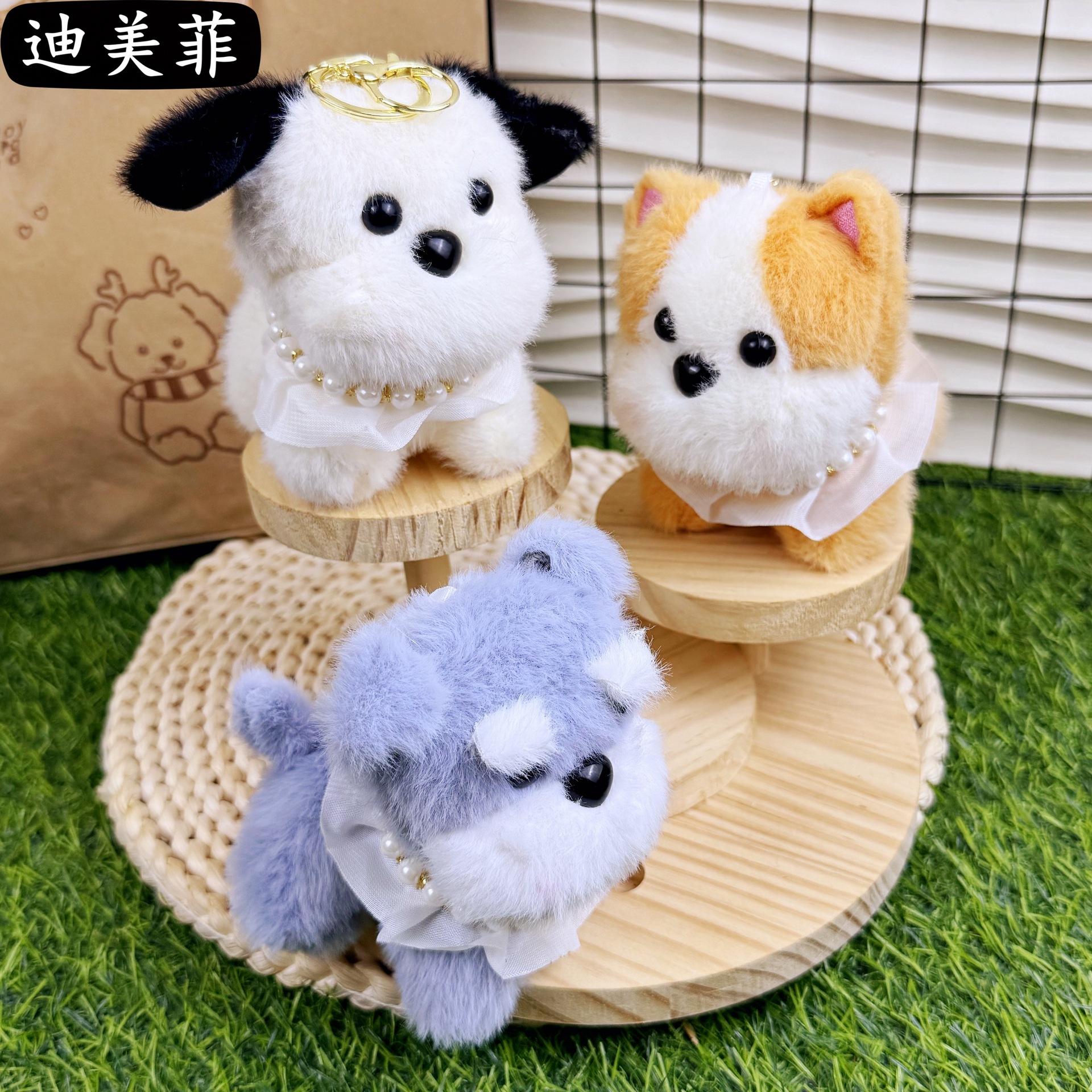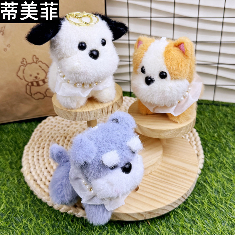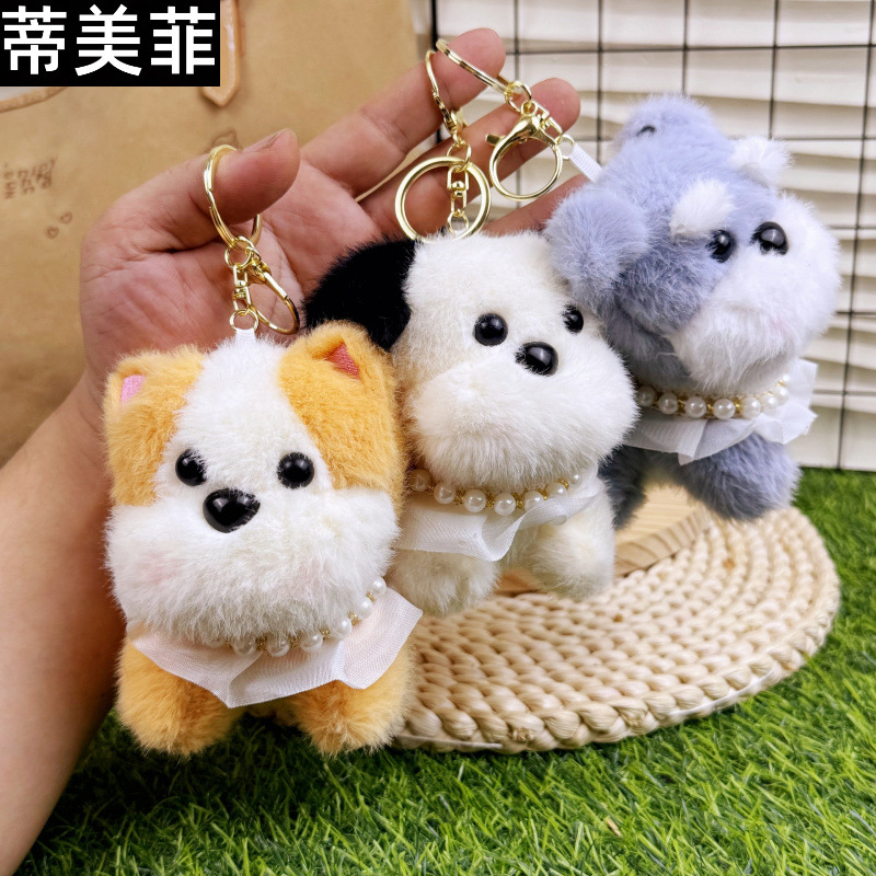 귀여운 블러쉬 작은 강아지 목걸이 개 키 체인 펜던트 크리 에이 티브 봉제 인형 작은 강아지 커플 학교 가방 펜던트