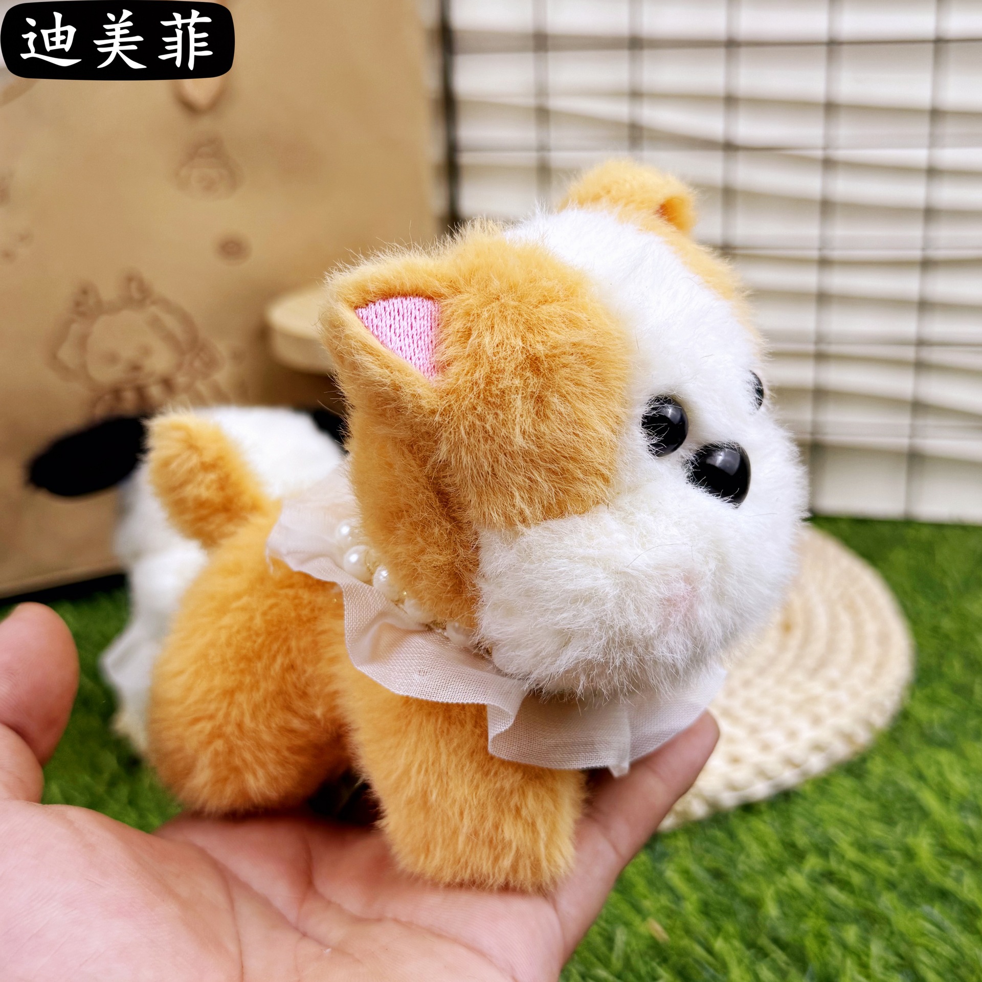 봉제 목걸이 작은 우유 개-노란색