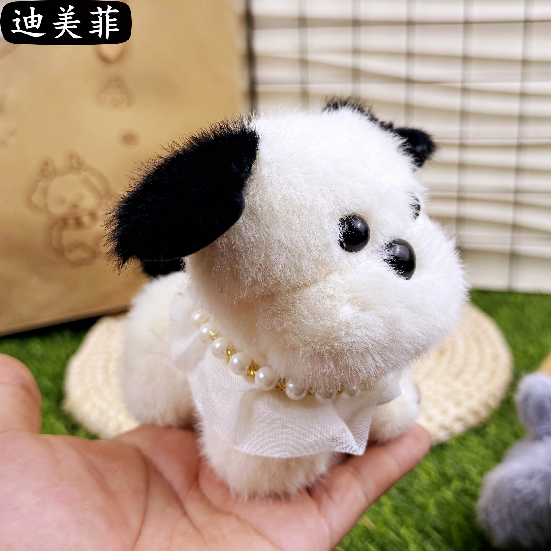 봉제 목걸이 작은 우유 개 - 흑백