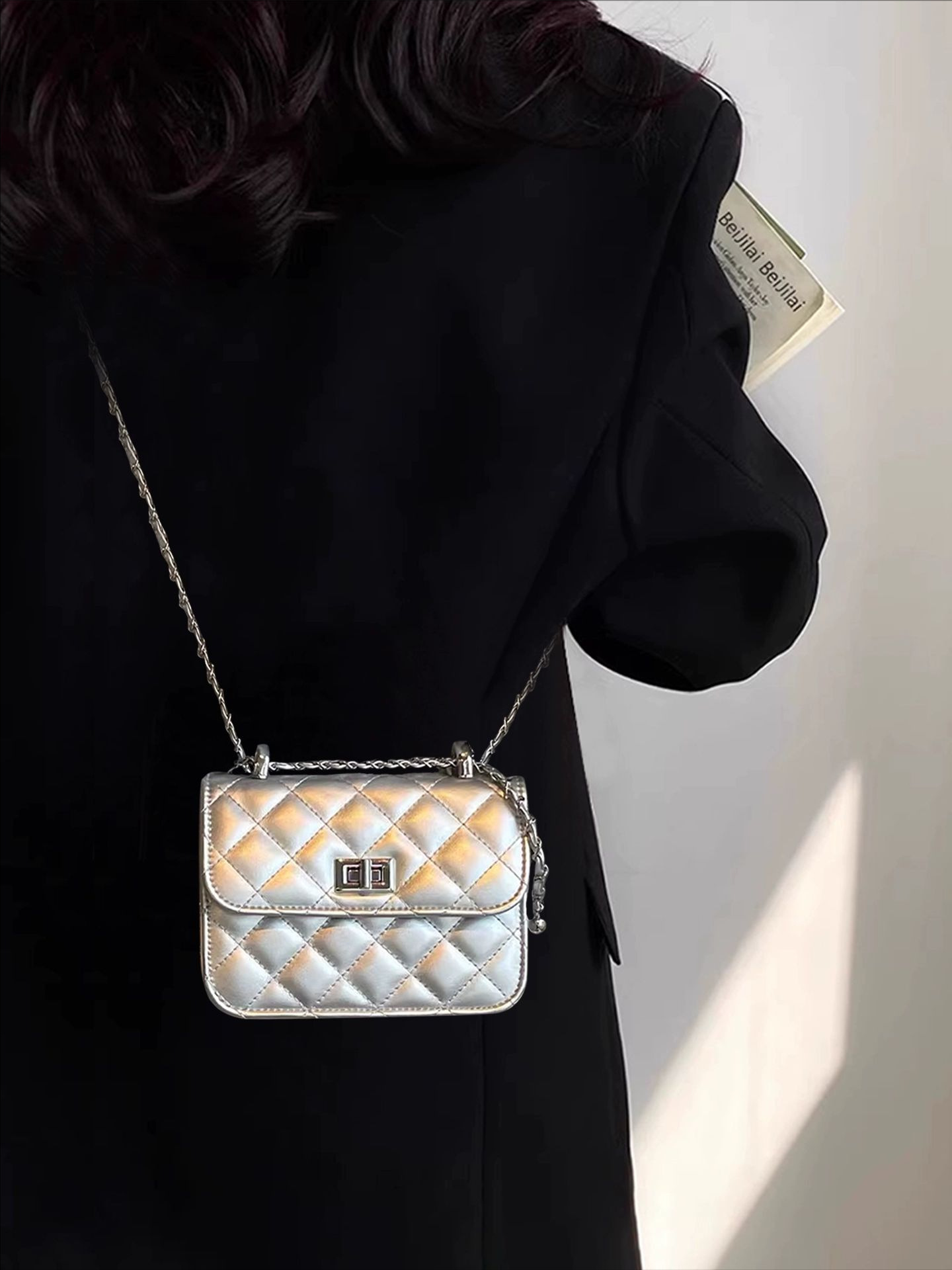 다이아몬드 패턴 가방, 고급스러운 틈새시장, 휴대폰 가방, 작은 사각 가방, 여성용 2026년 신상, 샤넬 스타일, 출퇴근 가방, 숄더백
