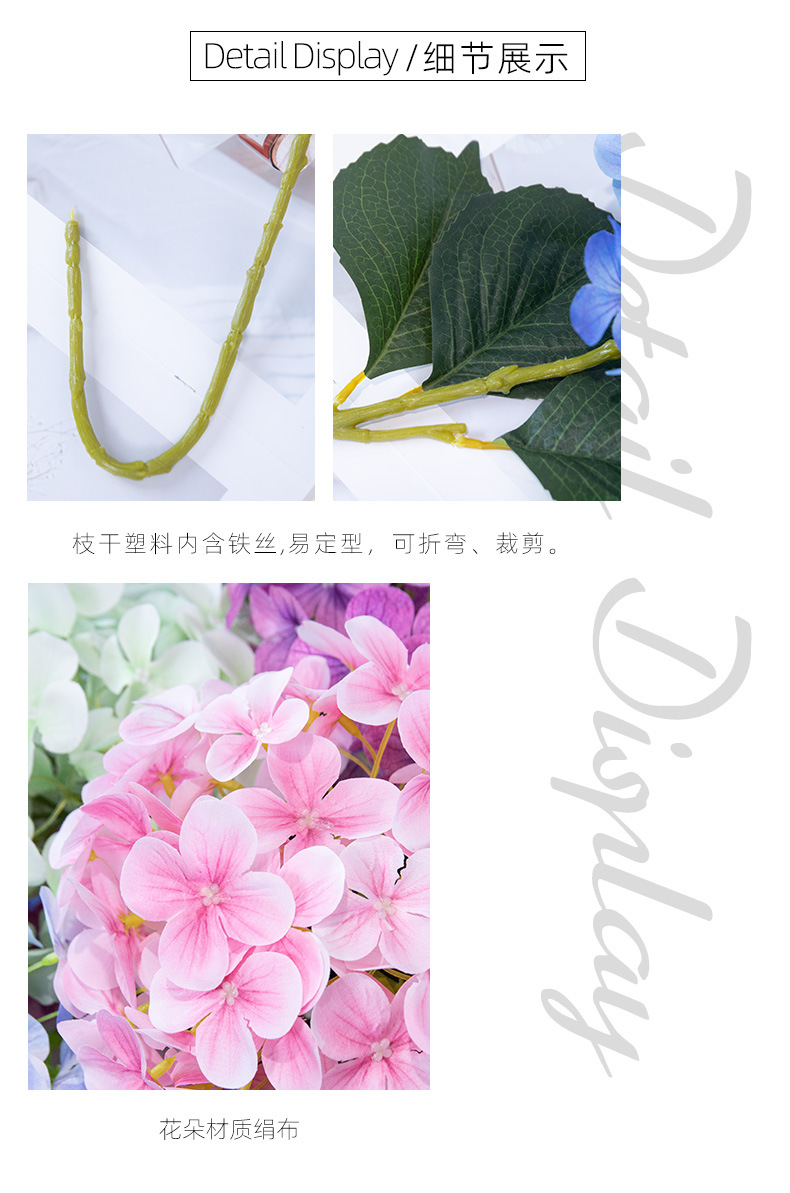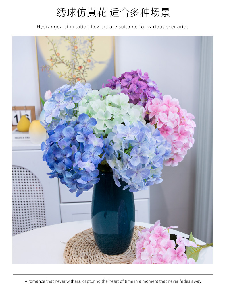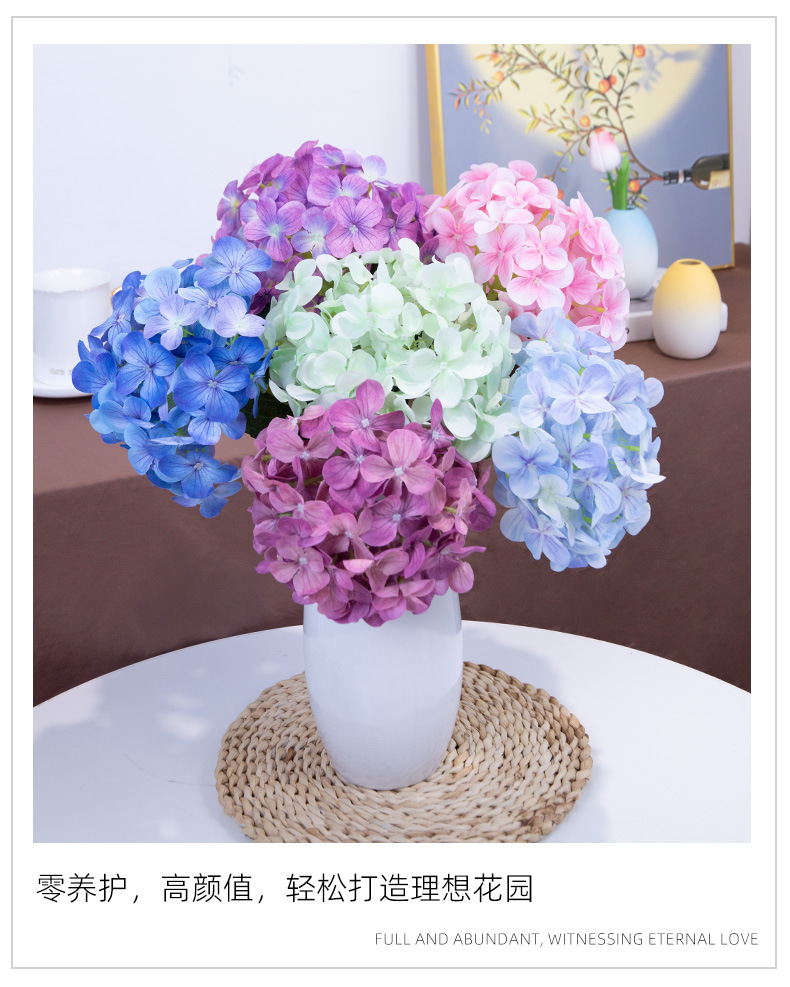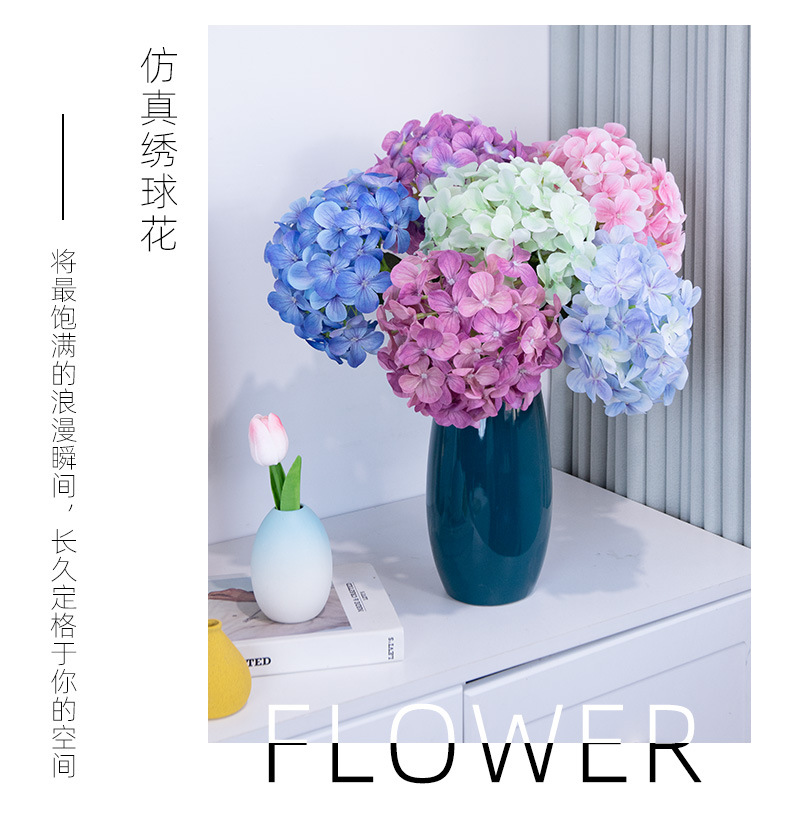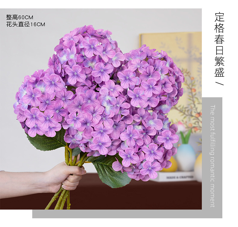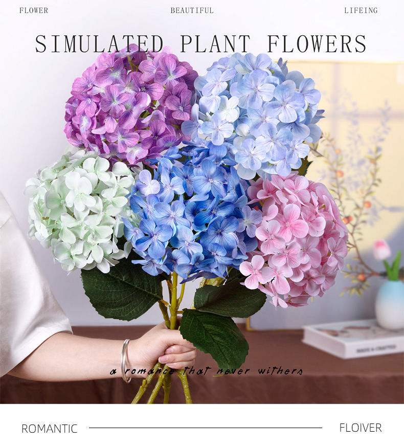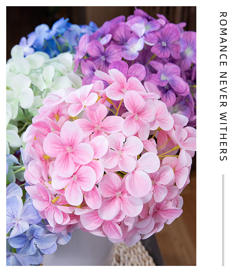 인공 꽃 3D 느낌 보습 대형 수국 호텔 장식 꽃 웨딩 장식 가짜 꽃 도매 실크 수국