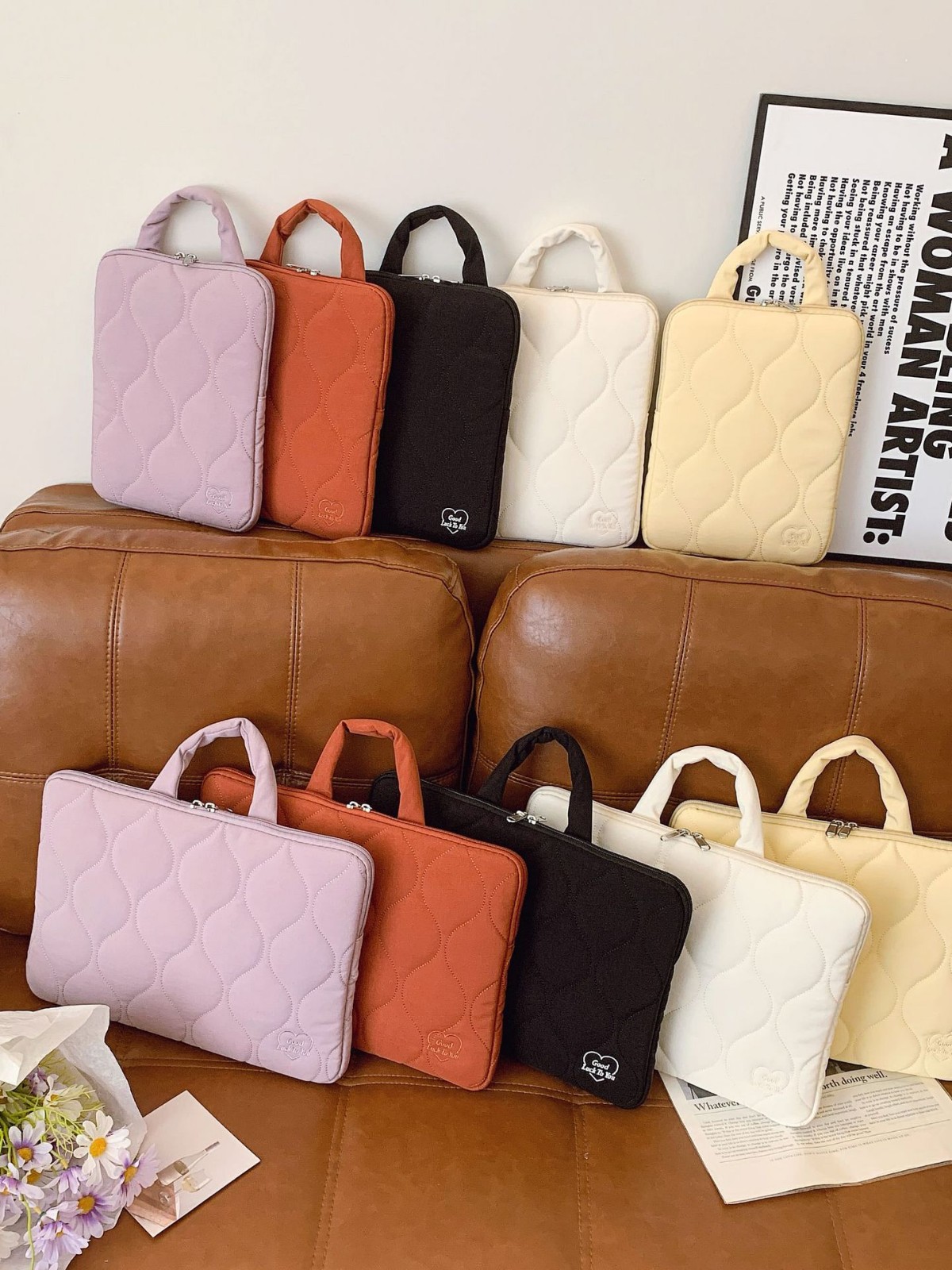 한국어 버전 ins 휴대용 자수 천 라이너 가방 마카롱 컬러 태블릿 보호 커버 낙하 방지 노트북 가방