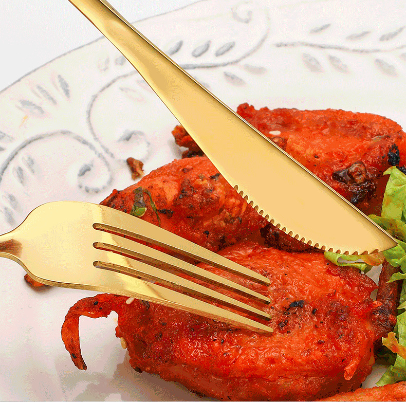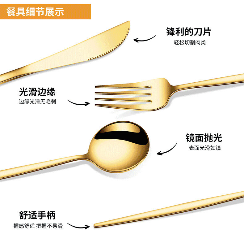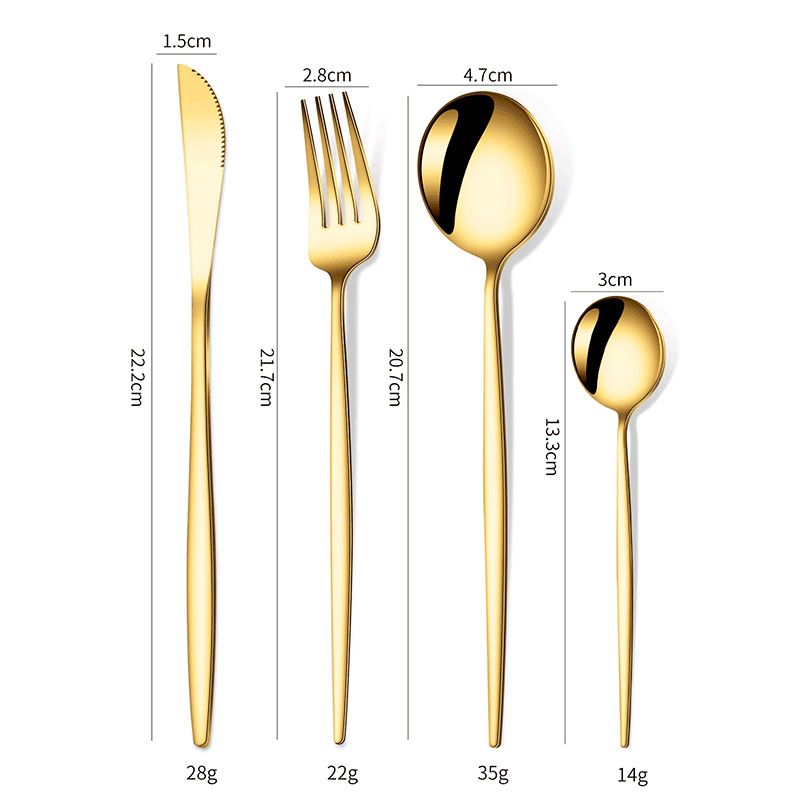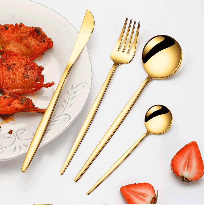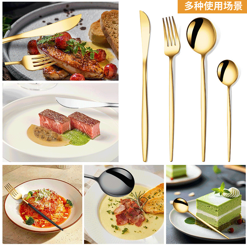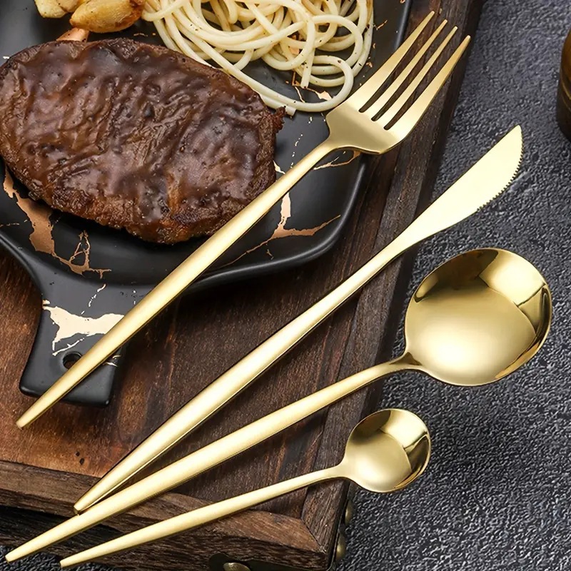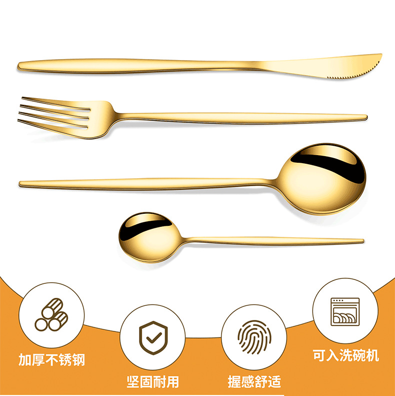 크로스보더 스테인리스 포르투갈식 서양식 식기류 나이프, 포크, 스푼, 티스푼, 골드 컬러의 독창적인 두꺼운 스테이크 나이프와 포크 4종 세트