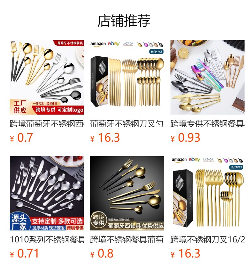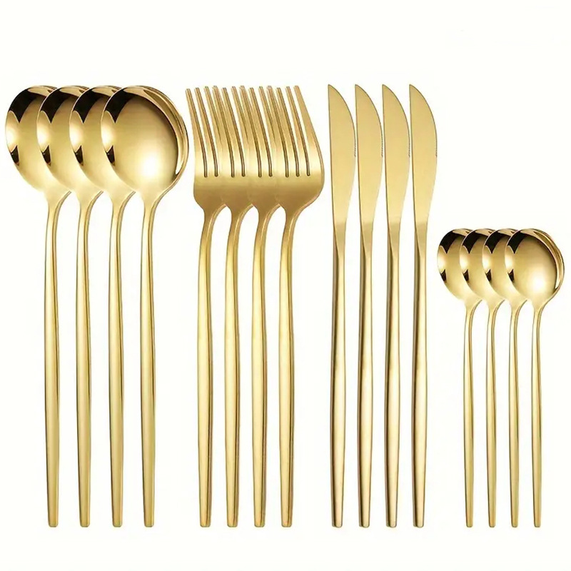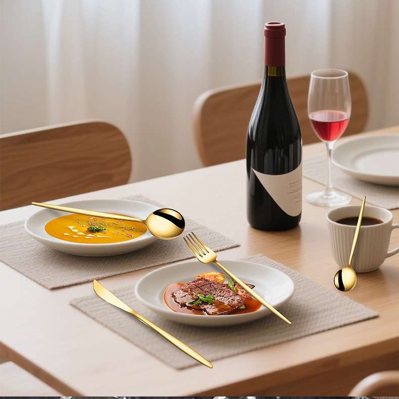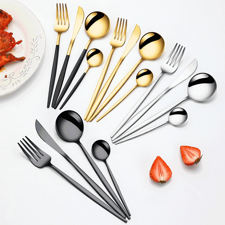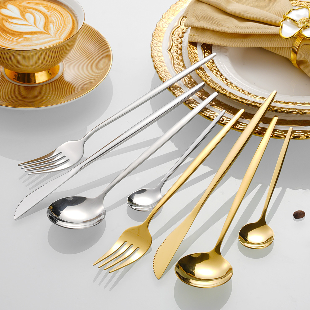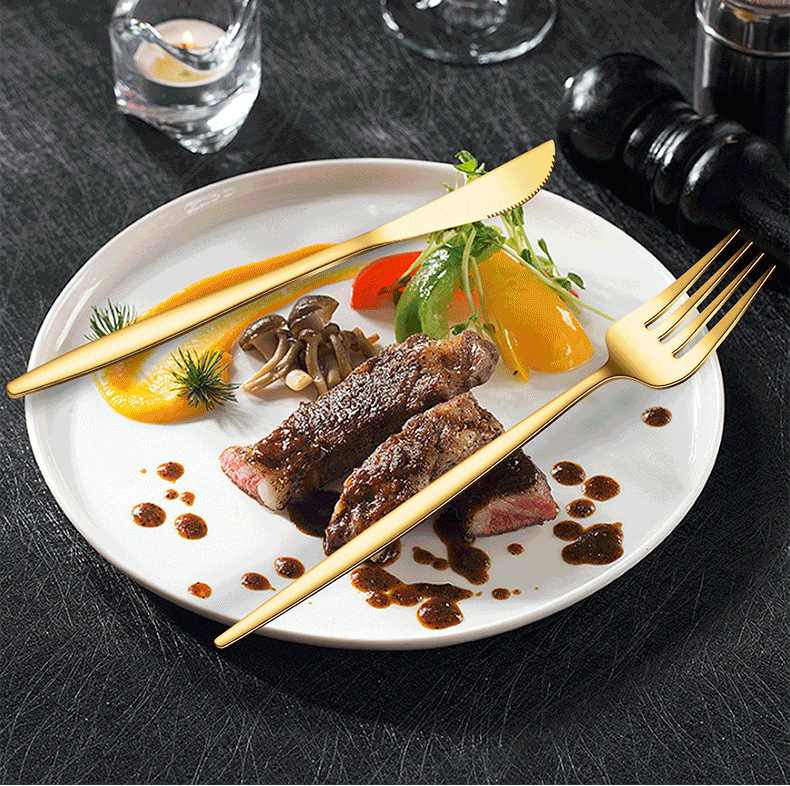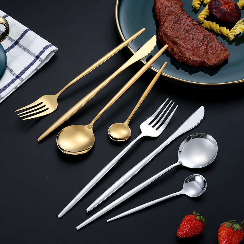 크로스보더 스테인리스 포르투갈식 서양식 식기류 나이프, 포크, 스푼, 티스푼, 골드 컬러의 독창적인 두꺼운 스테이크 나이프와 포크 4종 세트