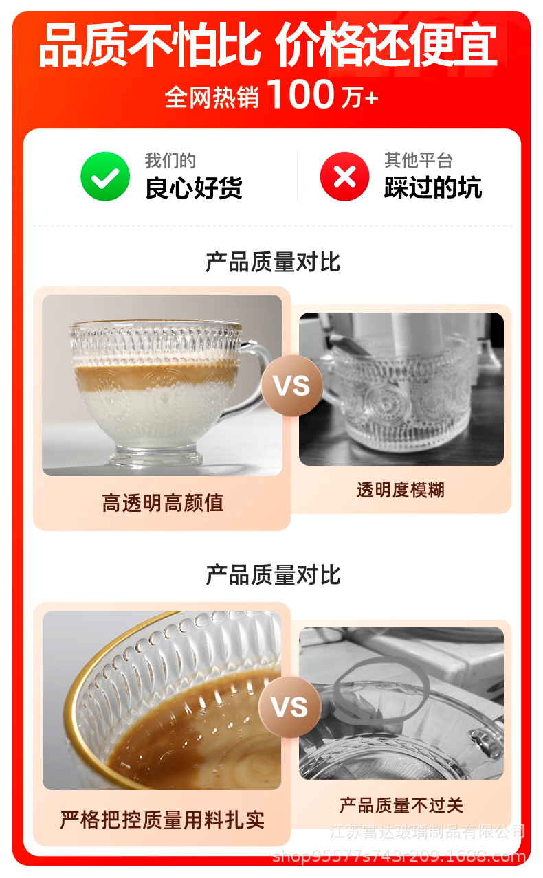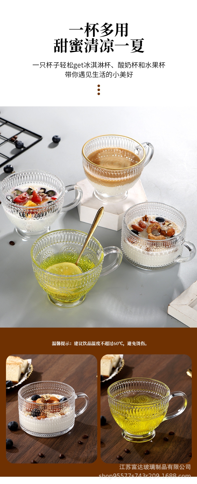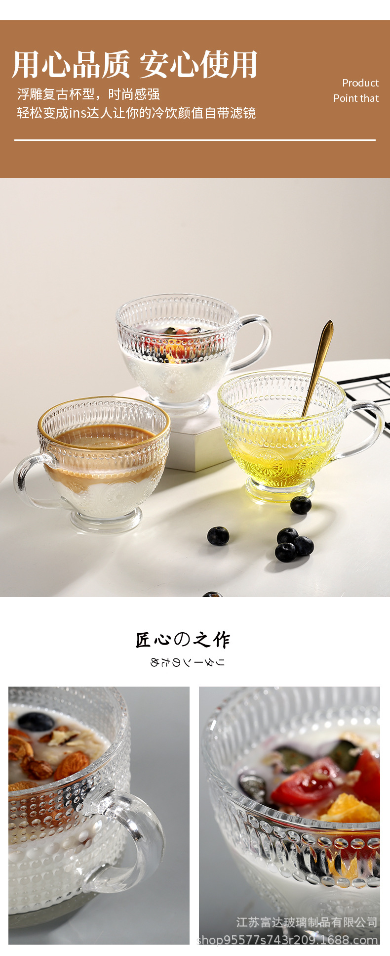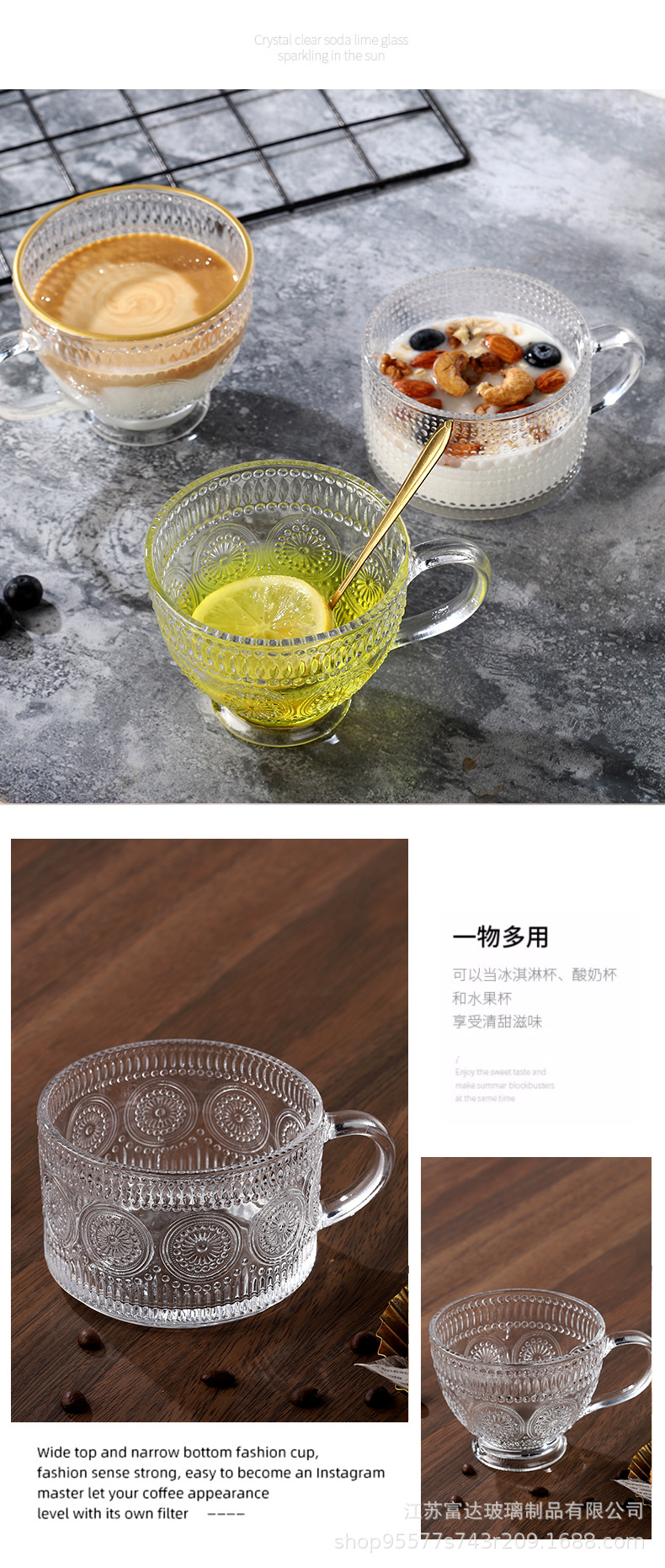 양각 해바라기 아침 식사 그릇 고급스러운 유리 컵 손잡이가있는 대용량 요구르트 그릇 가정용 시리얼 그릇