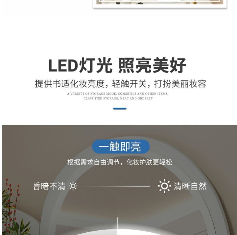 80cm 원형거울 + LED + 화장대 (서랍 4개)