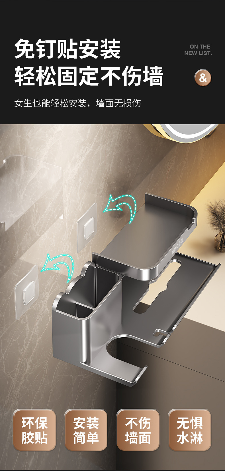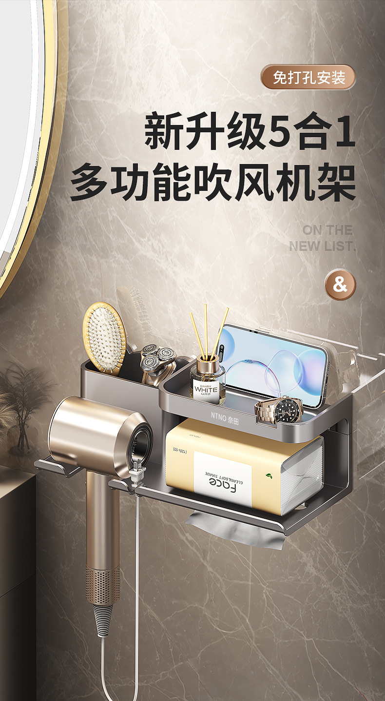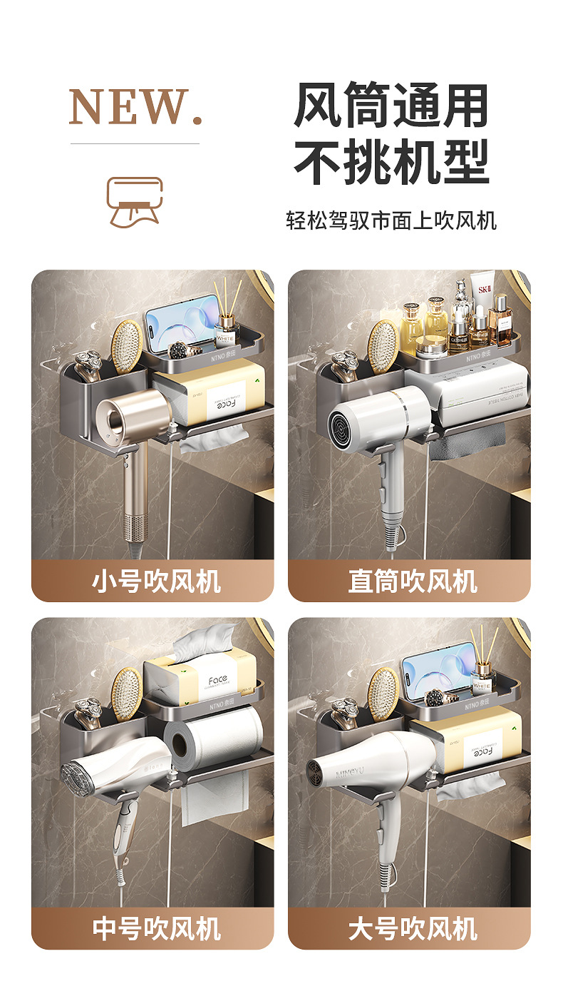 내바이방 드라이어 거치대 무타공 욕실 벽걸이 드라이어 홀더 욕실 헤어드라이어 거치대 수납대