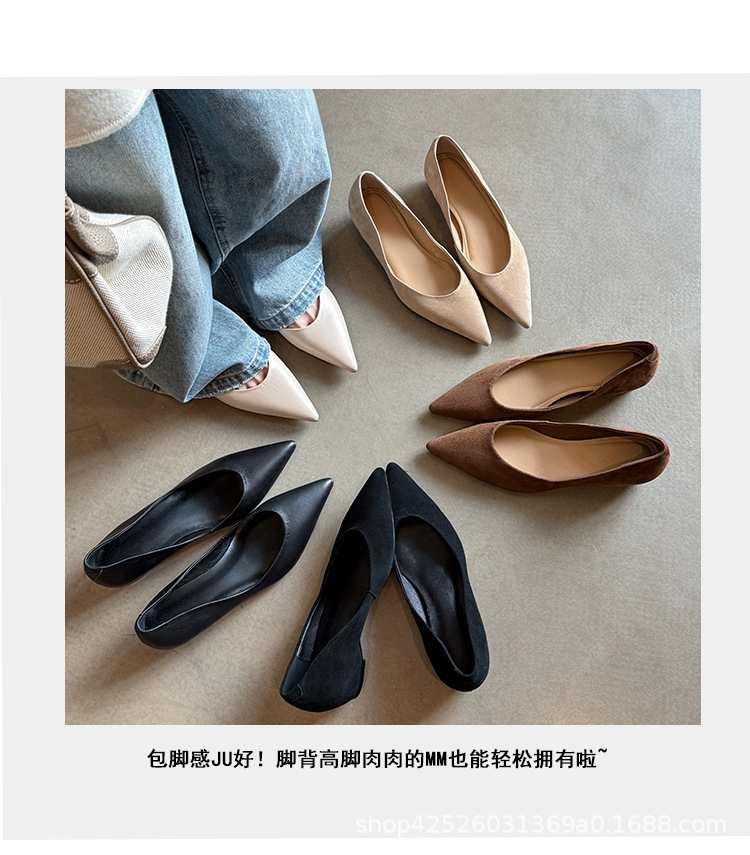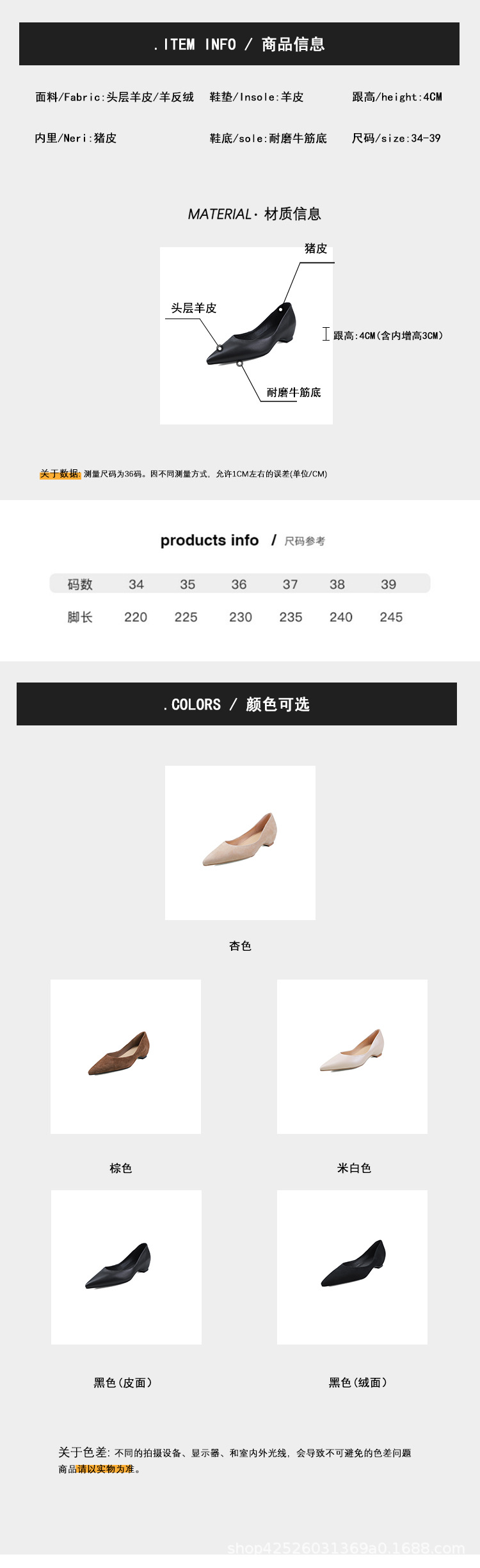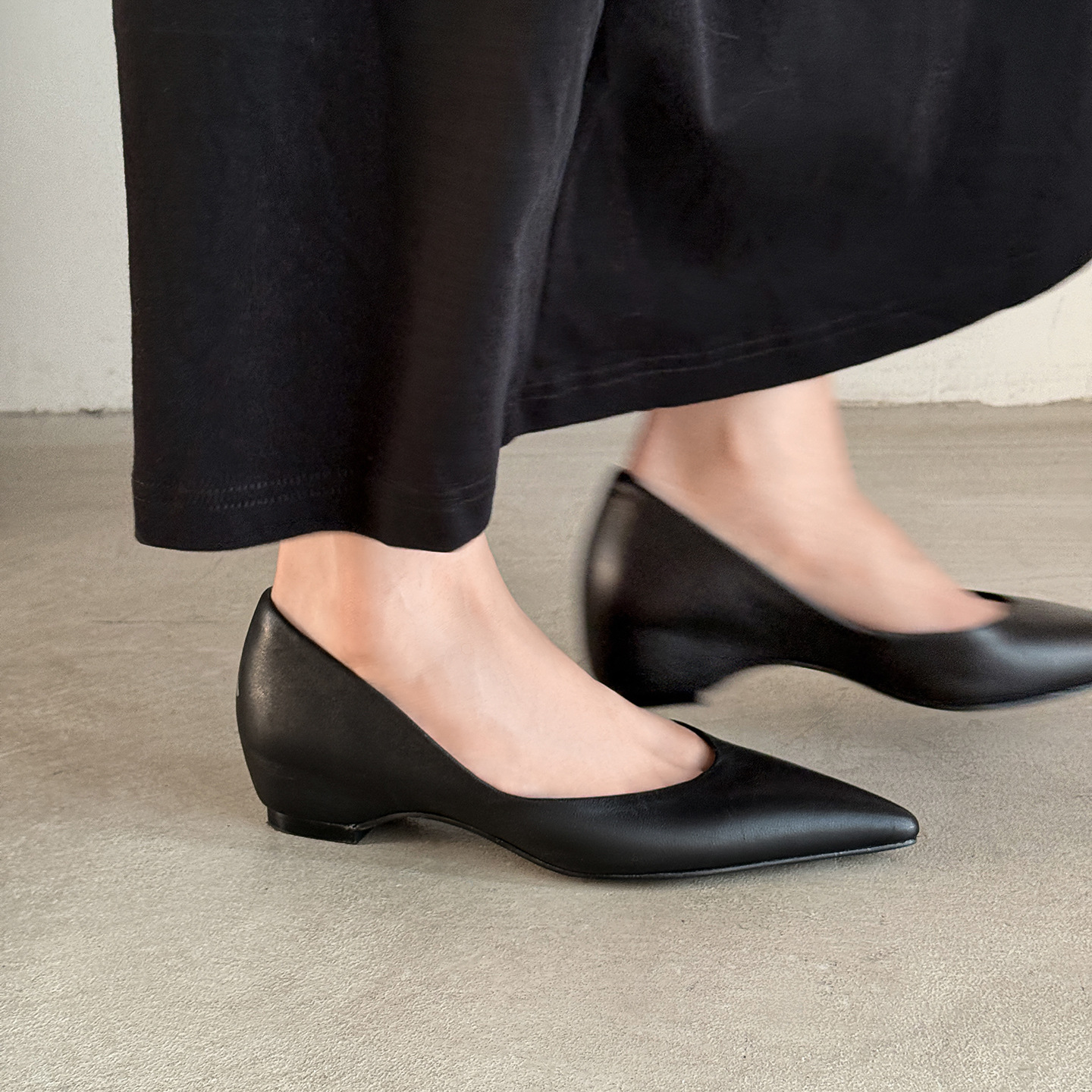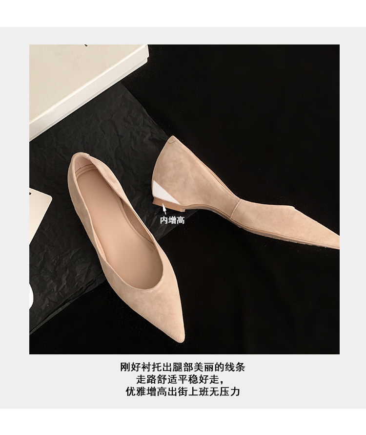 2025 신형 소가죽 뾰족코 깊은구멍 보이지 않는 웨지힐 통근화 4cm 키높이 프렌치 심플 여성화