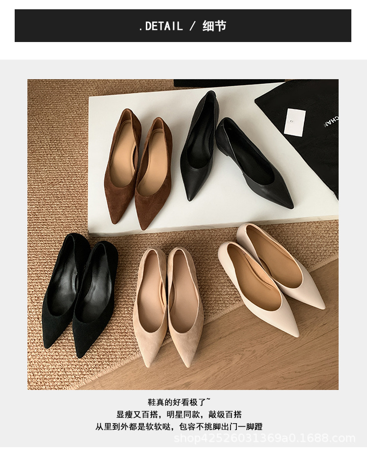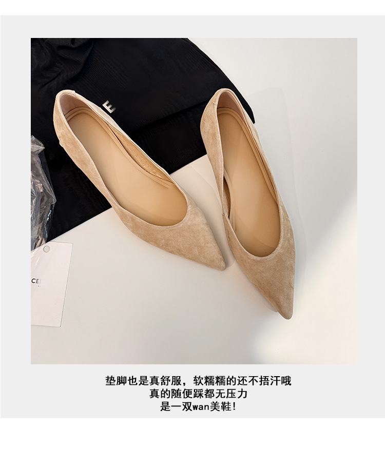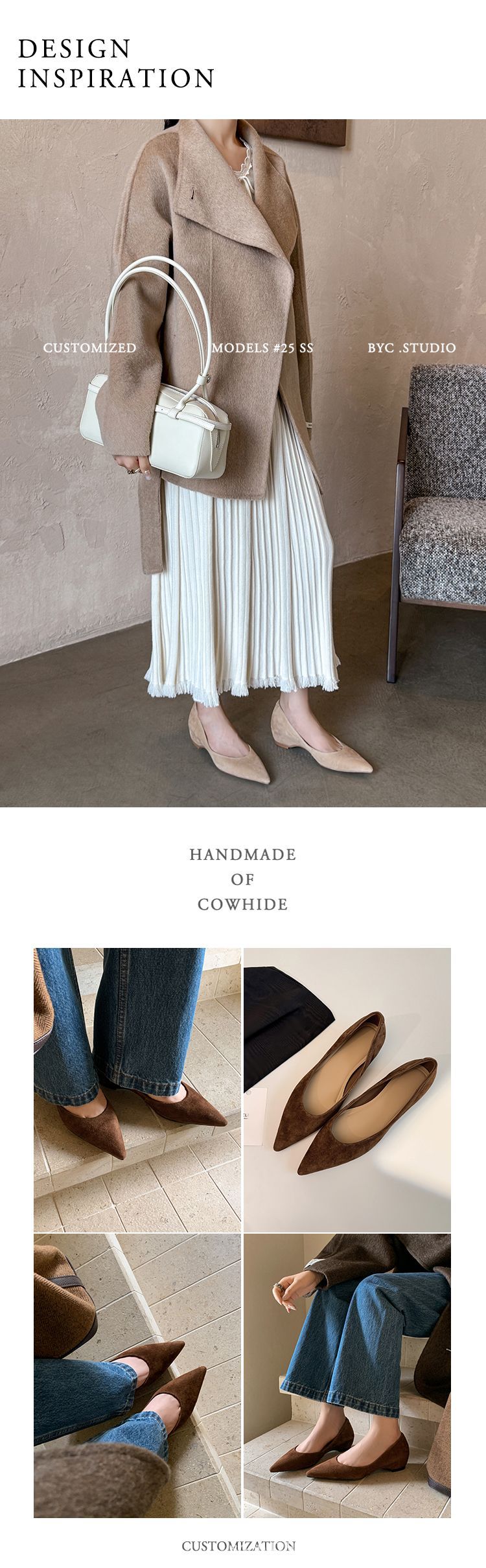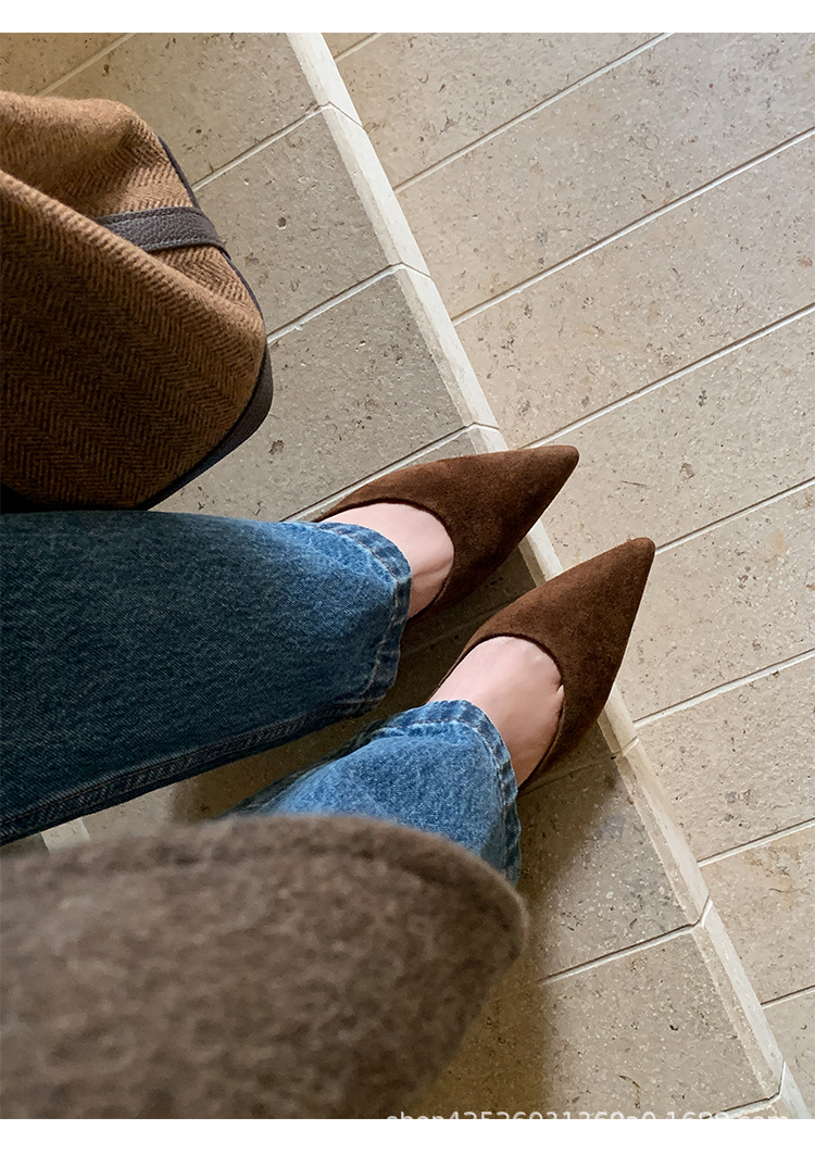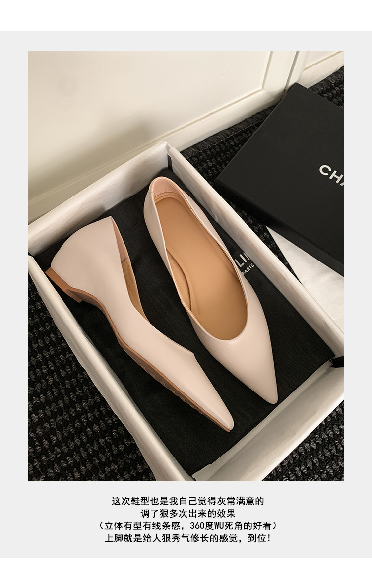 2025 신형 소가죽 뾰족코 깊은구멍 보이지 않는 웨지힐 통근화 4cm 키높이 프렌치 심플 여성화