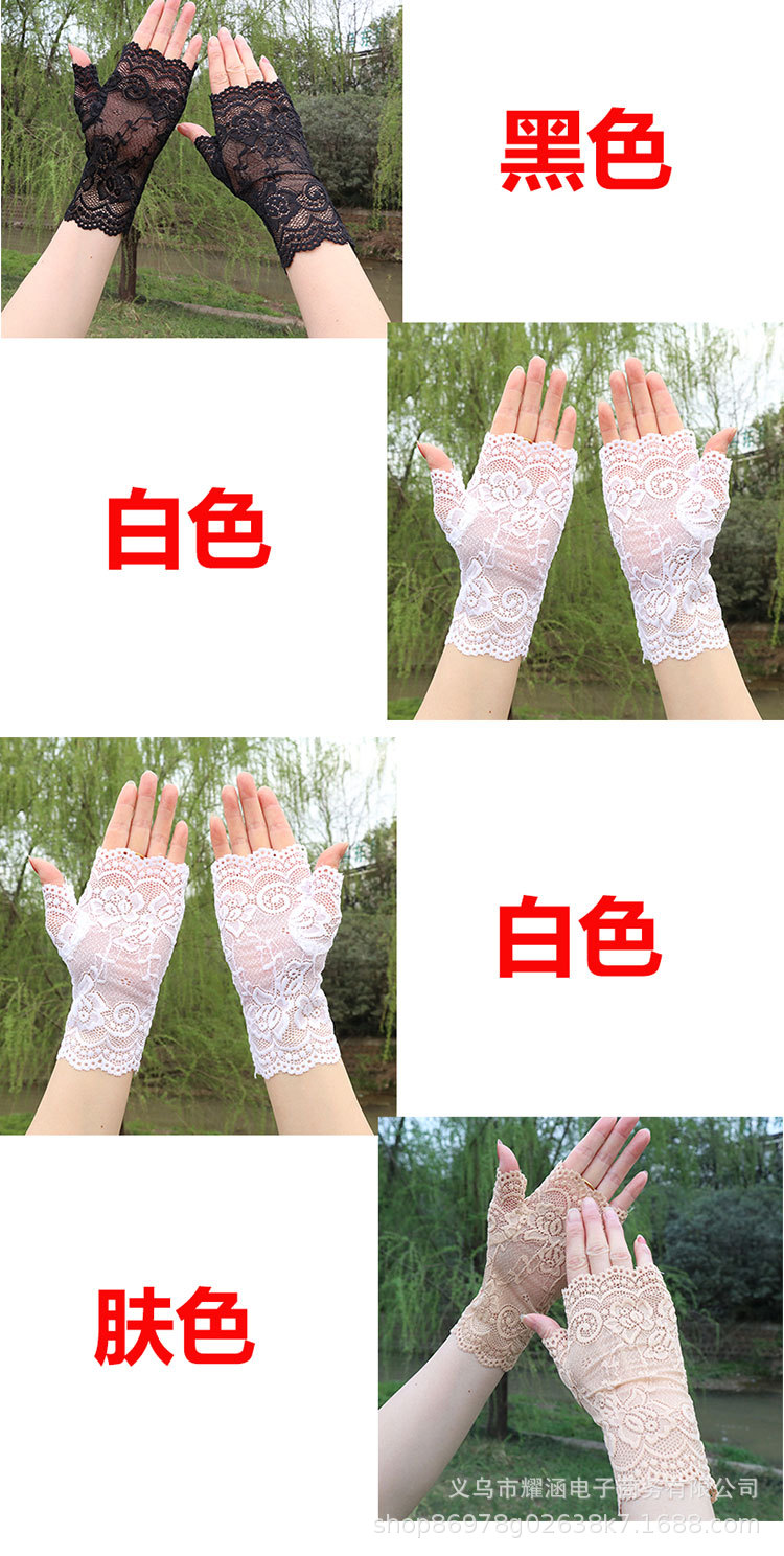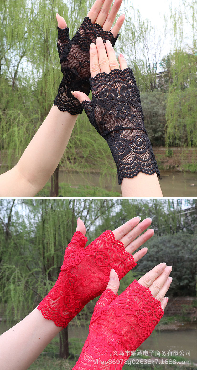 여름 여성용 레이스 자외선 차단제 장갑, 반 손가락, 얇은, 핑거리스, 터치 스크린, 검은색 메쉬, 반쪽 도매, 섹시한 성능