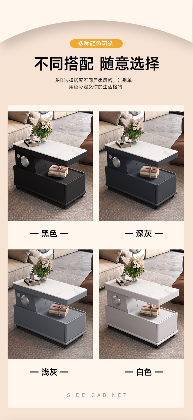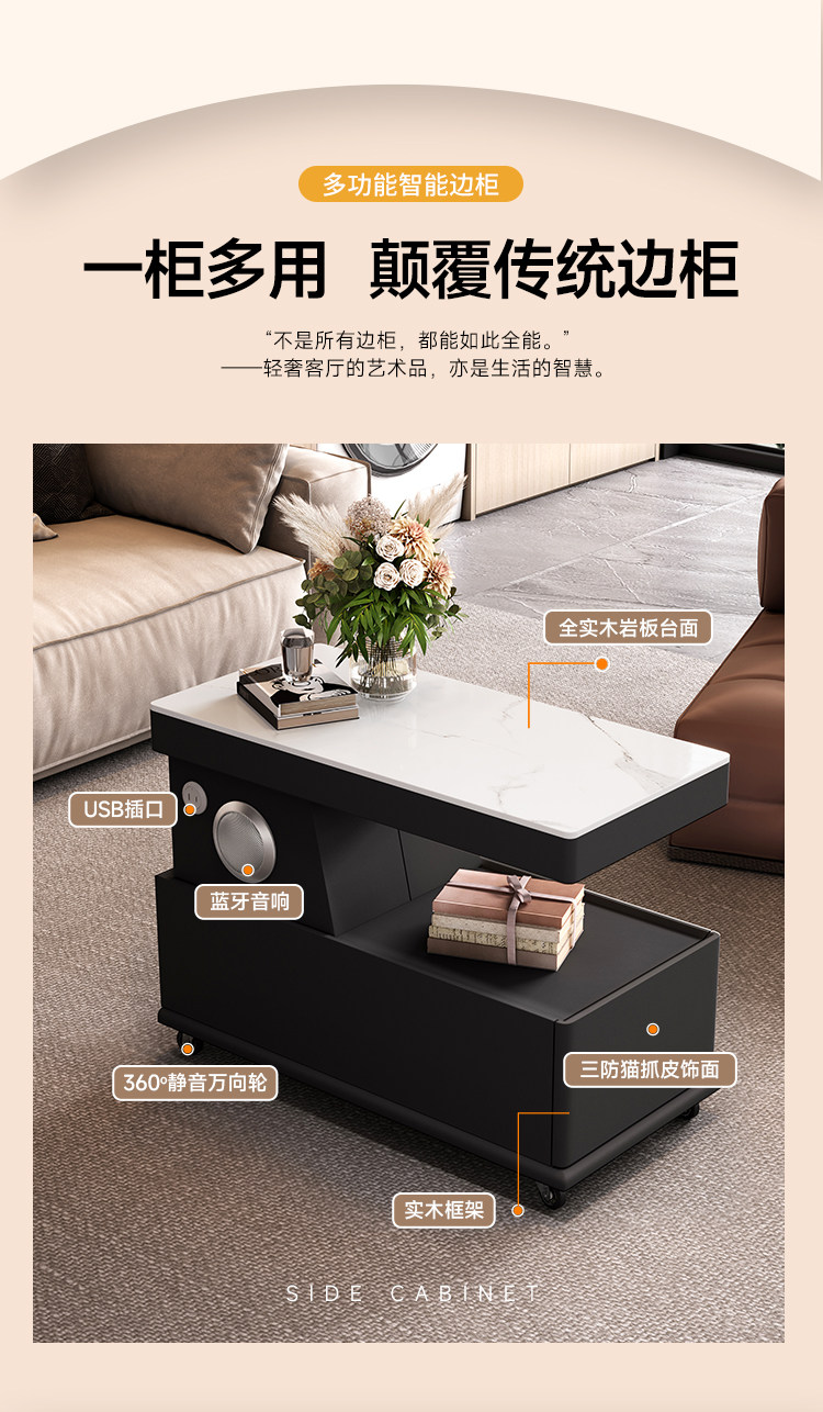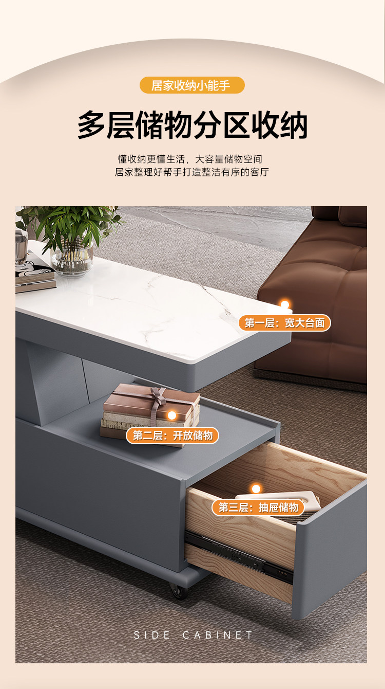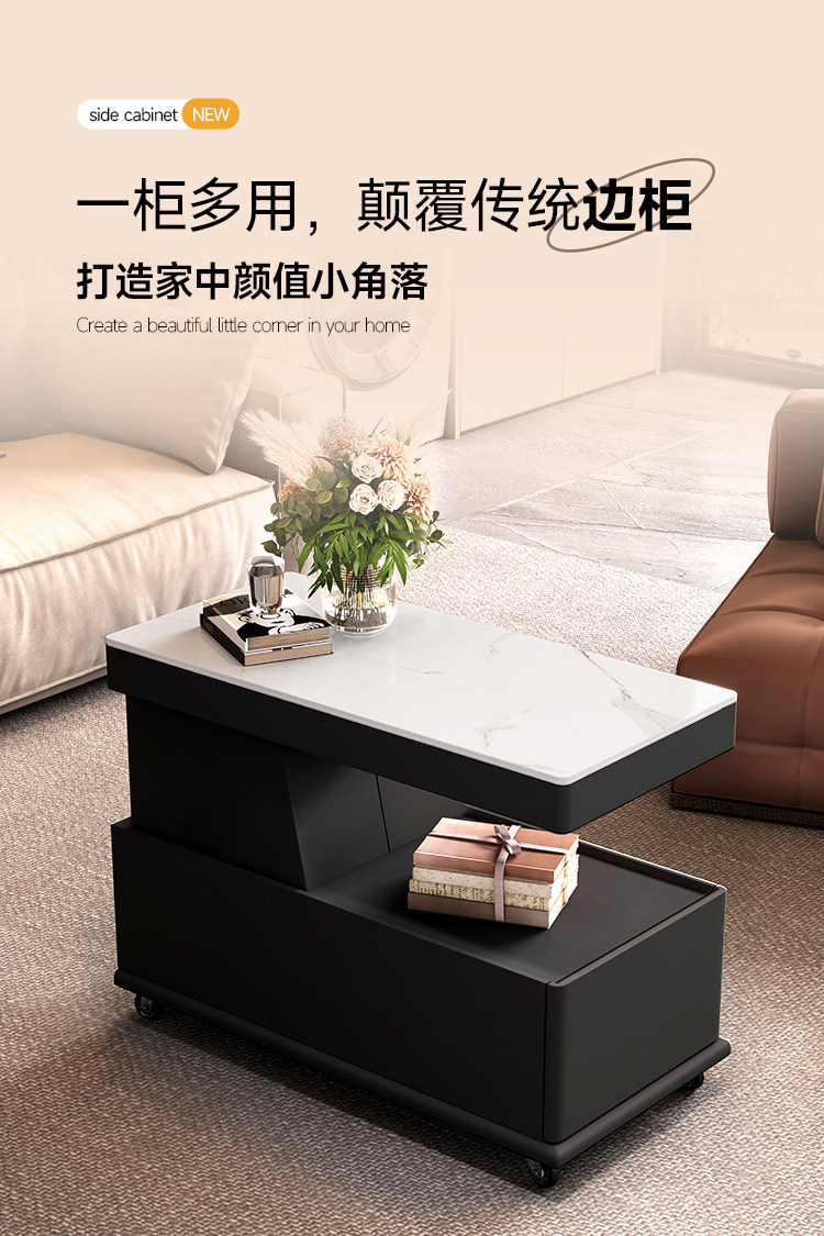이동식 커피 테이블, 소형 아파트, 모던하고 심플한 사이드 캐비닛, 가벼운 럭셔리 거실, 이탈리안 미니멀리스트 새 소파 사이드 테이블 카트