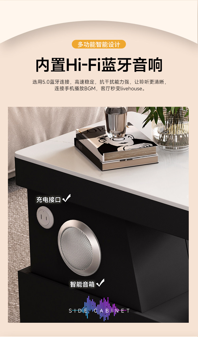 색상 비고 강화 유리 스마트 상판 무선 충전 + 블루투스 스피커 + USB 충전 포트