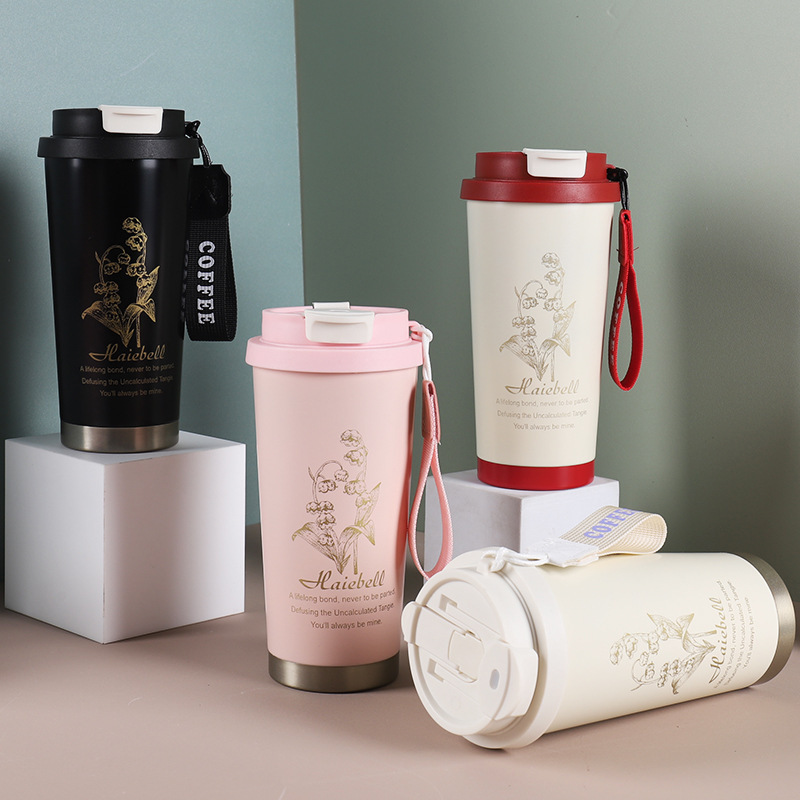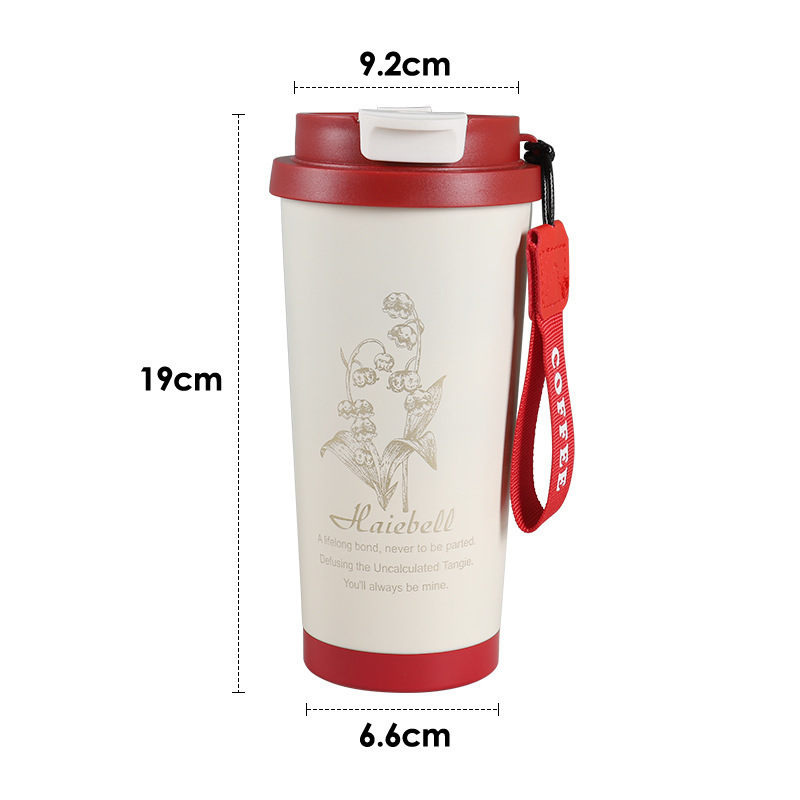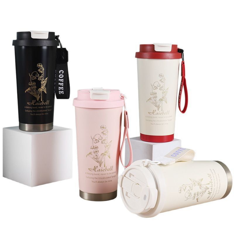 316不锈钢保温杯双饮随行水杯高颜值吸管杯铃兰花咖啡杯便携杯子
