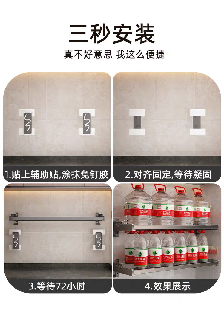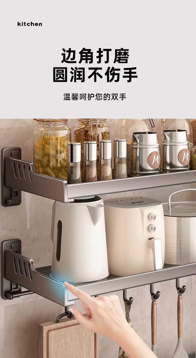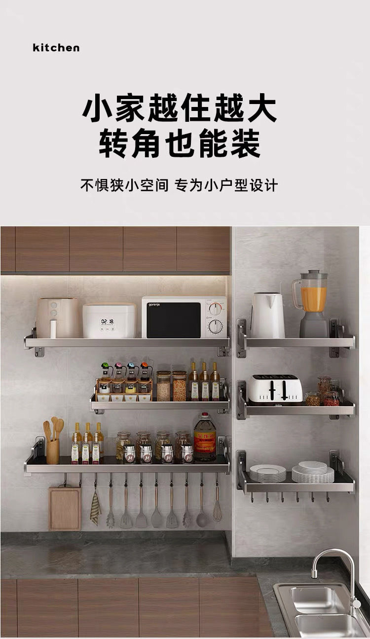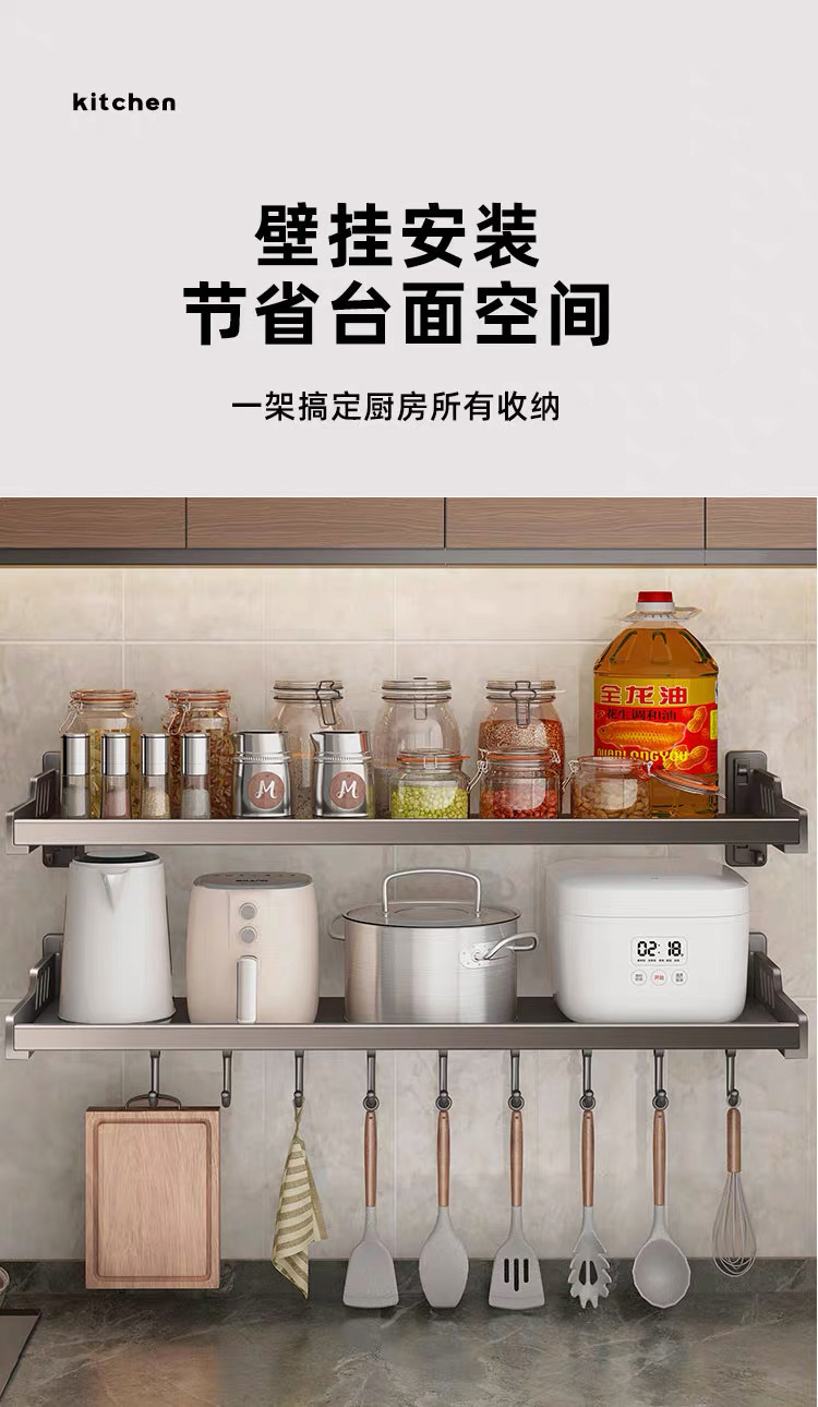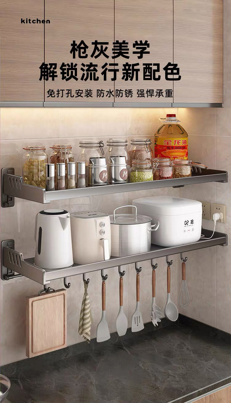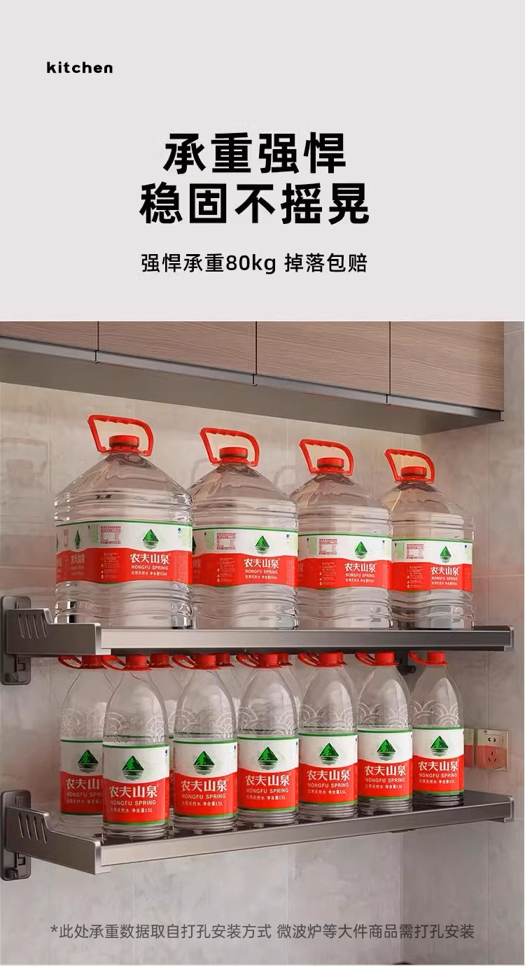 가정용 고급형 넓은 사이즈 무타공 양념통, 주방 수납 선반, 벽걸이형 전자레인지/오븐 거치대 수납 선반