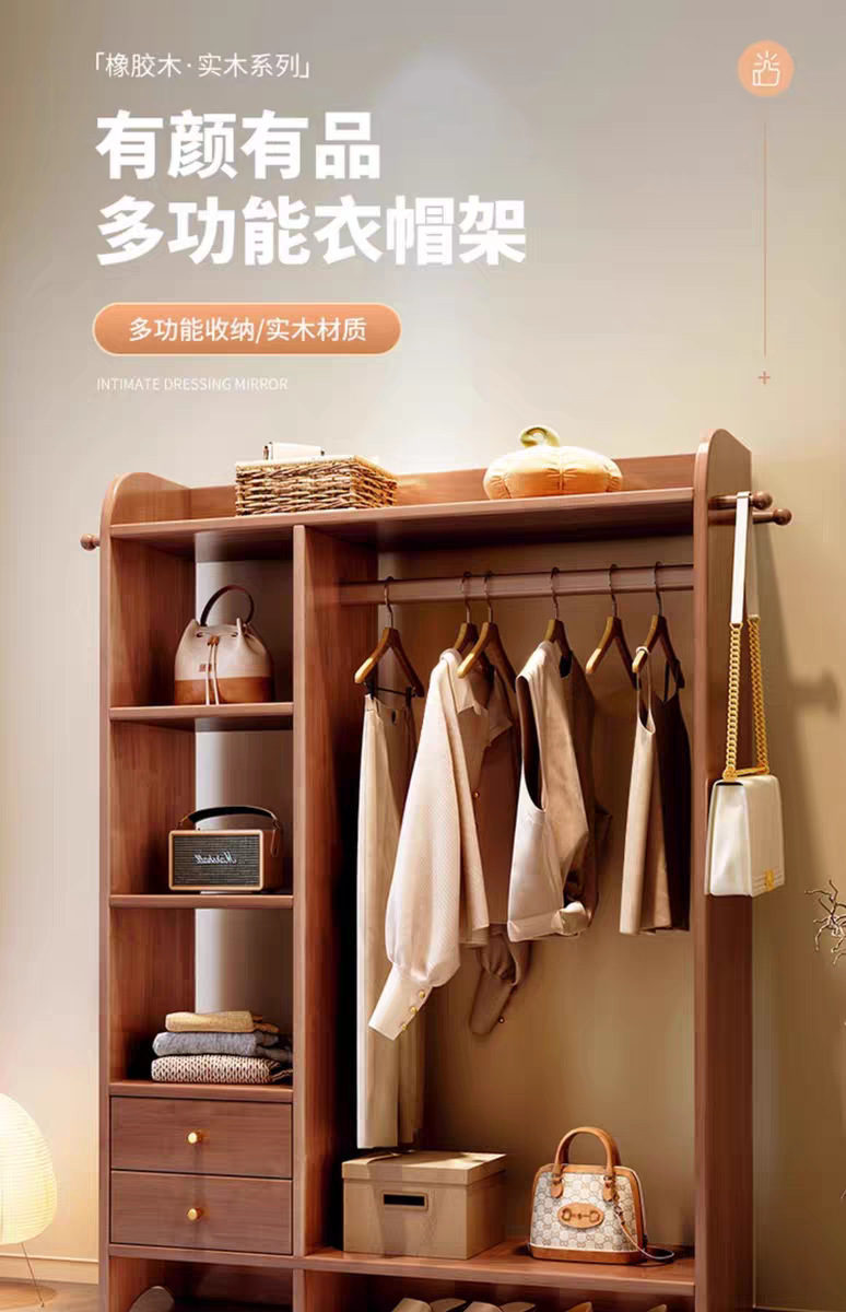 단단한 나무 코트 랙 바닥 침실 홈 옷걸이 서랍 보관 랙 룸 다기능 의류 보관 랙