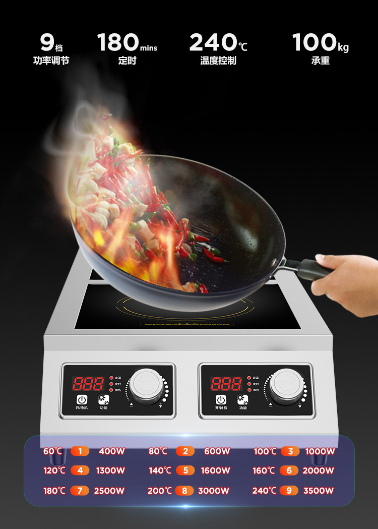 상업용 양방향 인덕션 쿠커 3500W 양방향 수직 데스크탑 평면 쿠커 고출력 가정용 제조업체 직접 판매 국경 간
