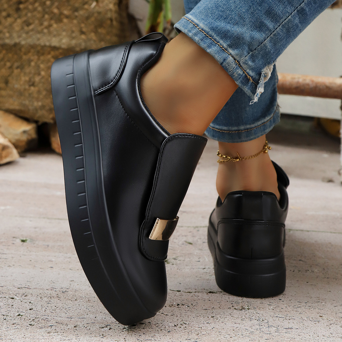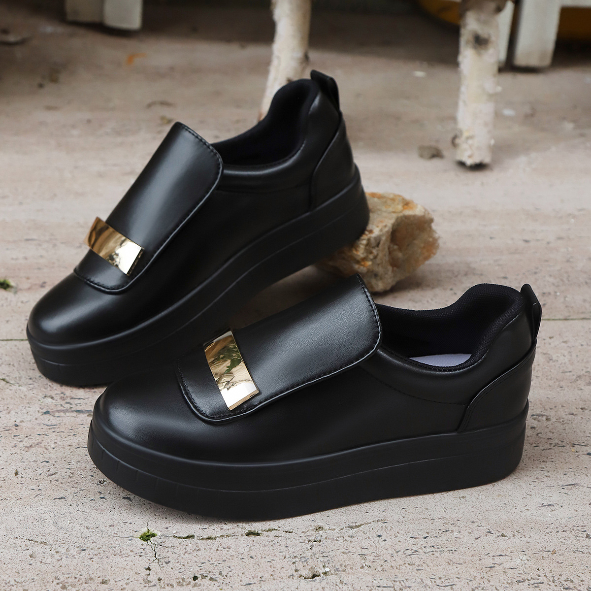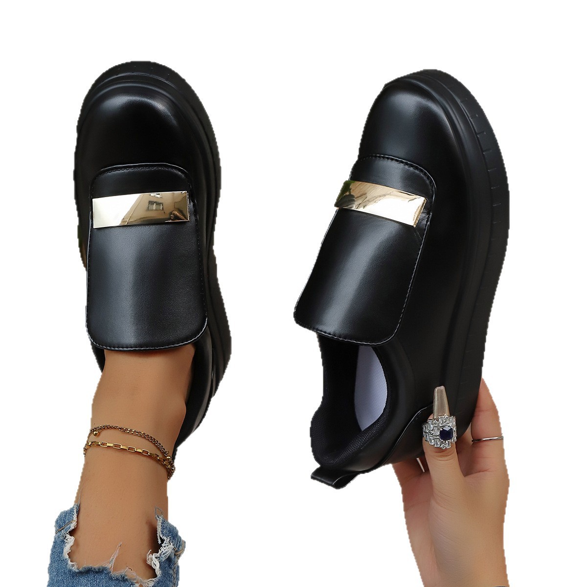 2025년 여름 신상품 대형 여성화 캐주얼 슈즈 로퍼 두꺼운 밑창 키높이 부드러운 밑창 여성 가죽 신발