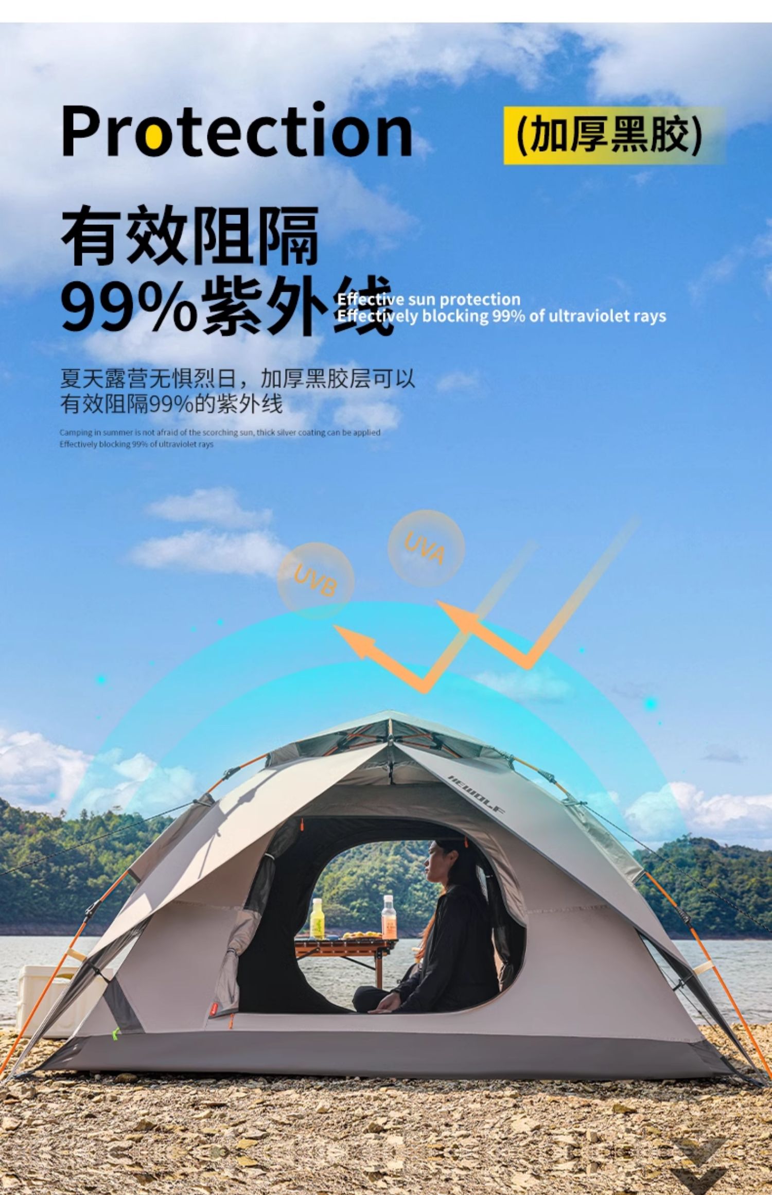 실버코팅 업그레이드 대형 더블 레이어 [텐트+더블에어매트+텐트라이트] (사계절 폭우방지 모델)