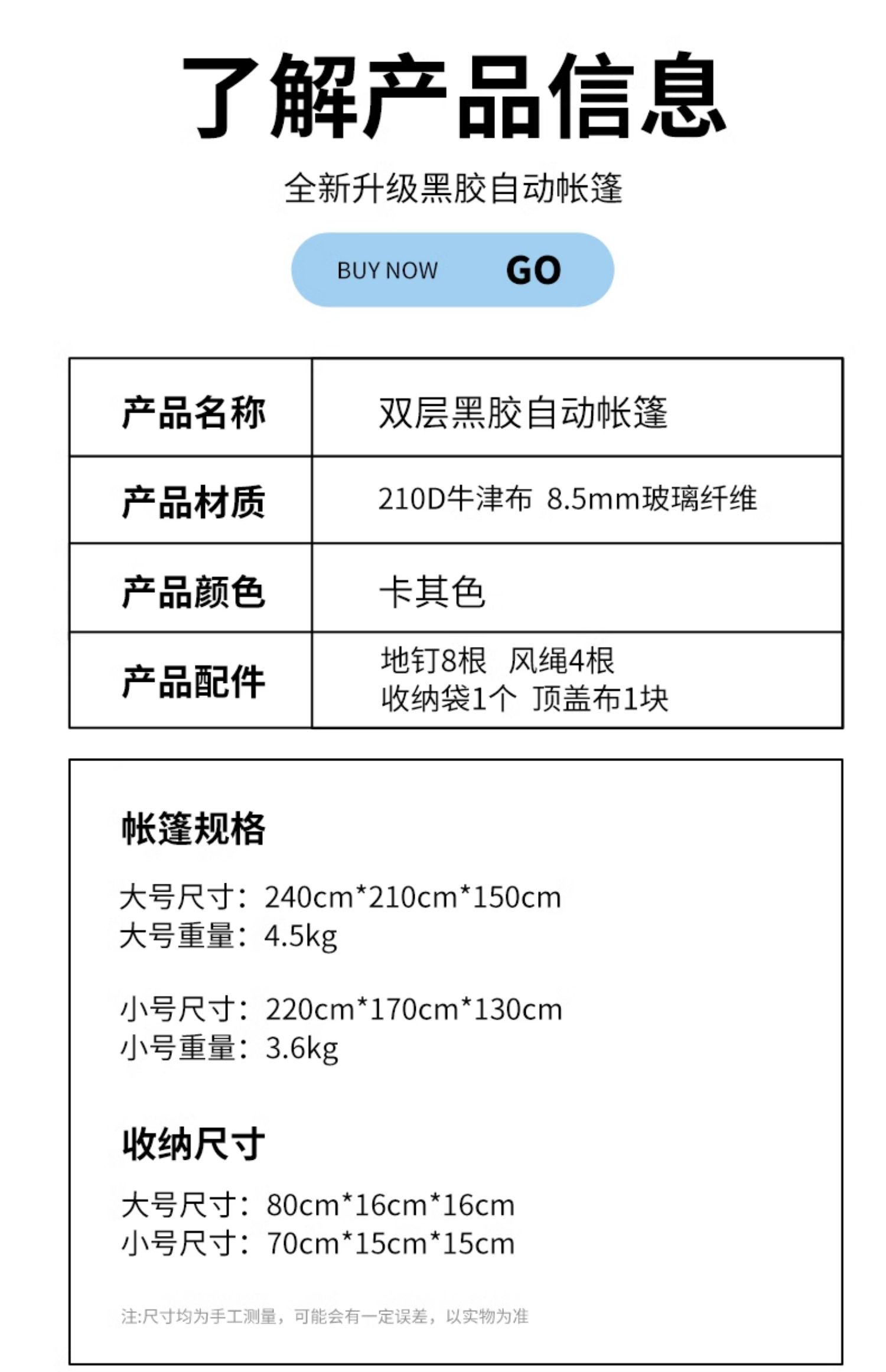 실버코팅 업그레이드 소형 더블 레이어 [텐트+방습매트+그라운드매트+더블에어매트+텐트라이트] (사계절 폭우방지모델)
