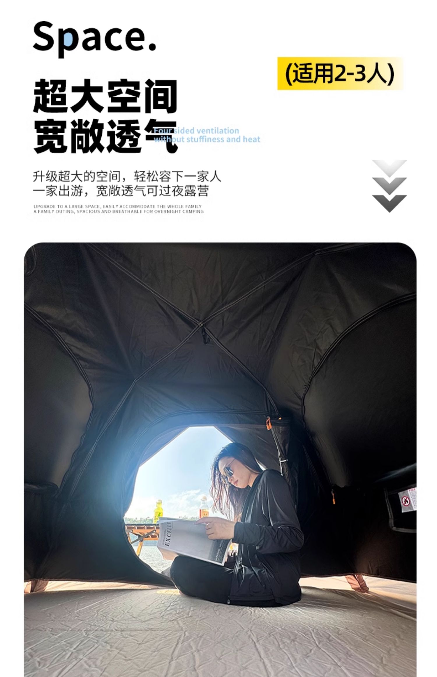 비닐업그레이드 대형 더블 레이어 [텐트+더블에어매트리스+텐트라이트] (사계절 폭우방지모델)
