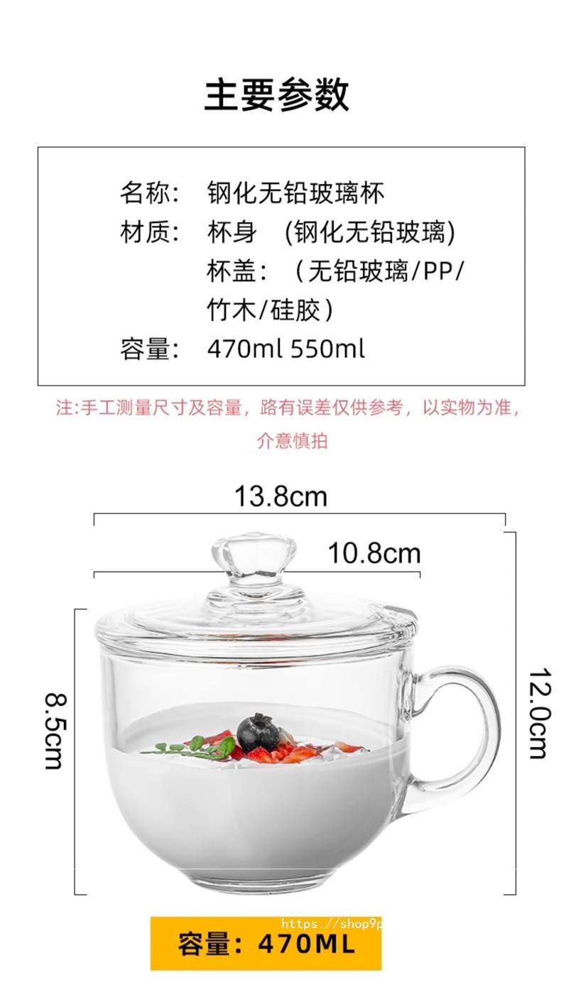 470ml无铅早餐杯(2只)+玻璃盖(2只)