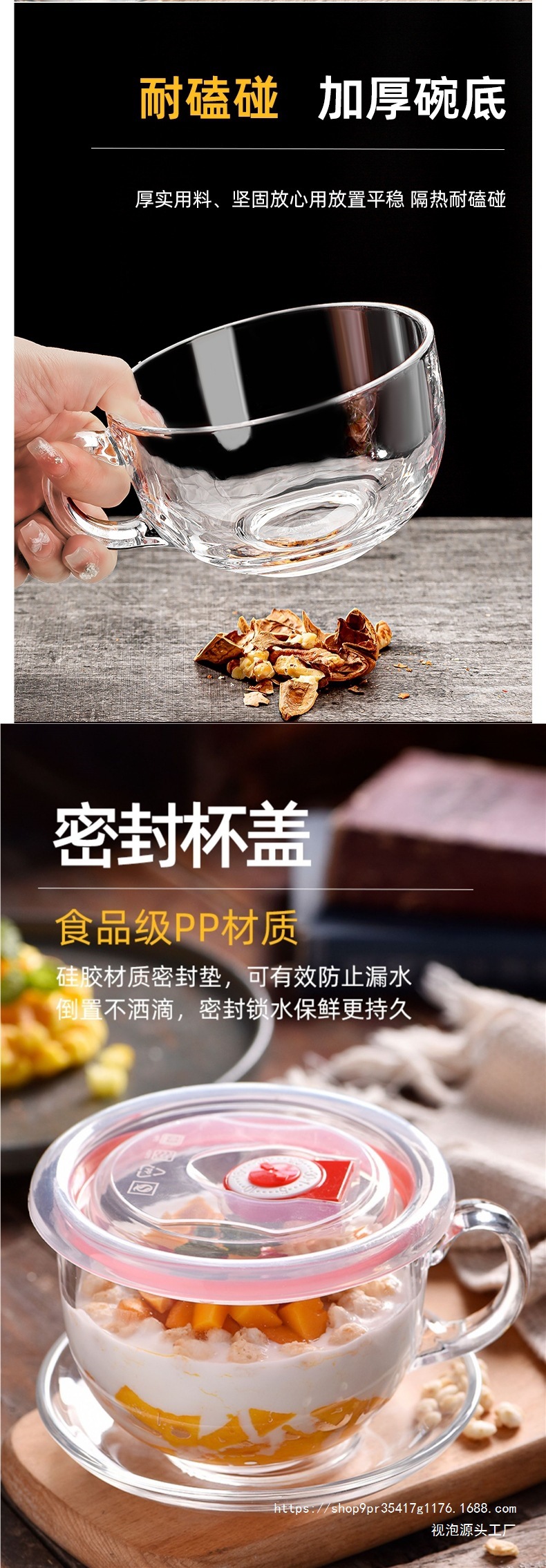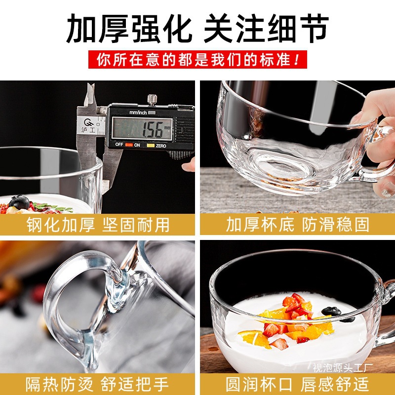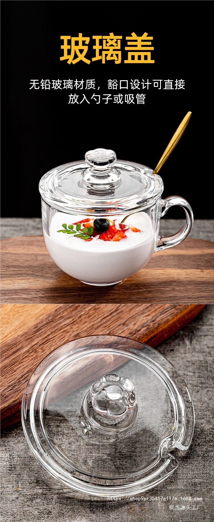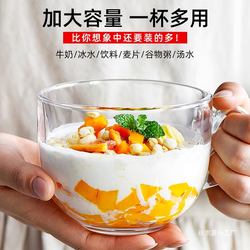 大容量玻璃杯燕麦牛奶早餐杯子冲泡麦片碗带把水杯带盖勺女咖视泡