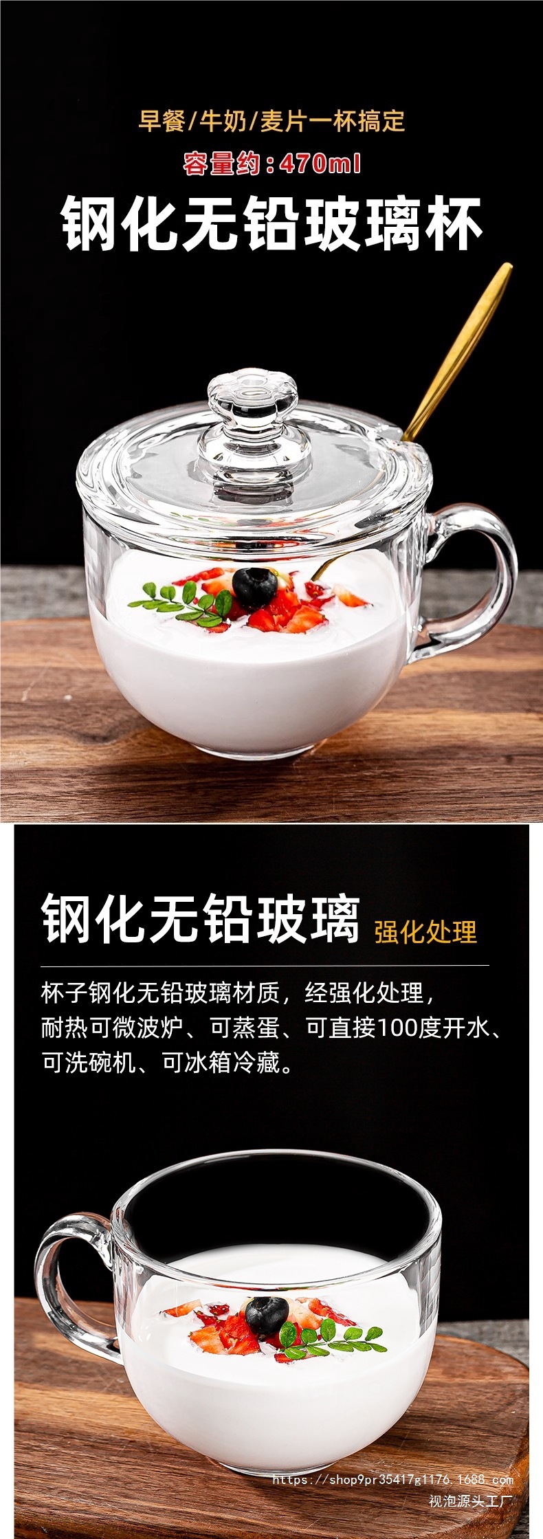 【无铅加厚】470ml早餐杯+玻璃盖+金色勺子
