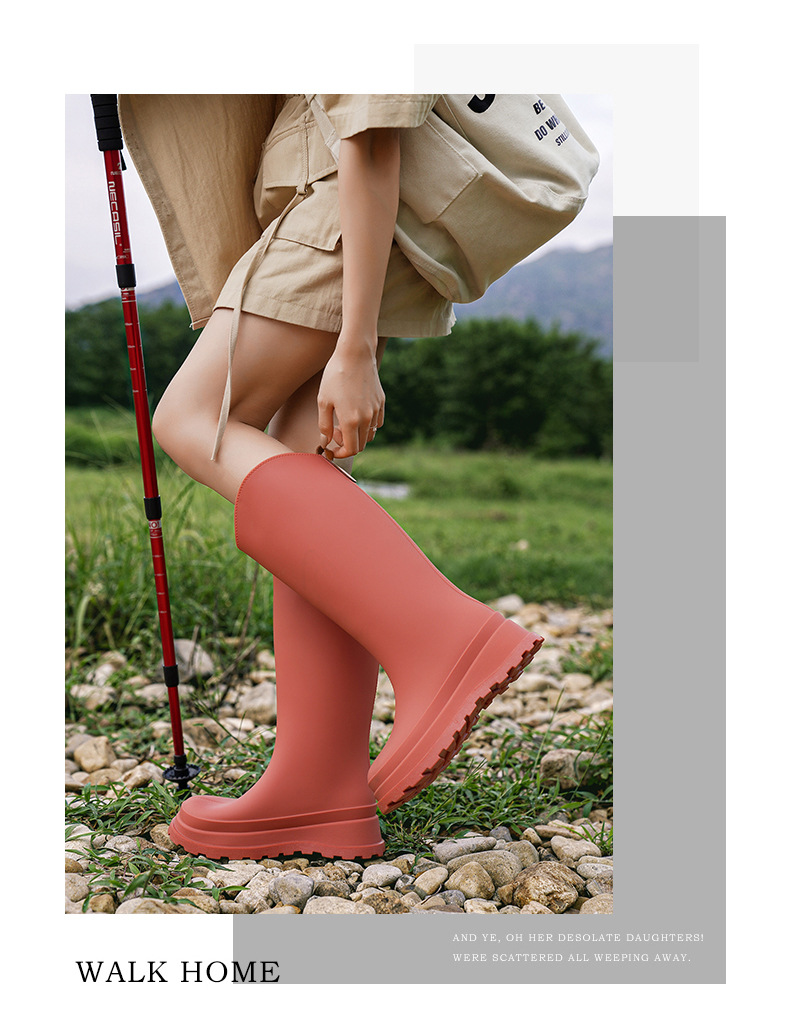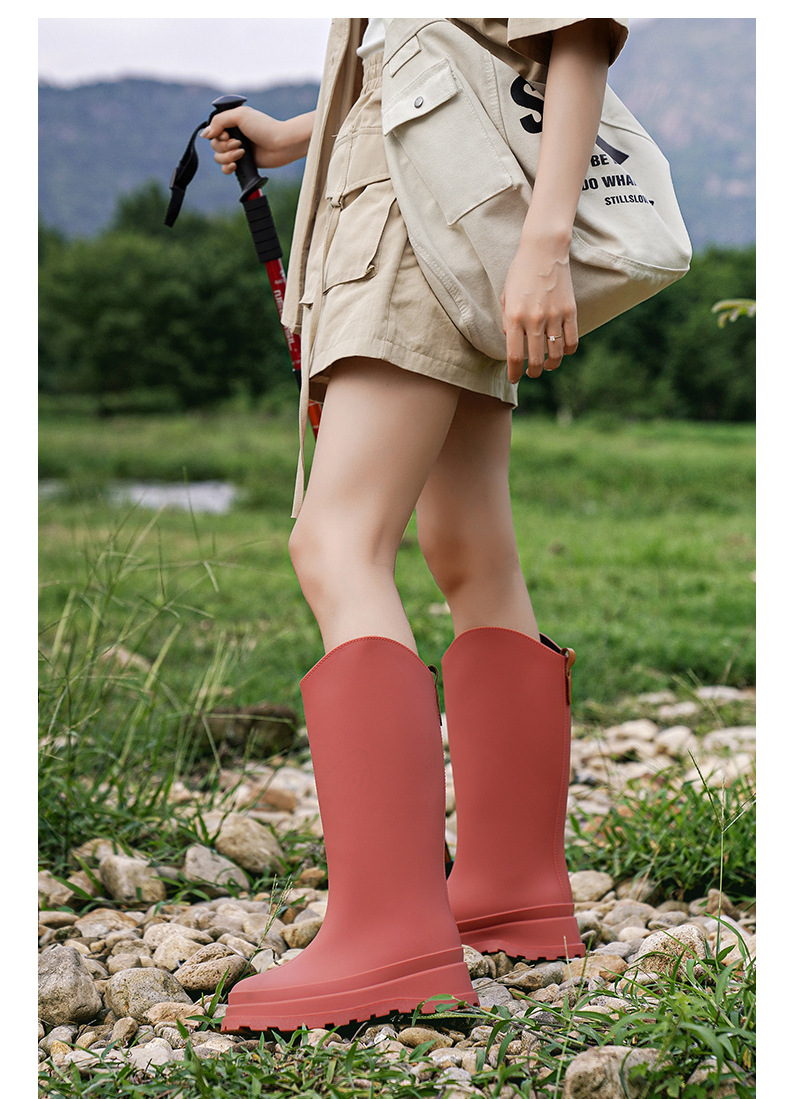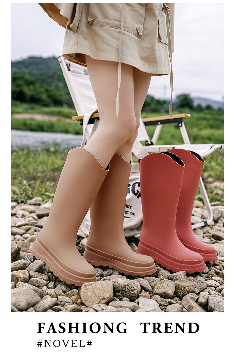 한국판 국경 간 인기 여성 장화 2024 새로운 패션 겉옷 여성용 하이탑 장화 방수 및 미끄럼 방지 워터 슈즈