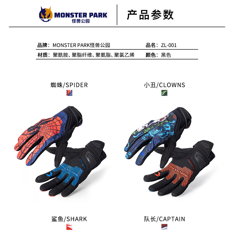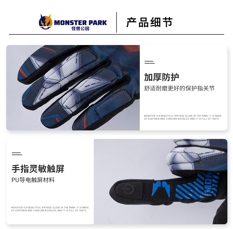 몬스터파크 오토바이 장갑 남성용 터치스크린 통기성 오토바이 라이딩 장비 여성 라이더용 보호 장비 통기성 가볍고 얇은