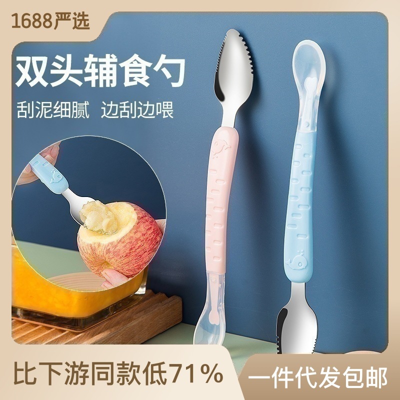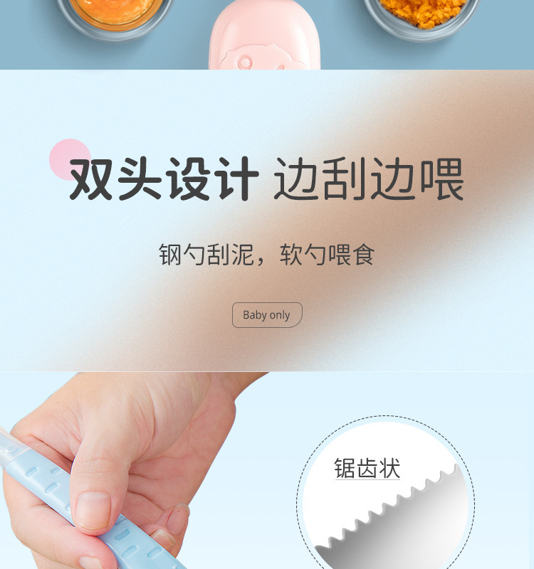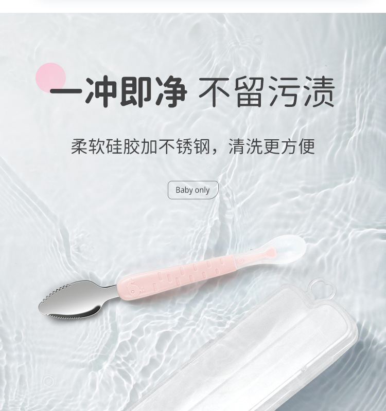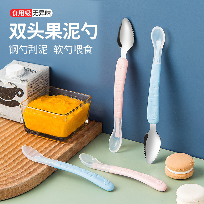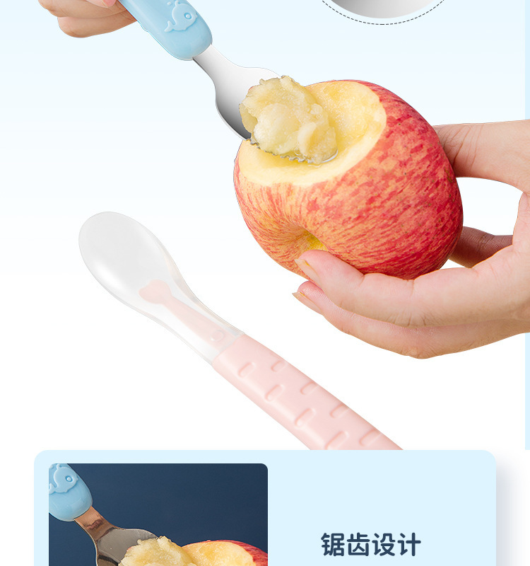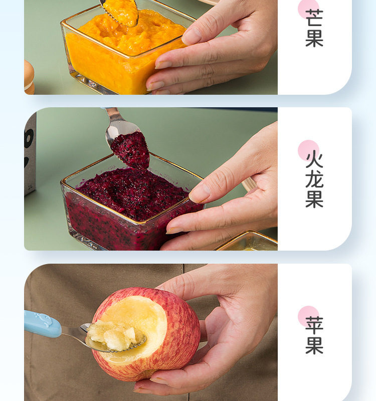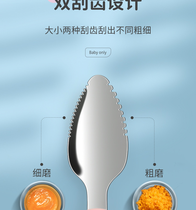 아기톱니형 양방향 머드스크레이퍼, 이유식보조식기, 어린이용 과일스크레이퍼, 사과퓨레 먹는 도구