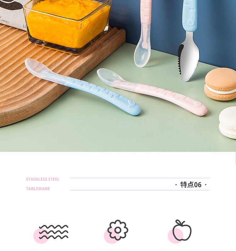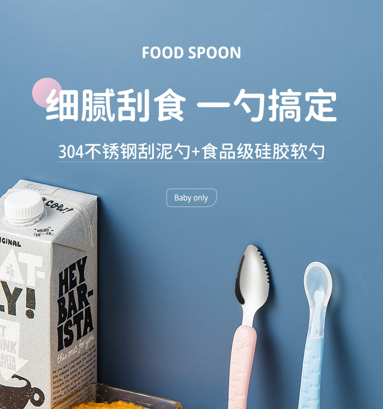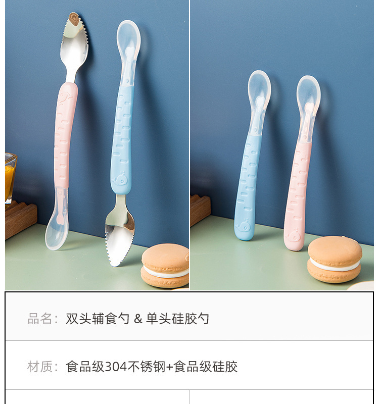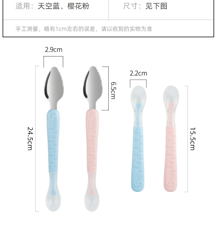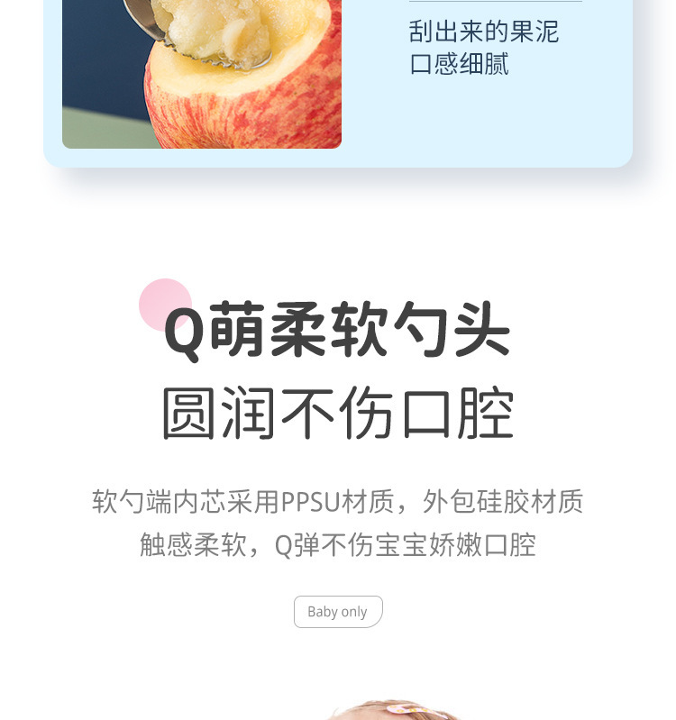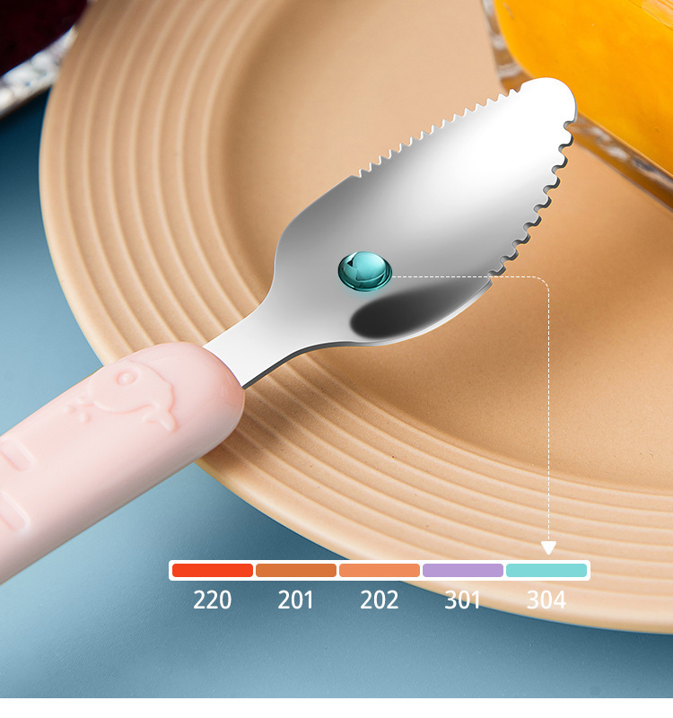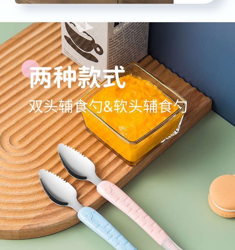 아기톱니형 양방향 머드스크레이퍼, 이유식보조식기, 어린이용 과일스크레이퍼, 사과퓨레 먹는 도구