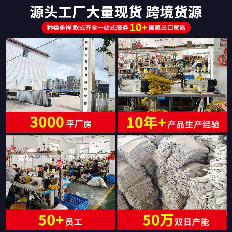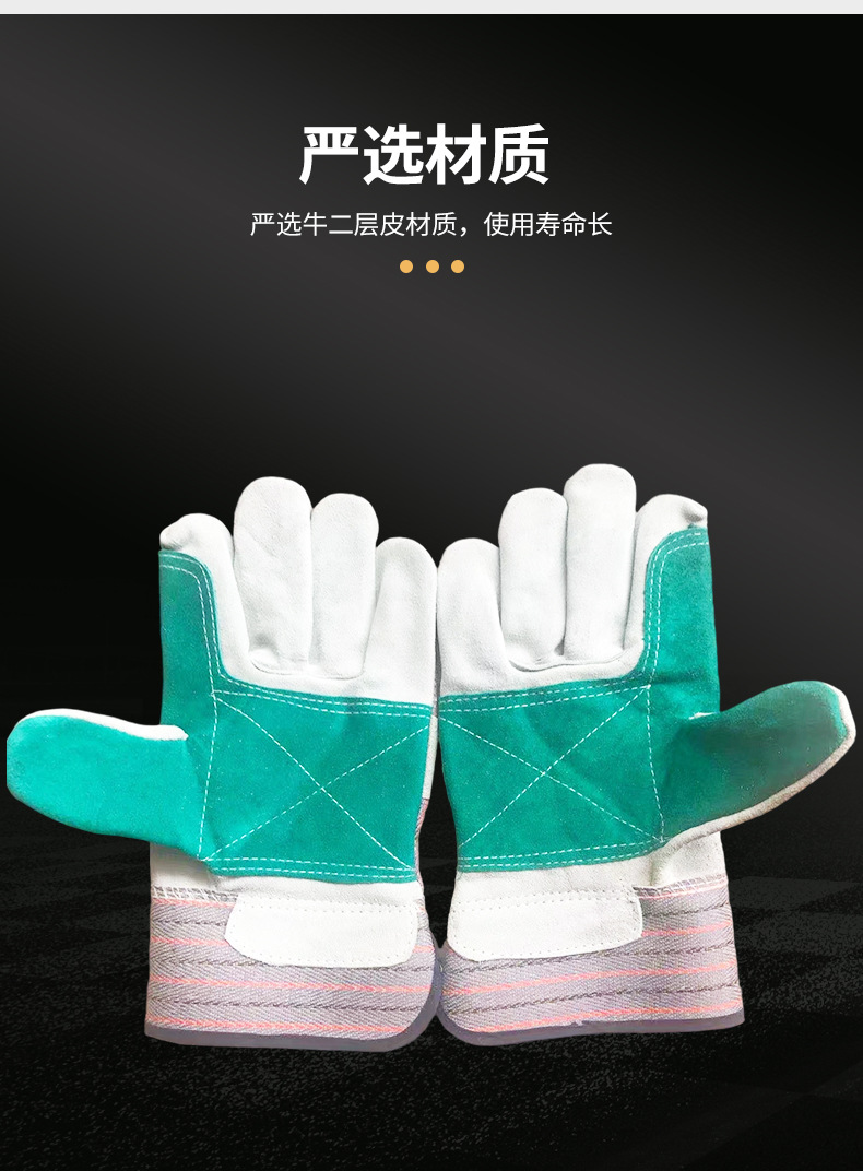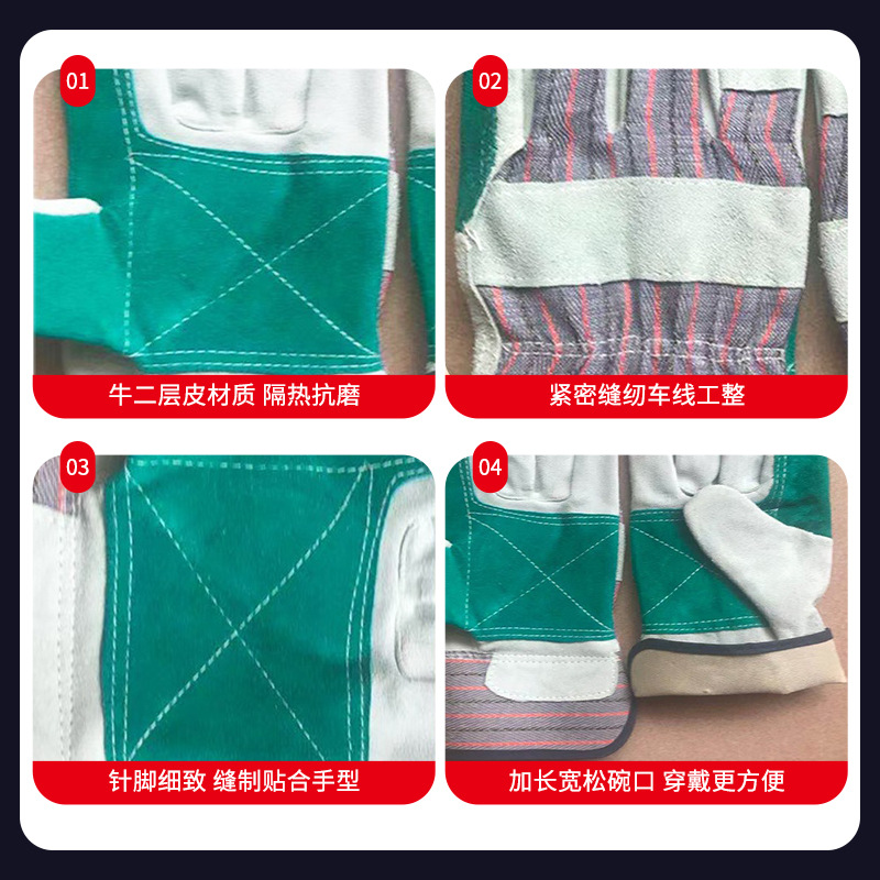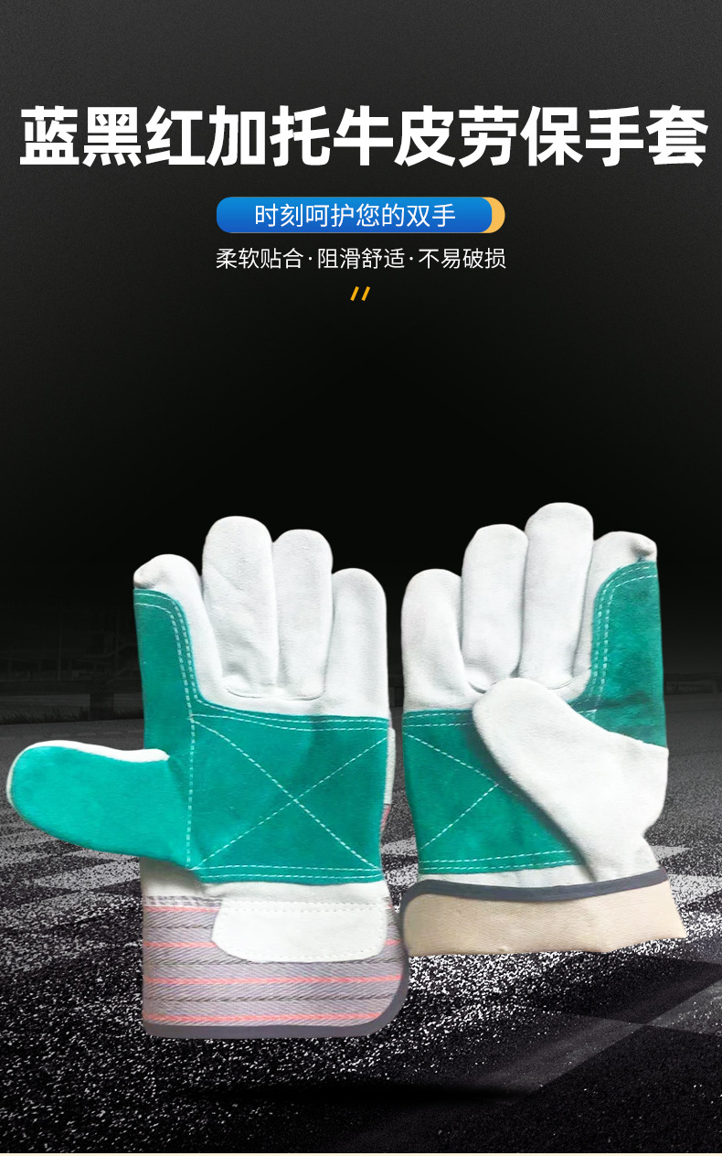 厂家供应加托牛皮劳保手套,采用加厚牛皮材质 + 虎口加托加固工艺,耐火阻燃、隔热阻烫、防飞溅耐磨,有效防止焊渣、高温工件灼伤手部,同时防割防刺、防滑抗磨,适用于电焊作业、机械加工、建筑施工、搬运装卸、汽修维修等多场景,支持批量定制与印 LOGO,现货充足,交期准时,是工厂车间、工地作业的优质防护用品。 电焊 / 气焊 / 焊接作业:防焊渣飞溅、防高温灼伤,保护手部安全 机械加工 / 五金制造:防划伤、防油污、防磕碰,适配车间多工种防护 建筑施工 / 工地搬运:防割防刺、耐磨抗造,应对粗糙建材与重物搬运 物流 / 仓储装卸:防滑抗磨、提升抓握力,防止重物打滑脱手 汽修 / 机械维修:防油污、防磕碰、防划伤,适配维修作业防护 铸造 / 热处理车间:耐高温、防烫,搬运高温金属工件