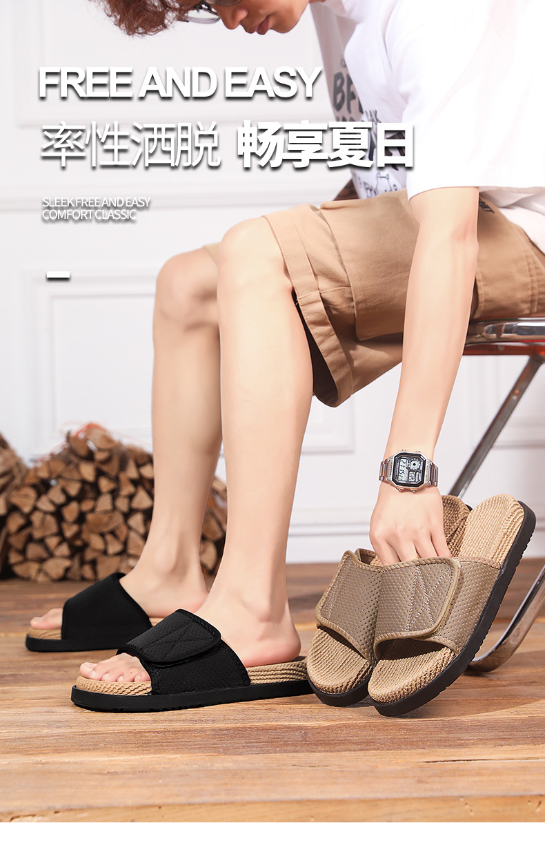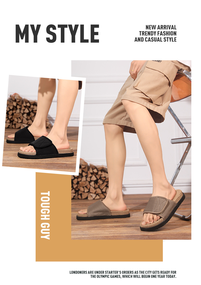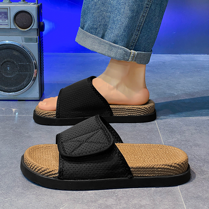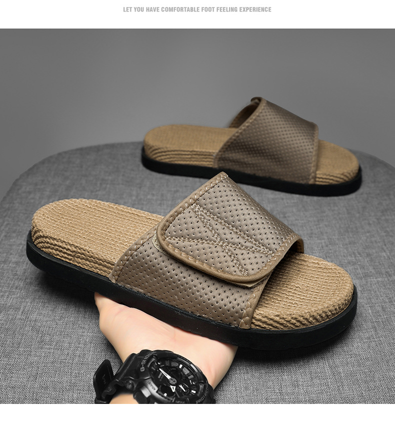 남성 고급 슬리퍼, 패셔너블하고 트렌디한 인터넷 연예인 핫 스타일 트렌디 브랜드 남성 슬리퍼, 미끄럼 방지, 냄새 방지 벨크로 슬리퍼