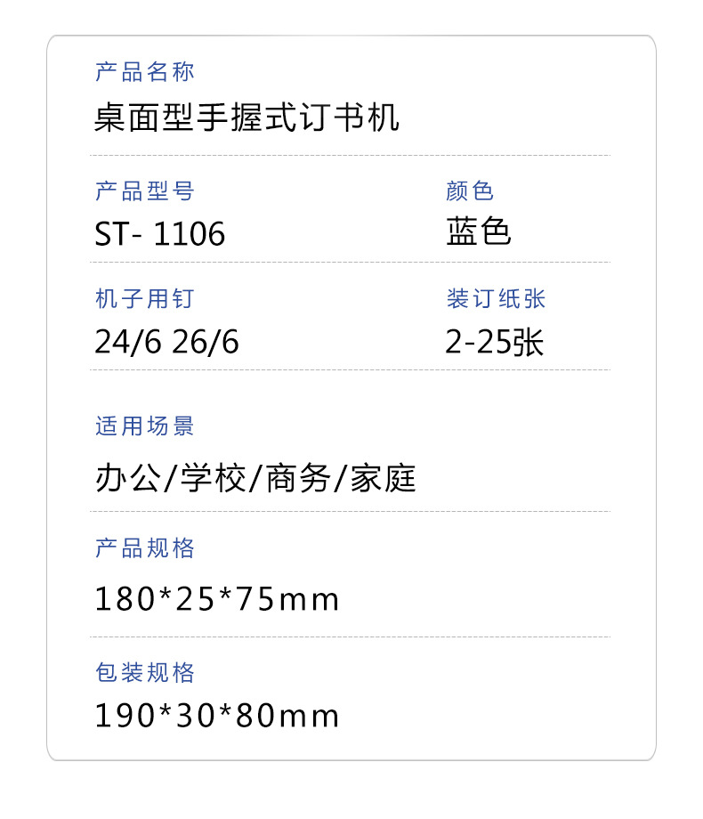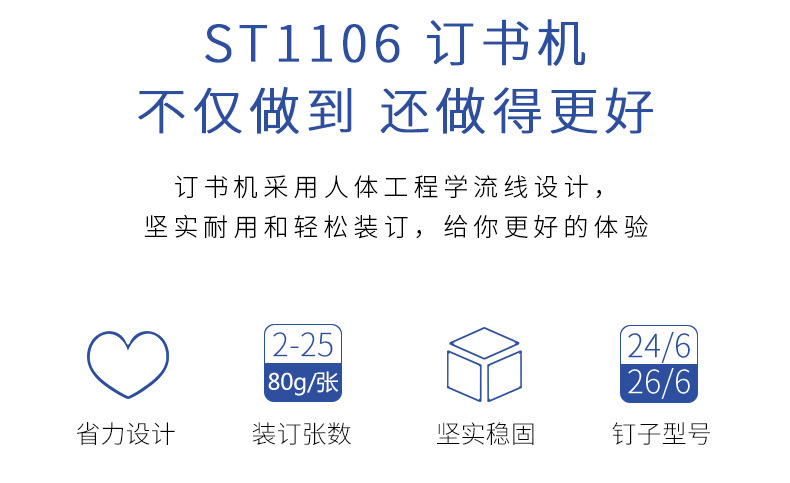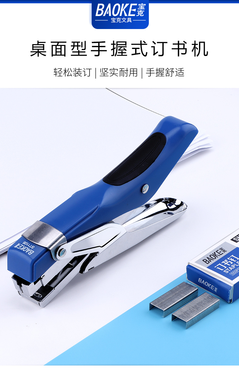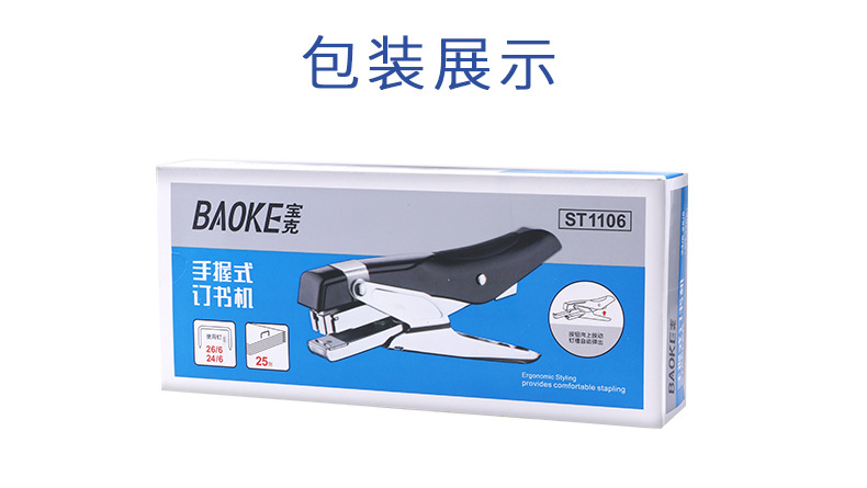 Baoke 휴대용 스테이플러 ST1106 사무실 스테이플러 포장 및 테이크아웃 특수 노동 절약형 스테이플러