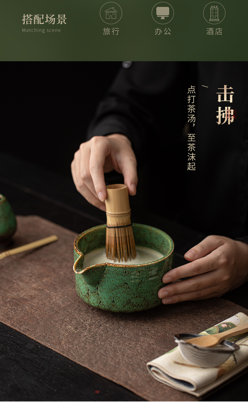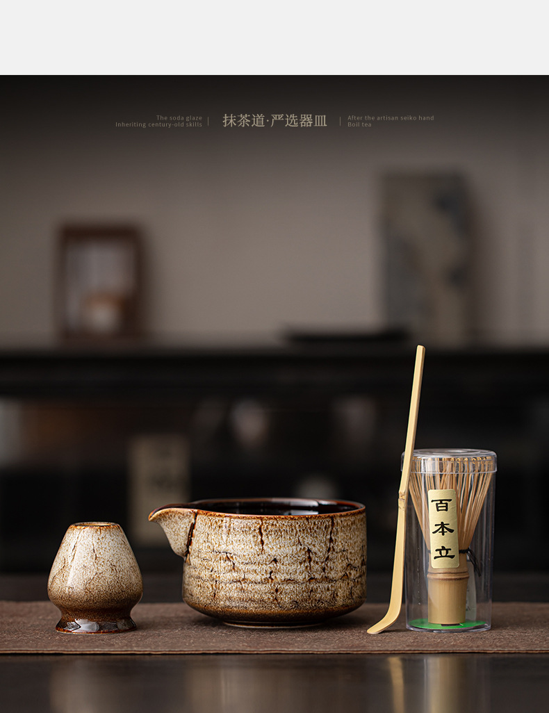토로로 변신한 말차 4종 세트, 일본 도자기 차 도구, 차 그릇, 차 스위퍼, 차 브러쉬 홀더, 차 스푼