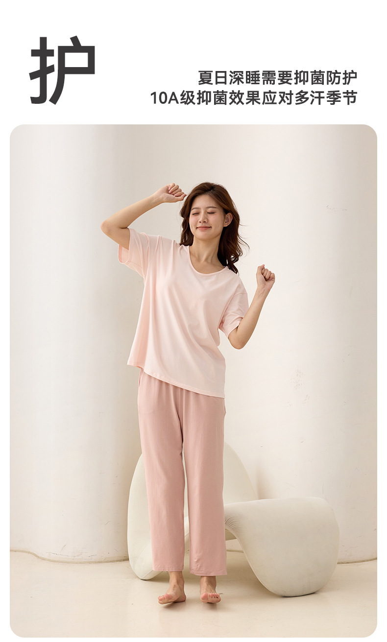 클래스 A Lyocell 여성용 홈웨어 세트 여성용 10A 항균 통기성 소프트 소녀는 잠옷 2 피스 세트 외부에 착용할 수 있습니다.