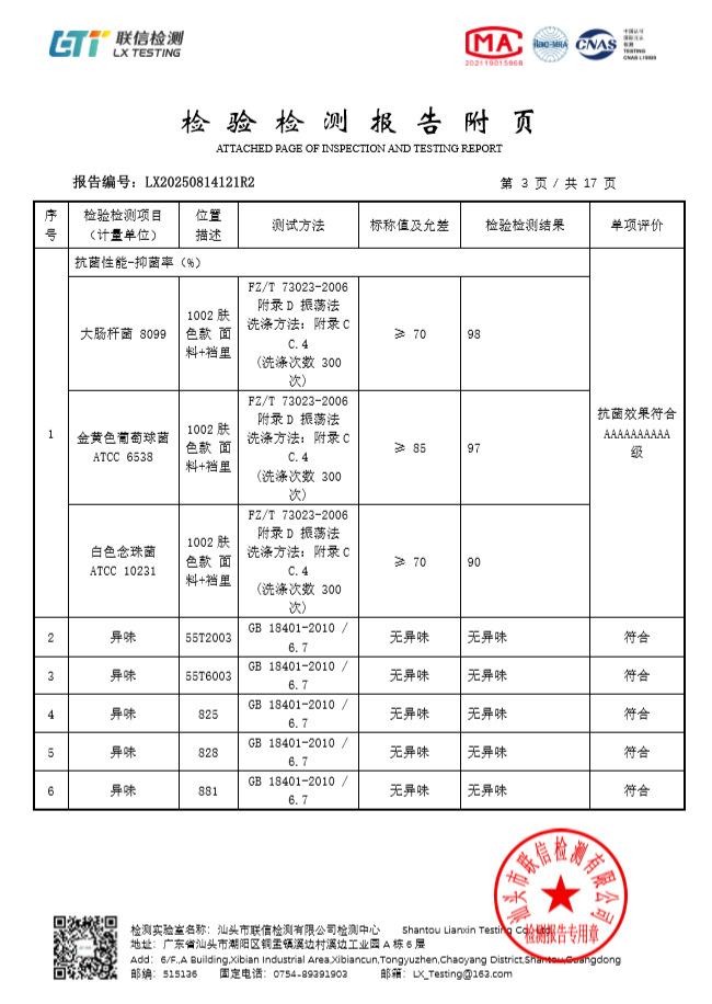 주요 원단 성분 함량
