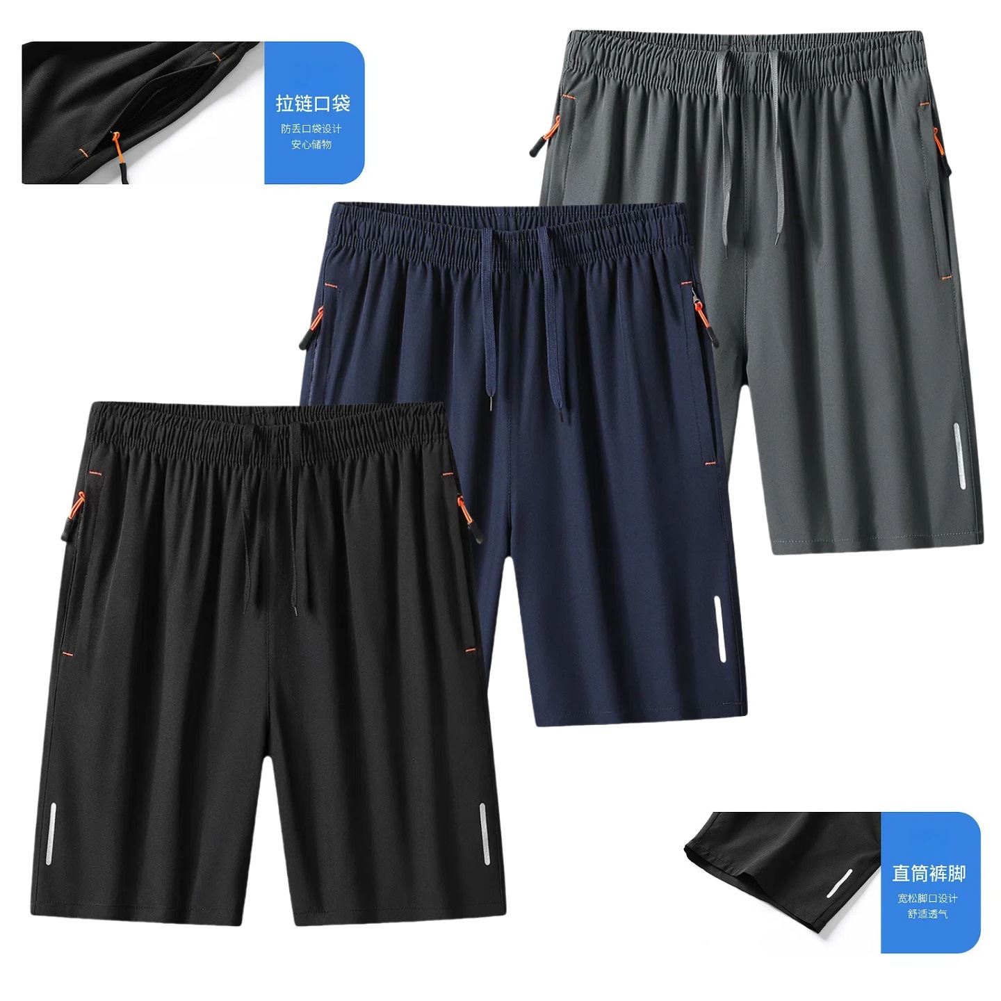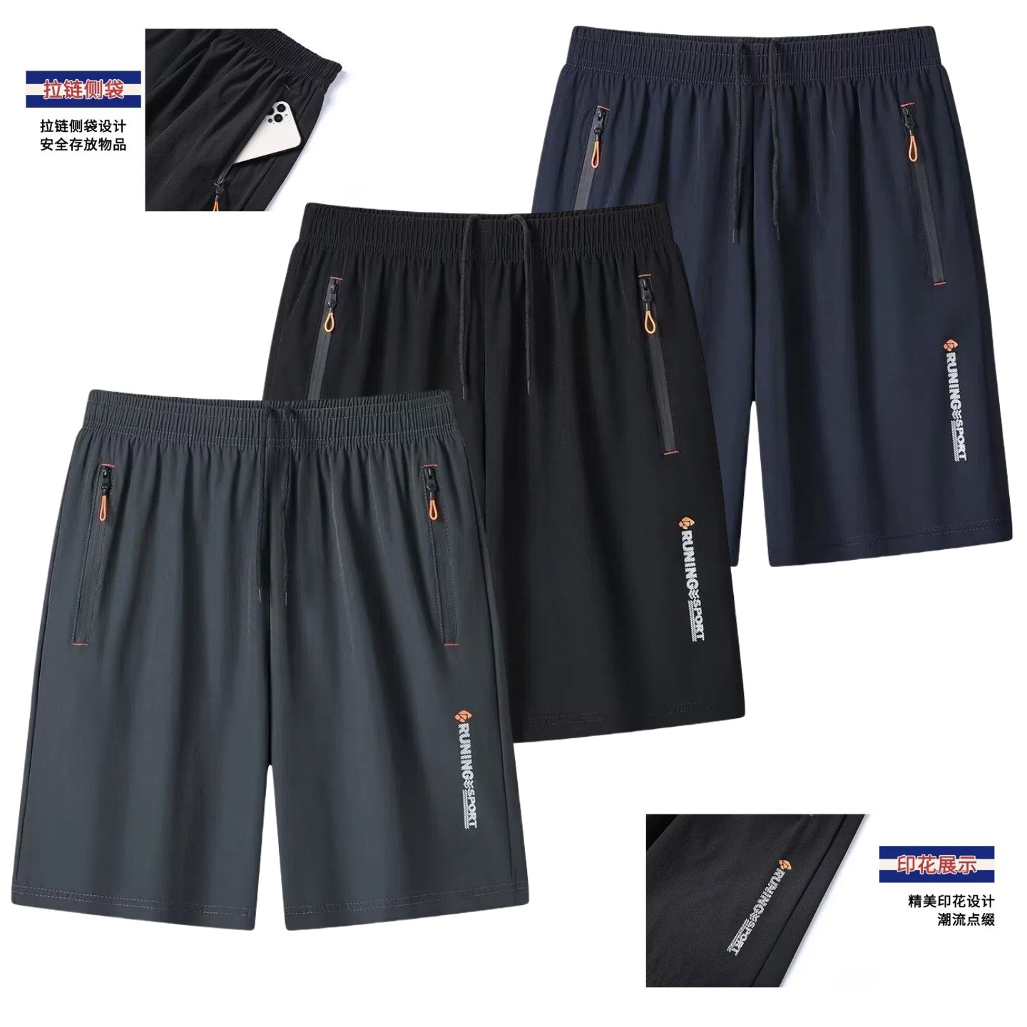 대외 무역 속건성 스포츠 바지 남성 여름 얇은 캐주얼 반바지 대형 지퍼 포켓 5부 바지 도매