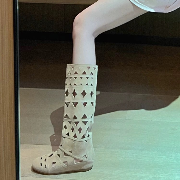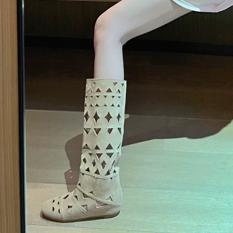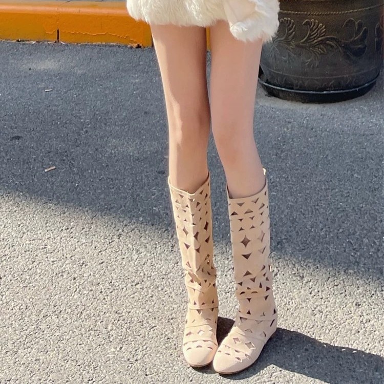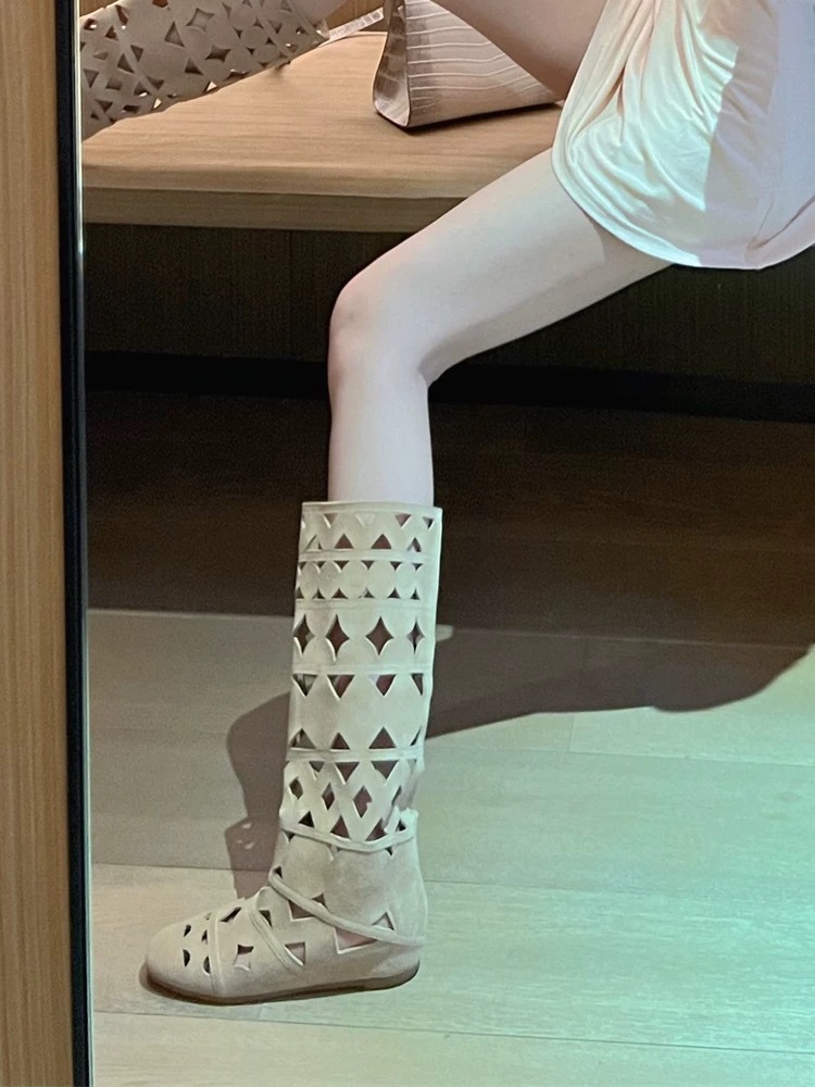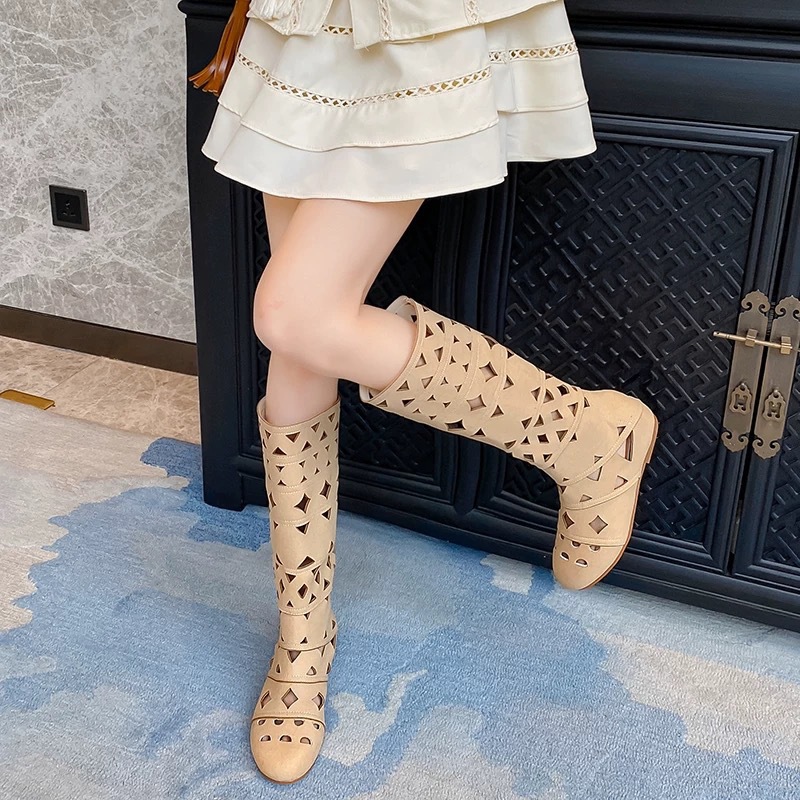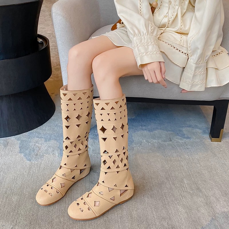 니치 라이트 럭셔리 핸드메이드 여성화, 레트로 여성화, 여성부츠, 소가죽 레트로 중공 구멍 통기성 패션 부츠