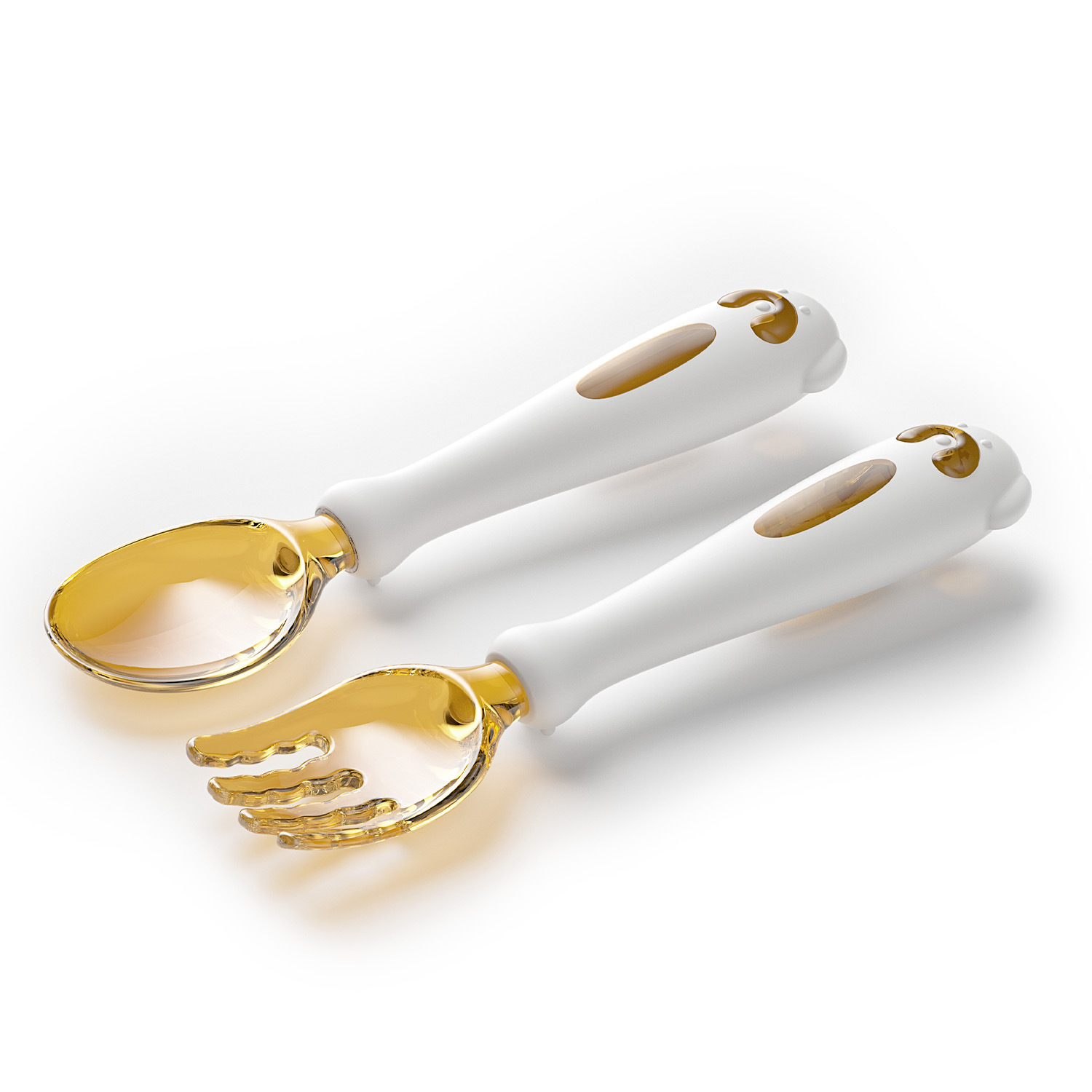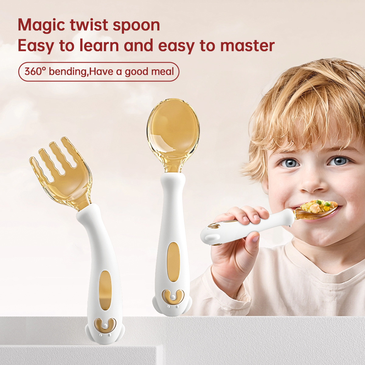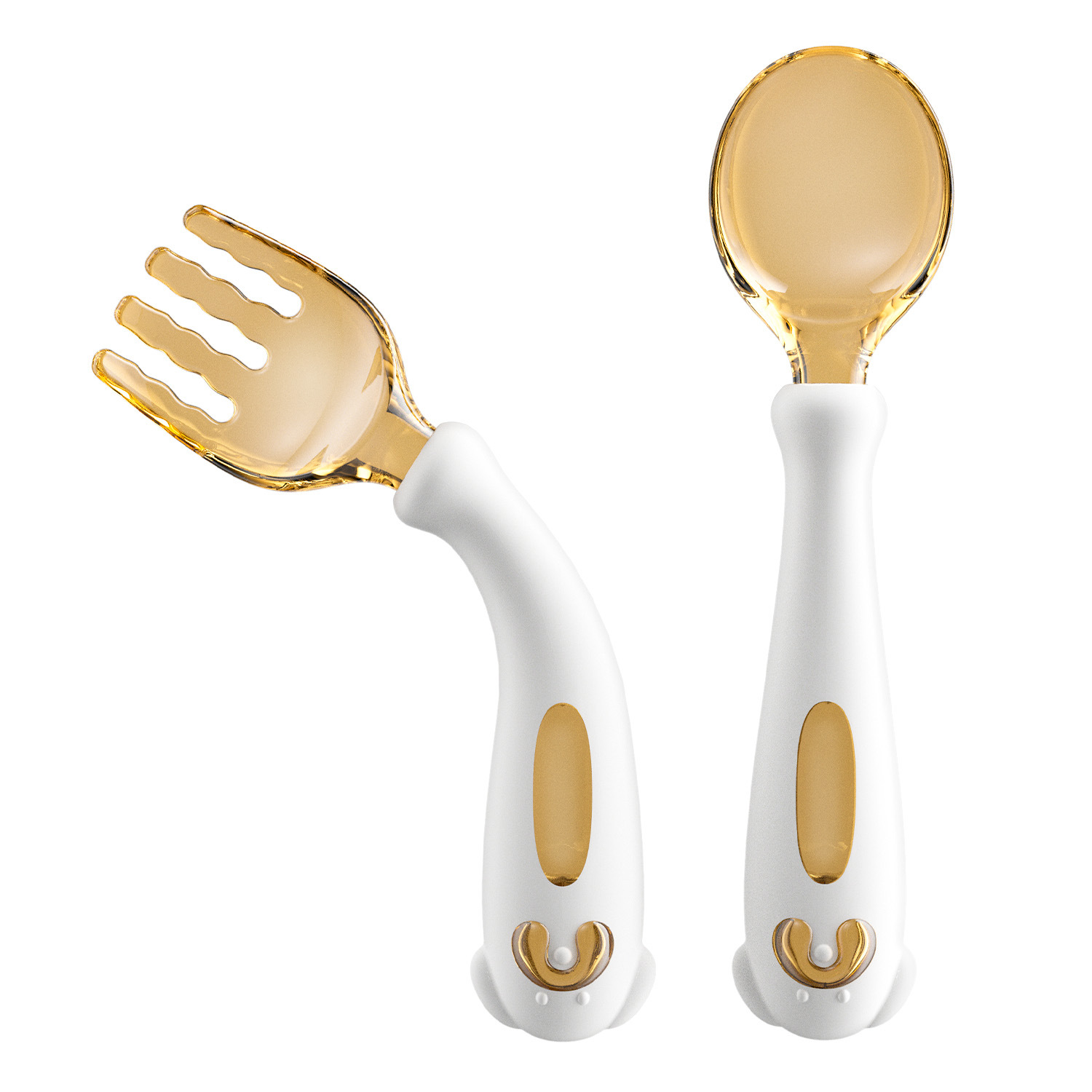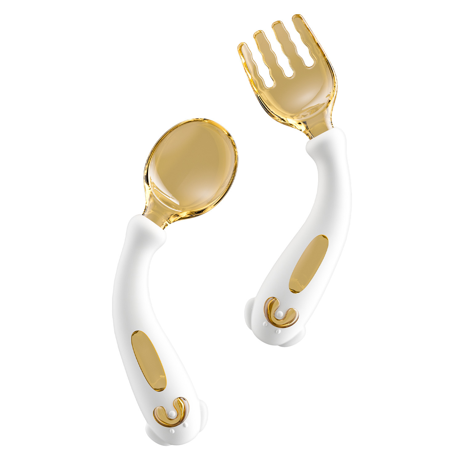 아기가 먹는 법을 배우고 훈련할 수 있는 구부릴 수 있는 어린이 식기, 식품 보충제 학습, 포크와 스푼 세트, 트위스트 스푼과 포크