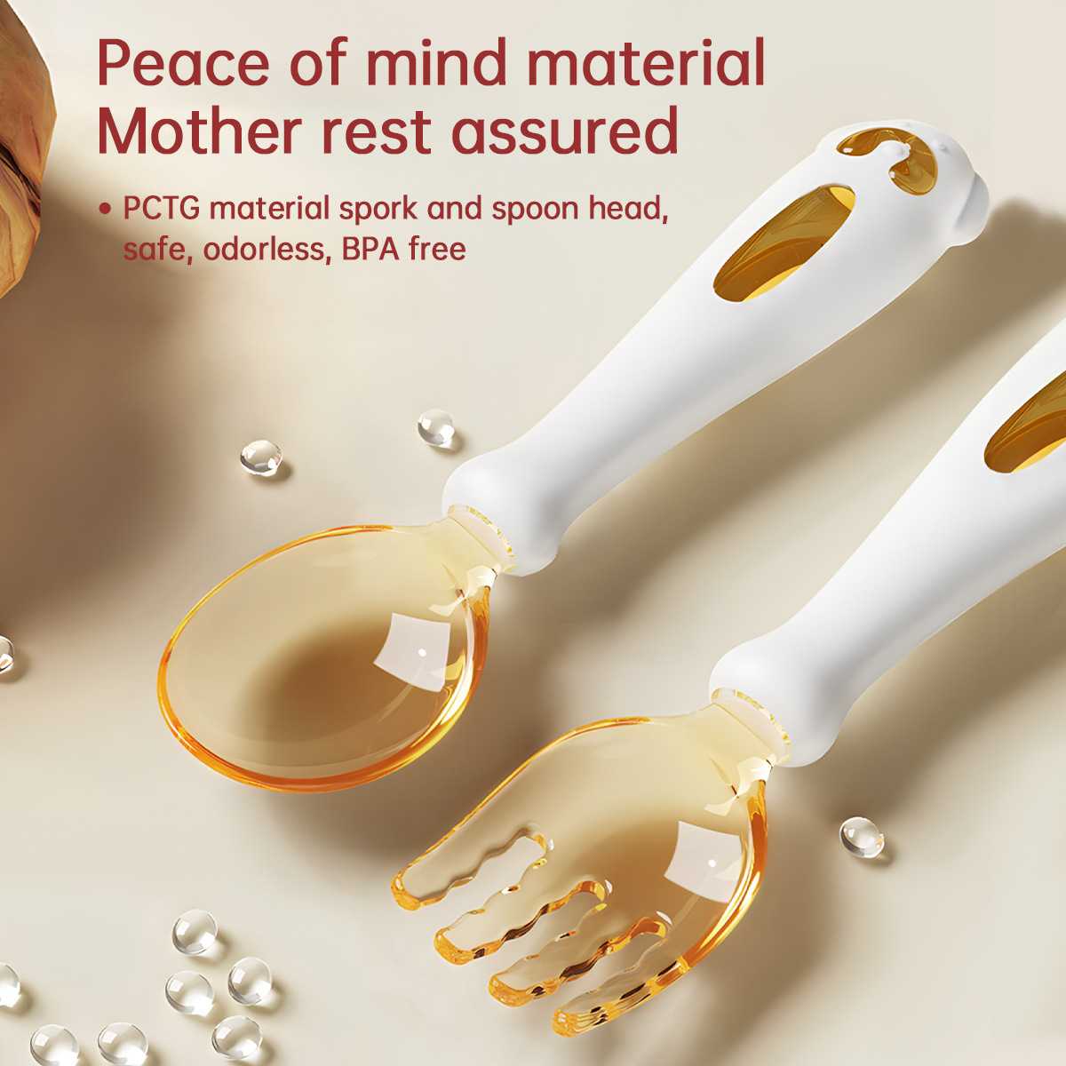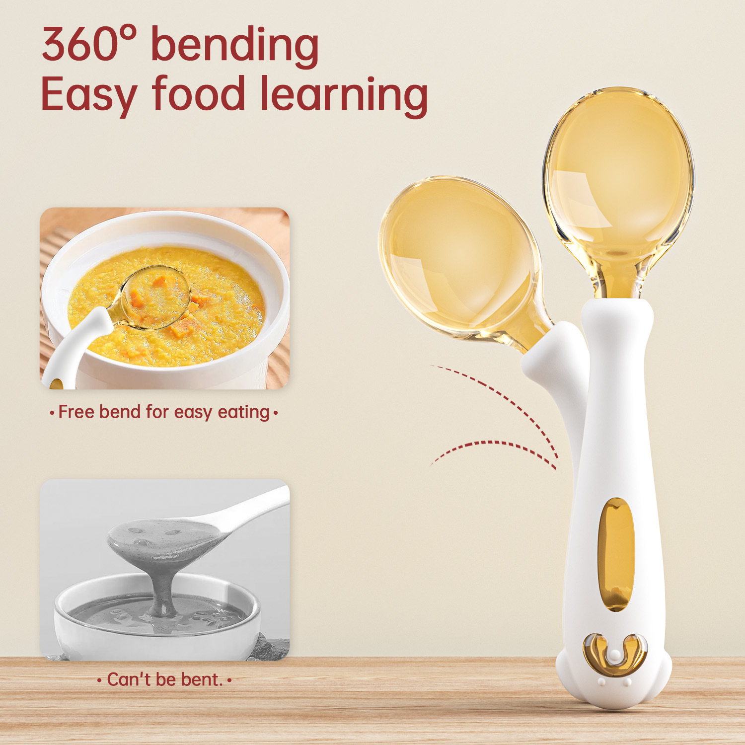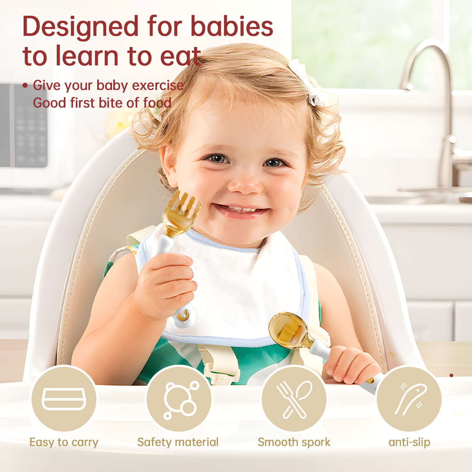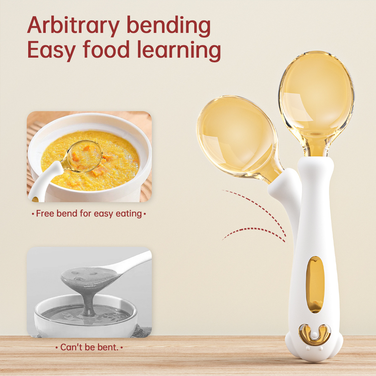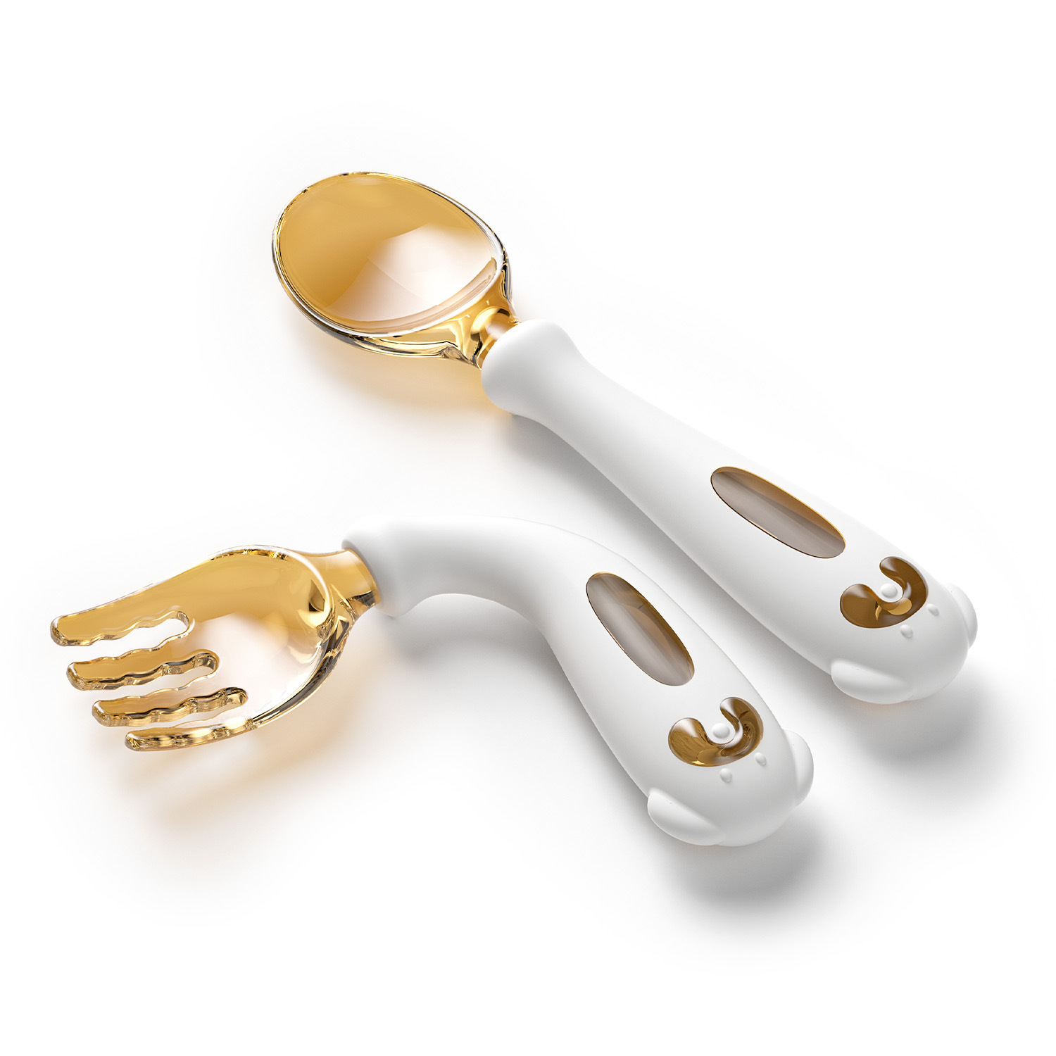 아기가 먹는 법을 배우고 훈련할 수 있는 구부릴 수 있는 어린이 식기, 식품 보충제 학습, 포크와 스푼 세트, 트위스트 스푼과 포크