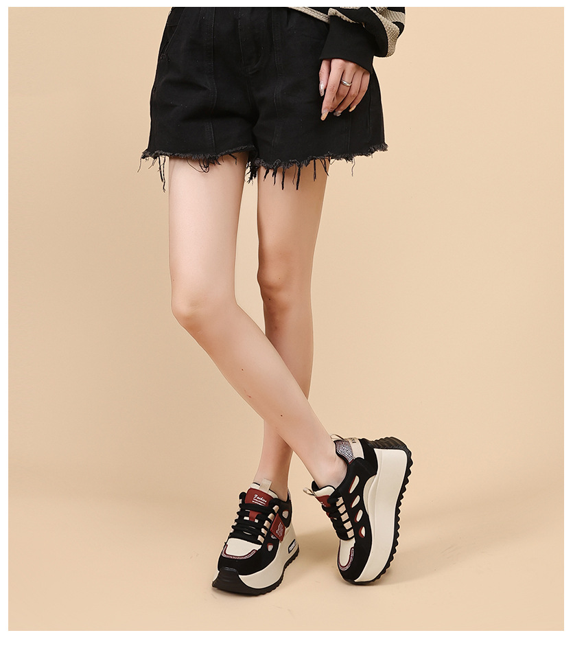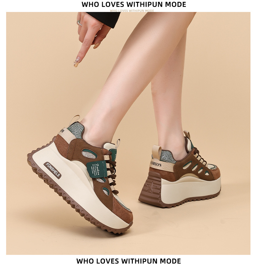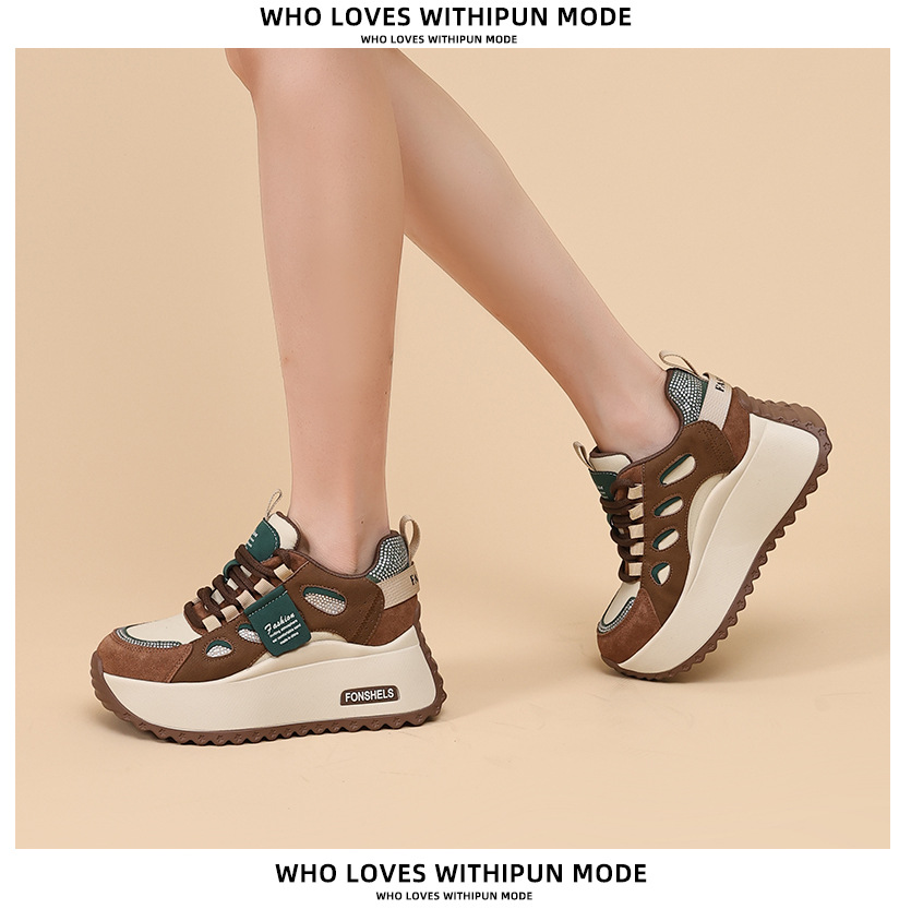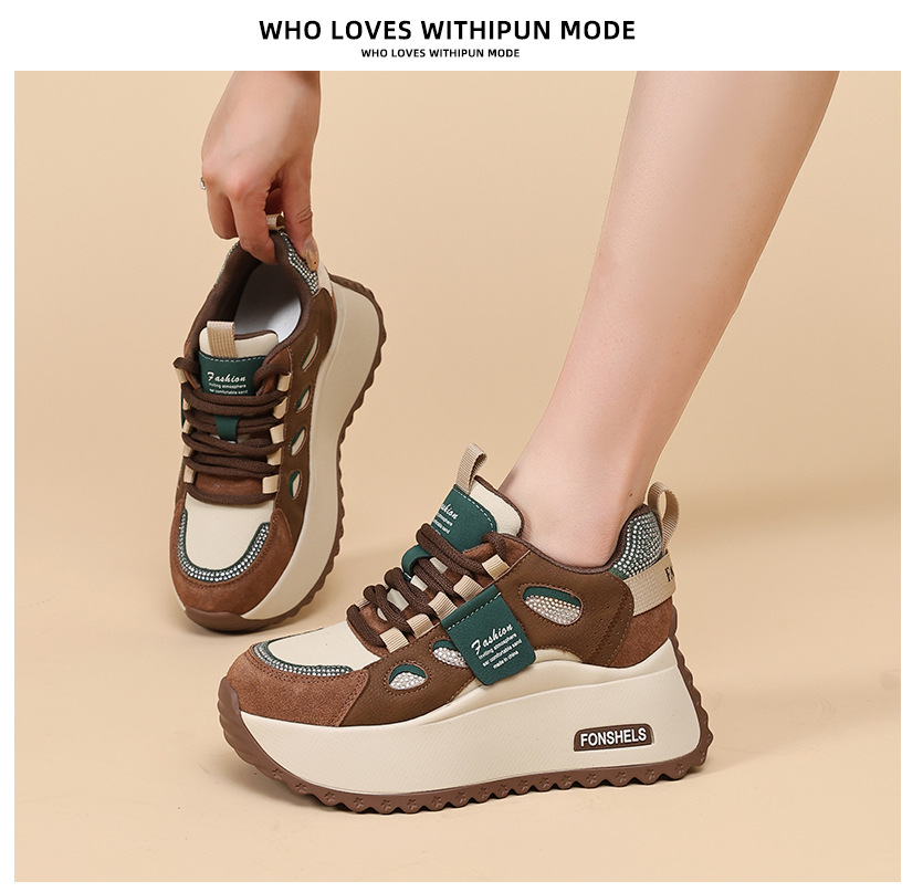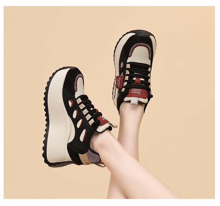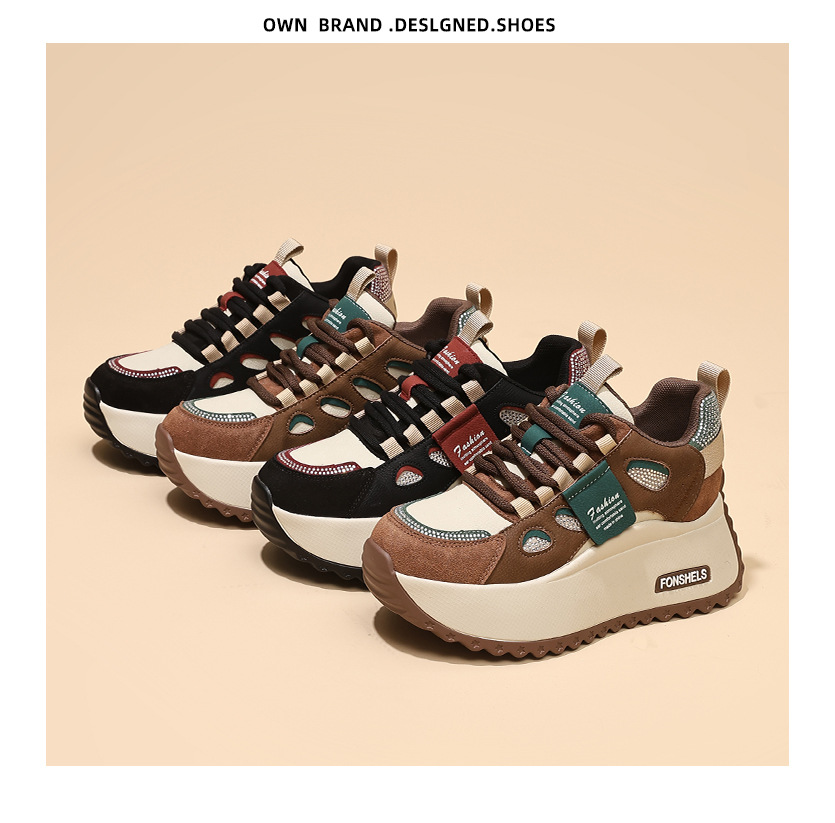 여성을 위한 두꺼운 밑창의 아빠 신발, 2025 가을 겨울 새로운 캐주얼 레이스 업 컬러 매칭 학생 포레스트 검프 운동화