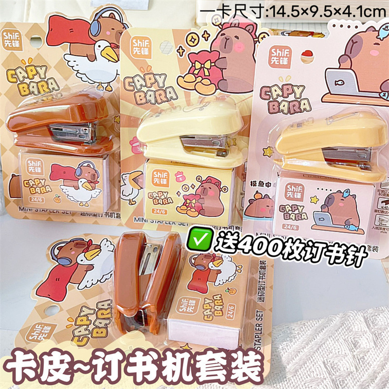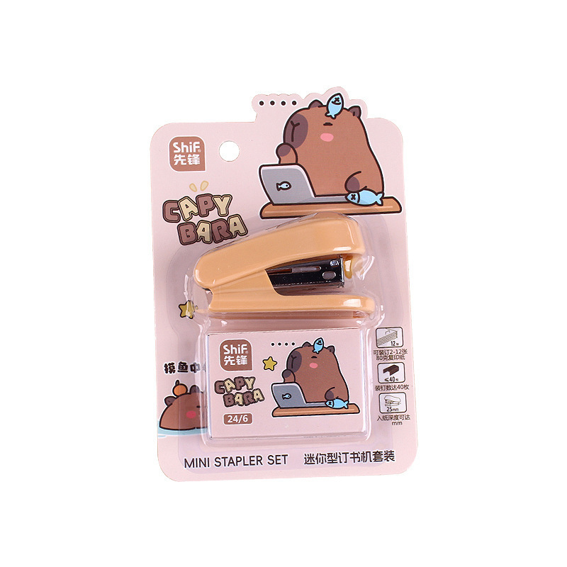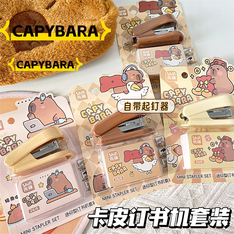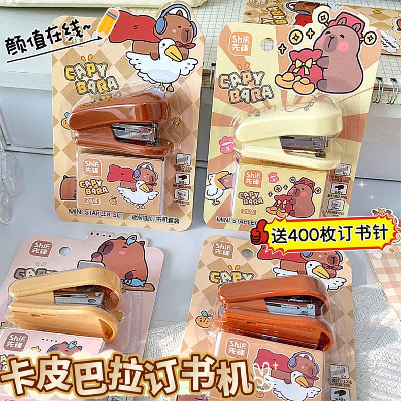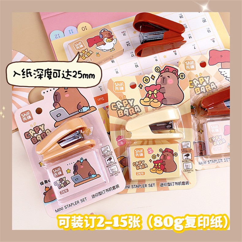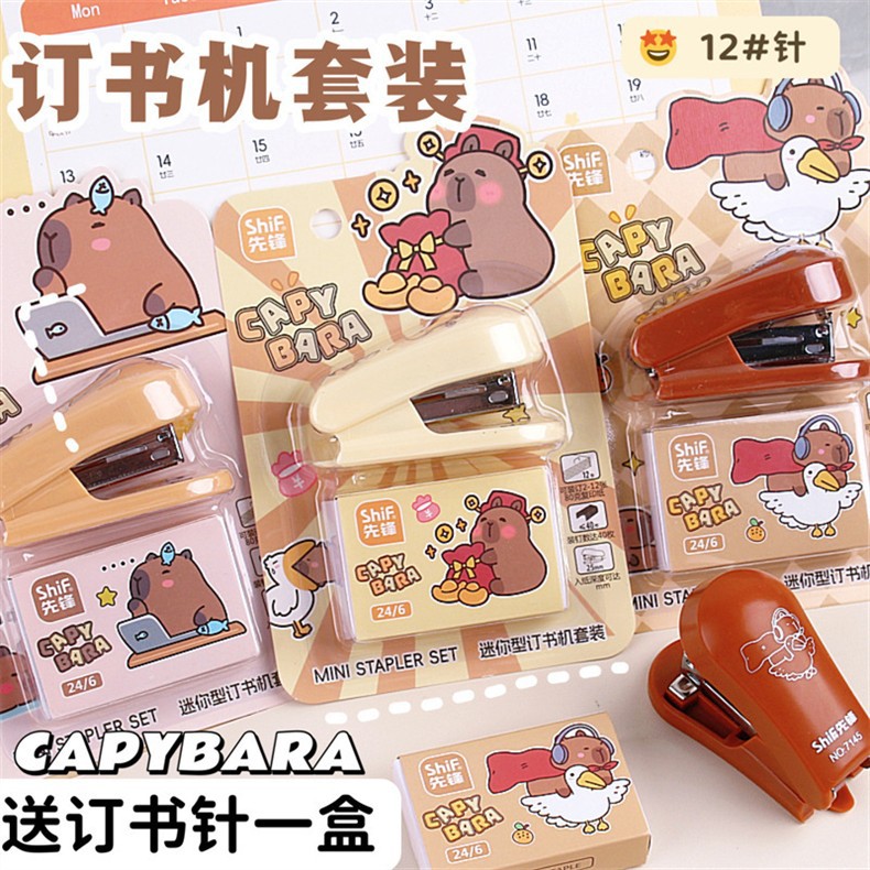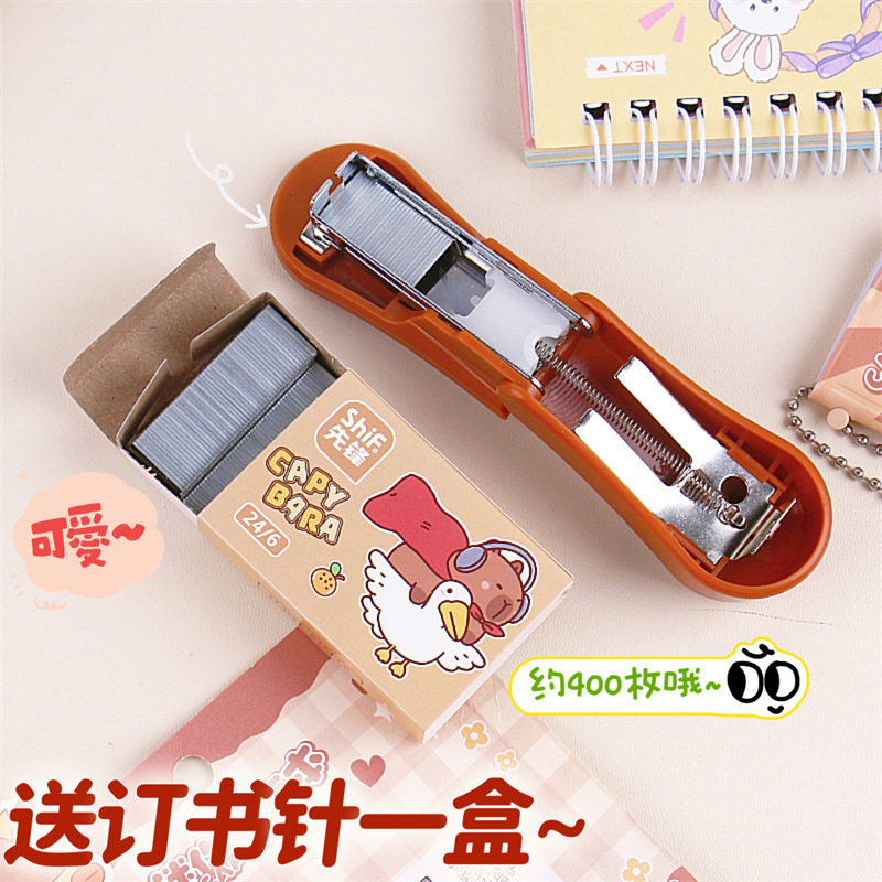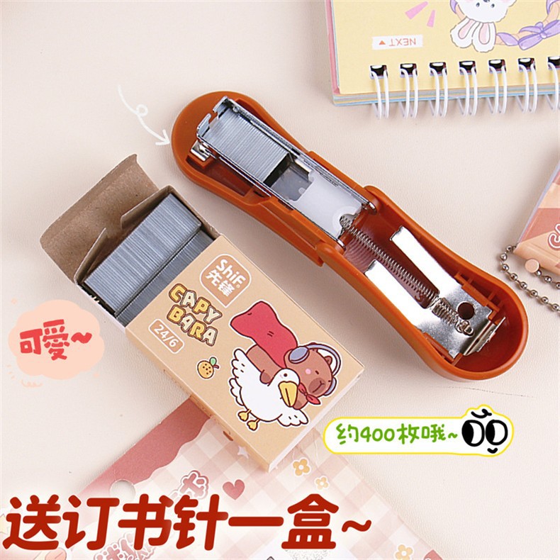 Kapibala 미니 스테이플러 고급스러운 만화 크리 에이 티브 스테이플러 세트 학생 바인딩 스테이플러