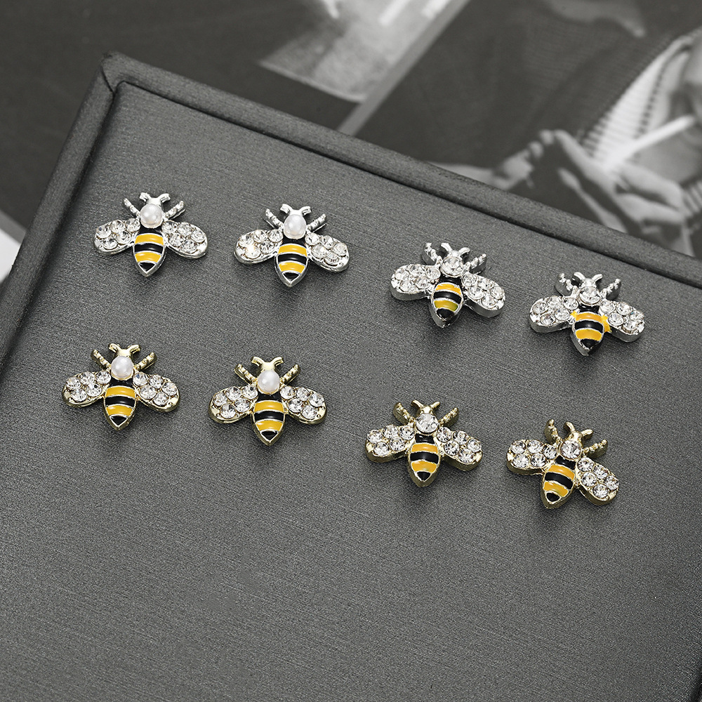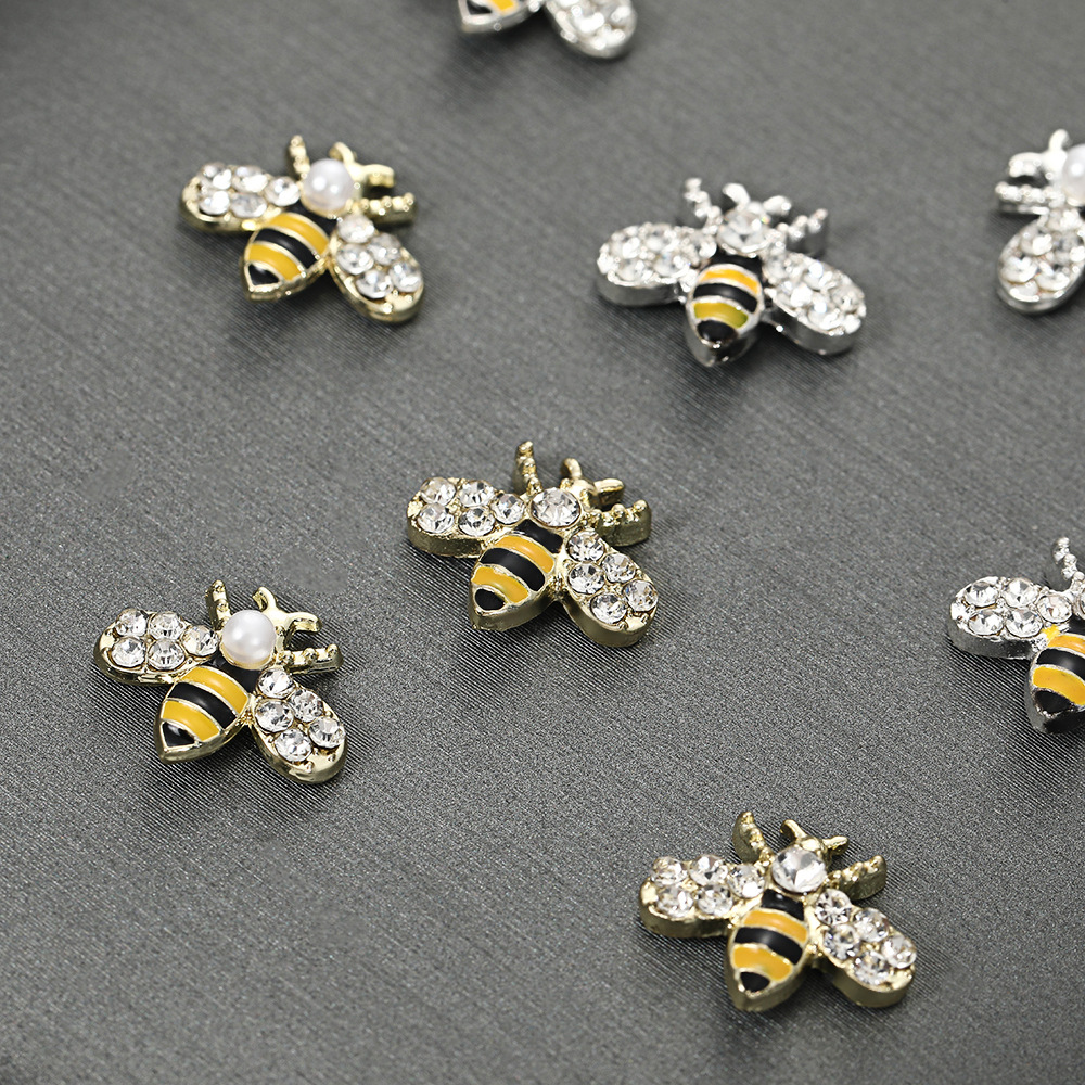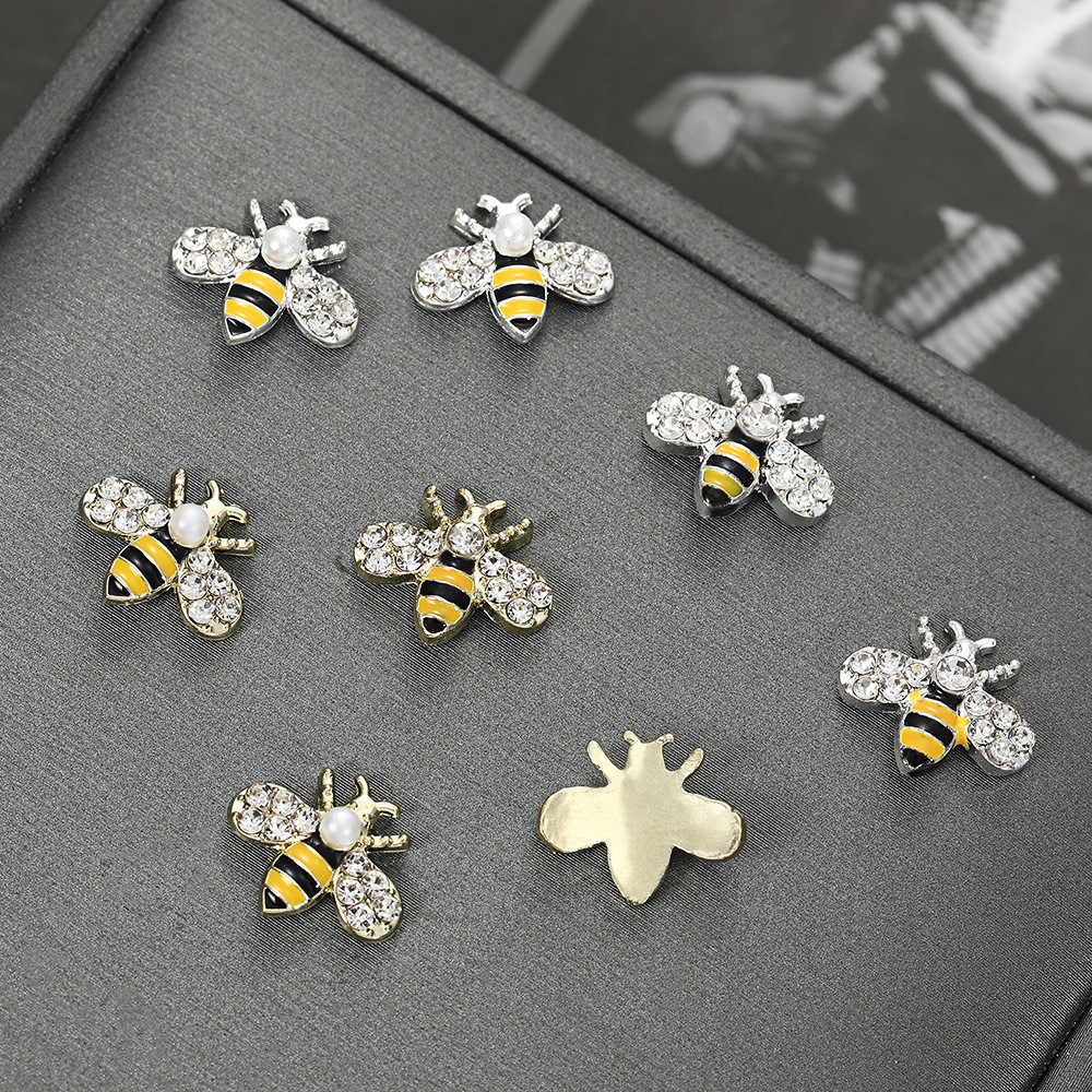 유럽과 미국의 시뮬레이션 동물 다이아몬드가 박힌 꿀벌 네일 아트 액세서리 만화 웨어러블 네일 액세서리 수제 합금 네일 액세서리