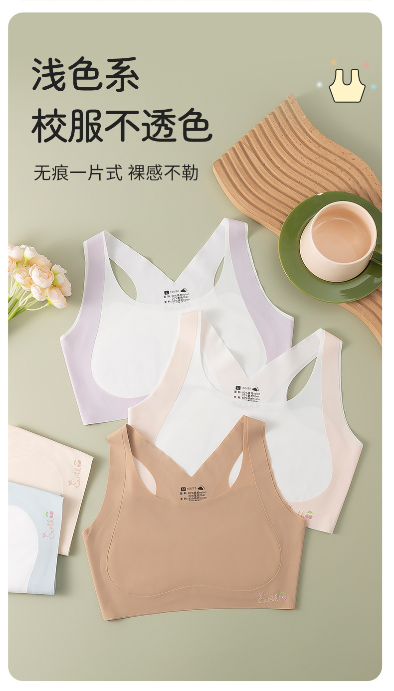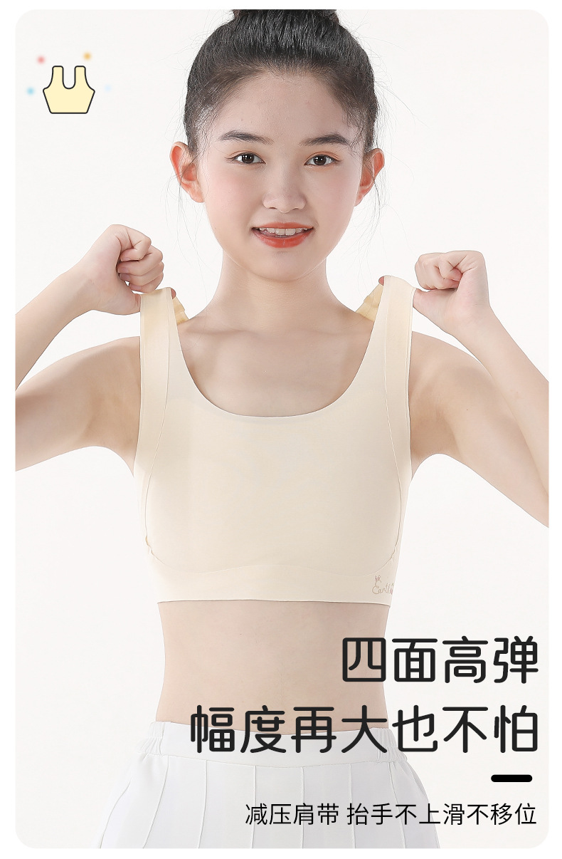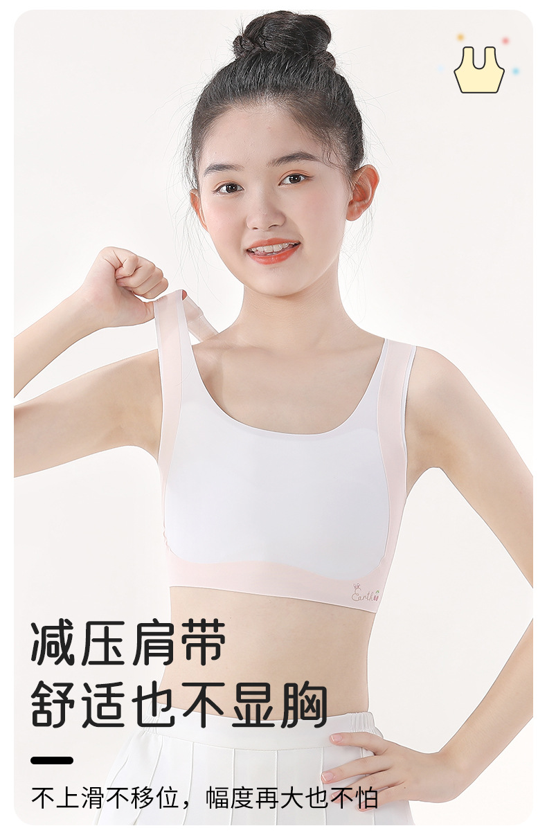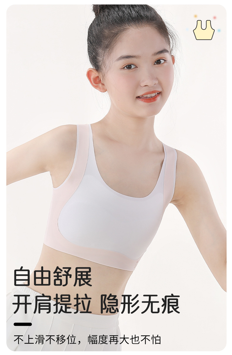 첫 단계 어린이 및 소녀 속옷 리프팅 디자인, 신축성, 통기성 및 항균 스포츠 학생용 얇은 브라 조끼