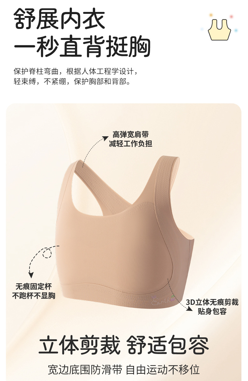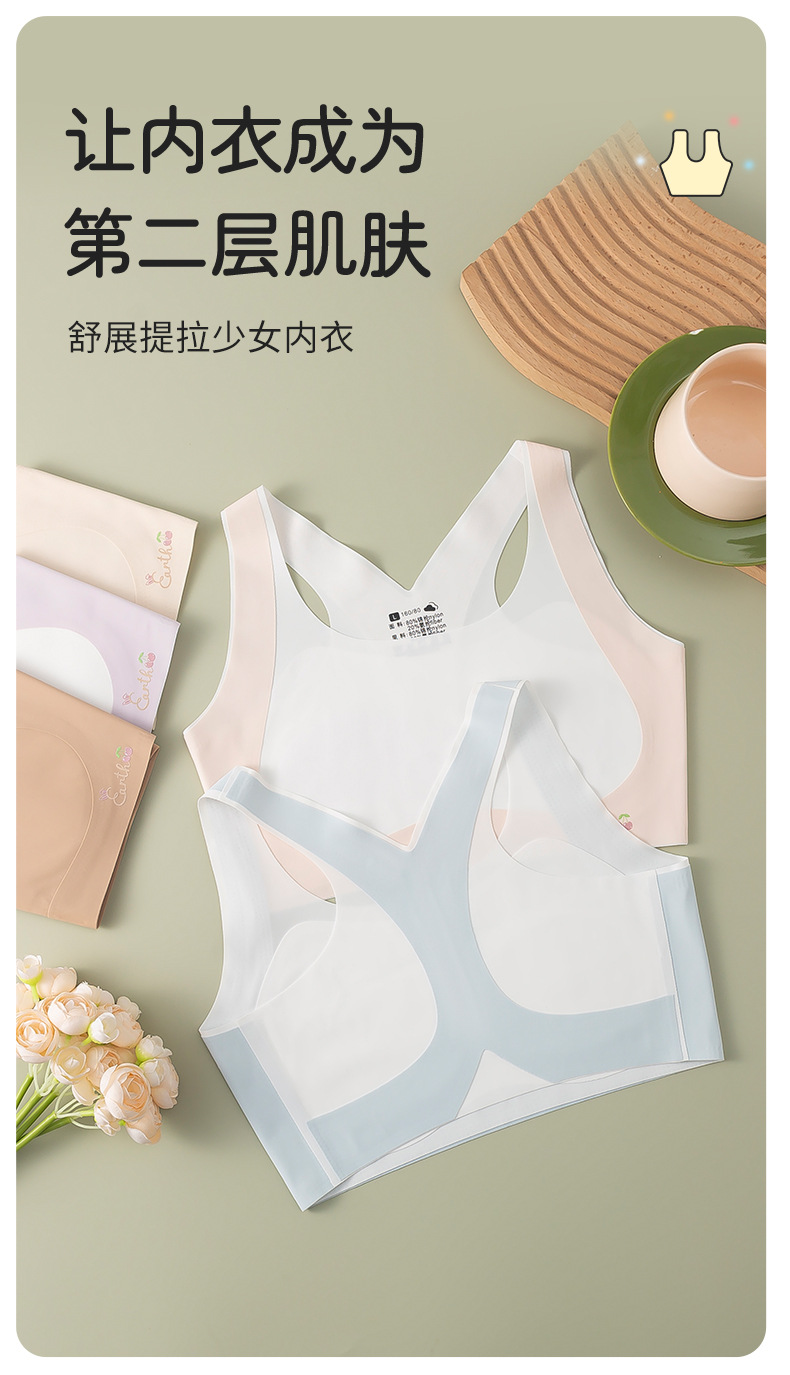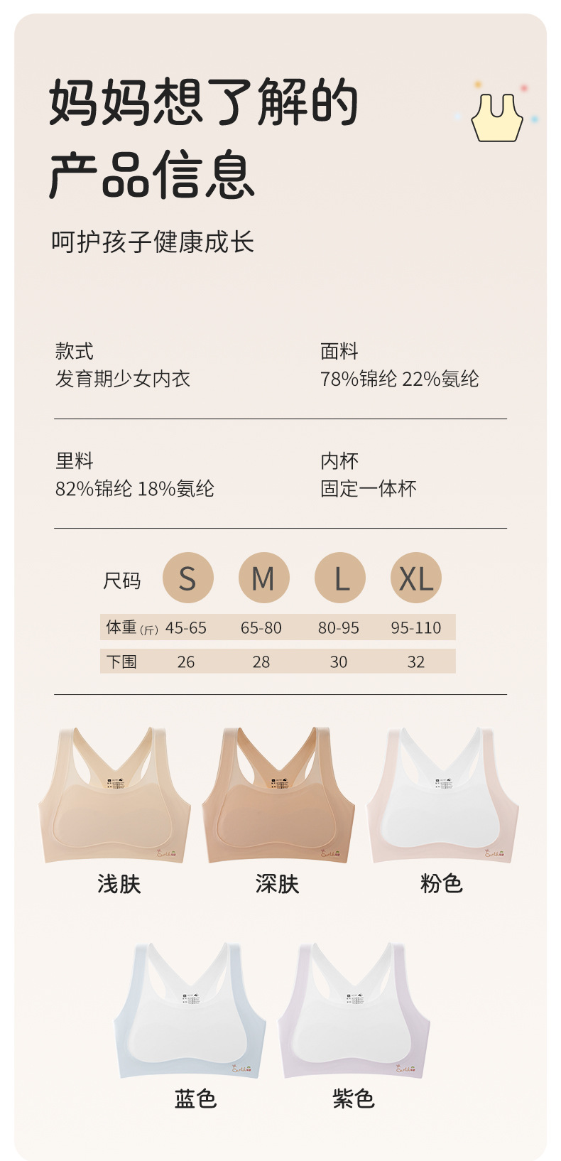 첫 단계 어린이 및 소녀 속옷 리프팅 디자인, 신축성, 통기성 및 항균 스포츠 학생용 얇은 브라 조끼