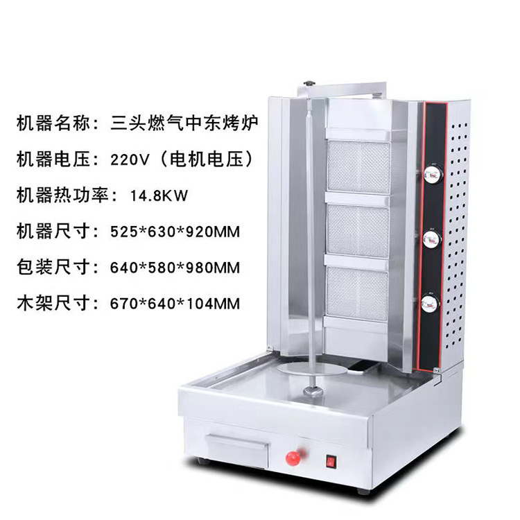 3 헤드 가스 브라질 바베큐 기계 상업용 완전 자동 회전 터키 중동 바베큐 그릴 바베큐 스토브