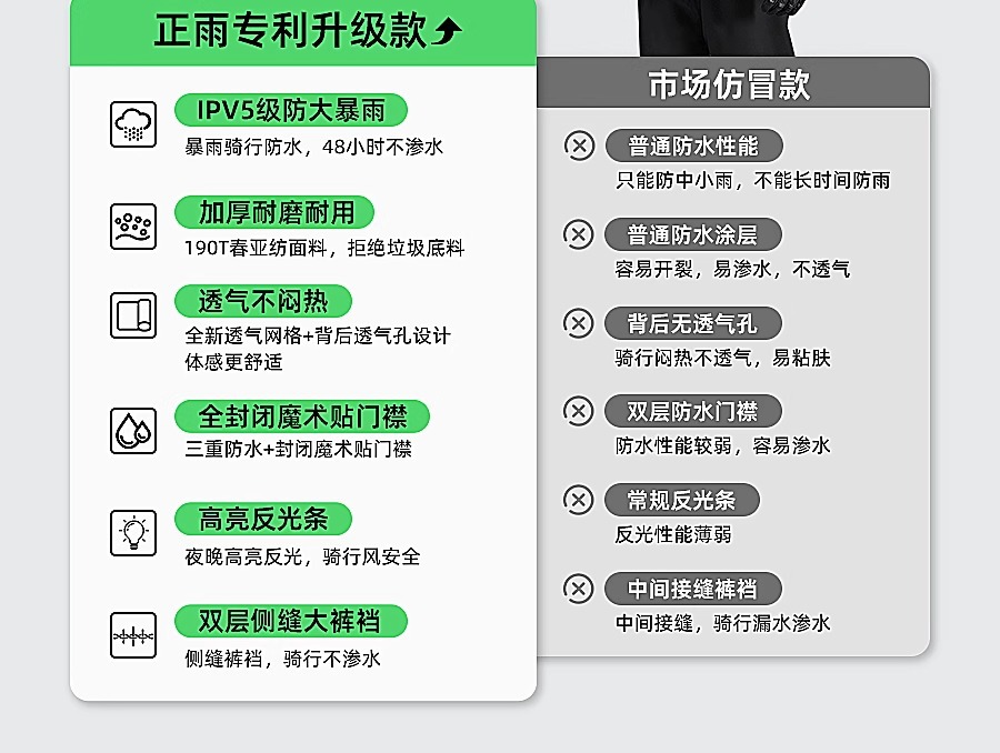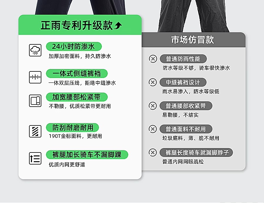 팬텀 그린 플래그십 모델 - 남녀 동일 스타일 [폭우 방지 + 3중 방수 플래킷 + 통기성 및 땀 방지 + 심리스 가랑이] 무료 보관 가방